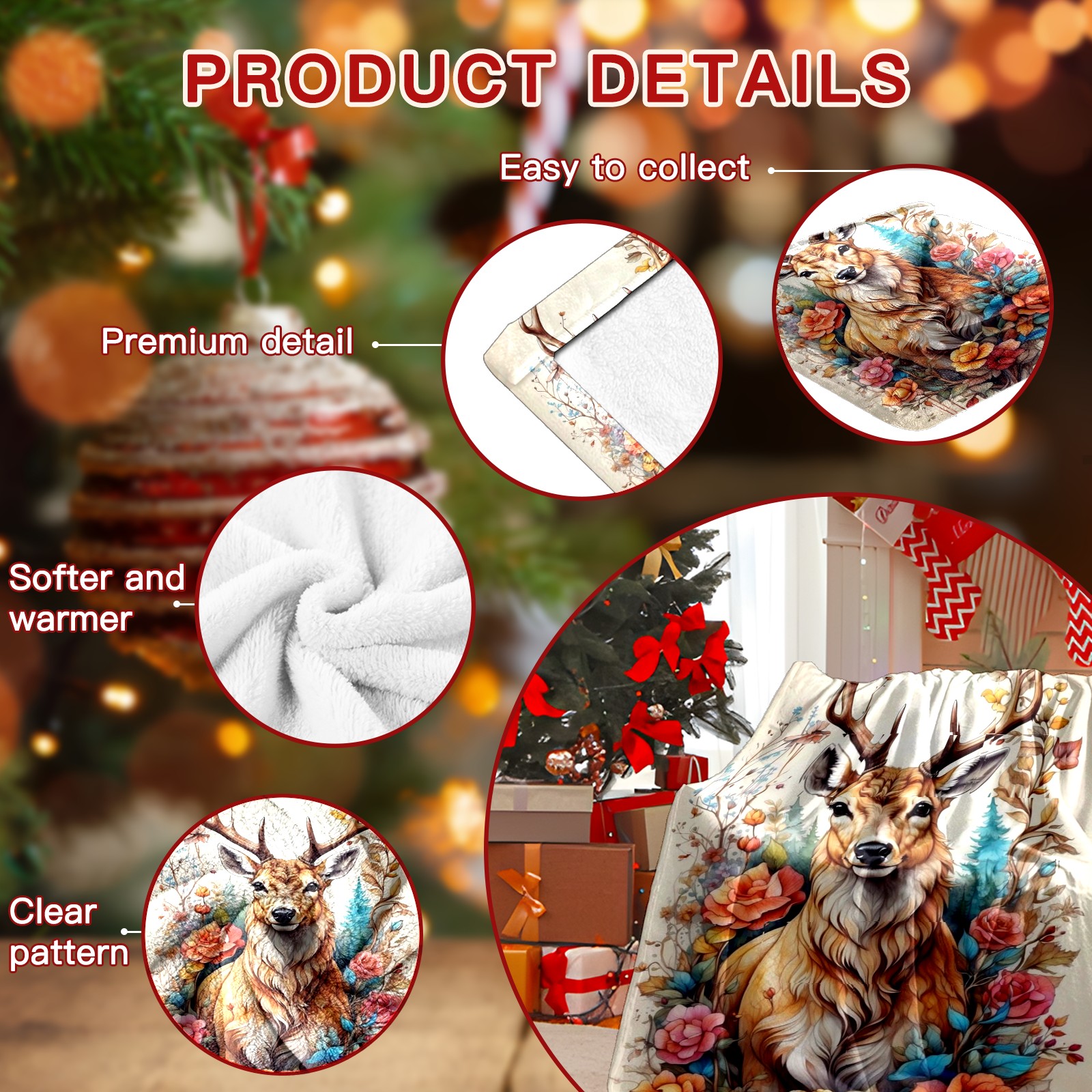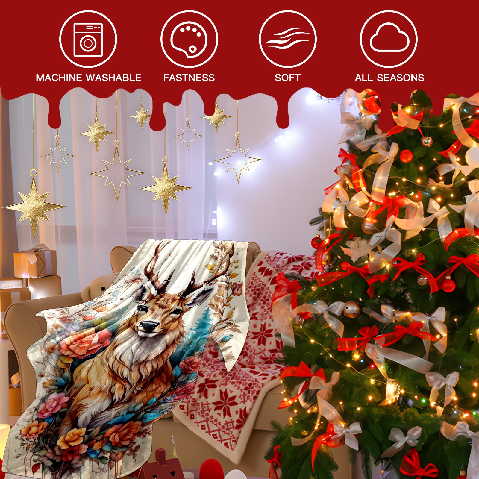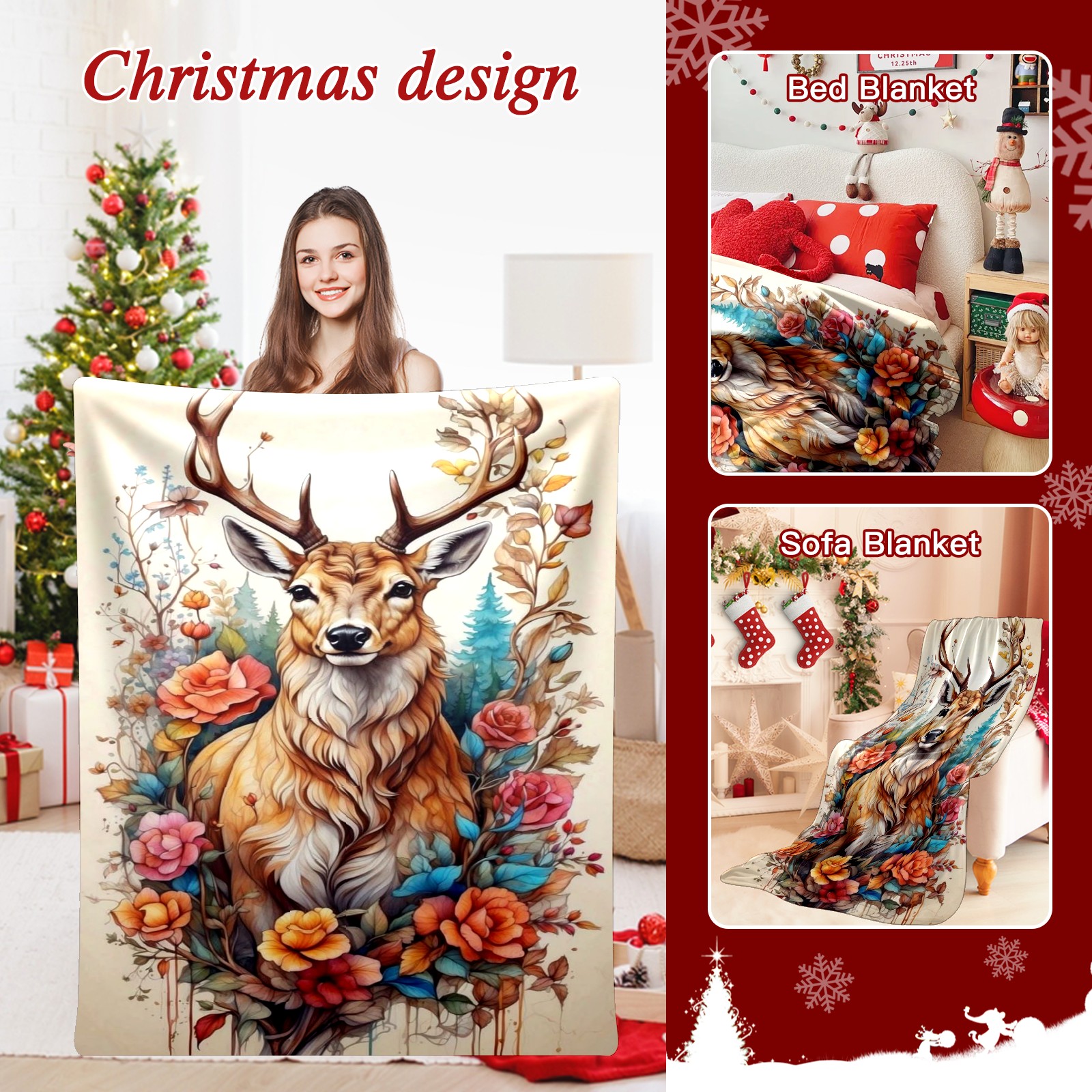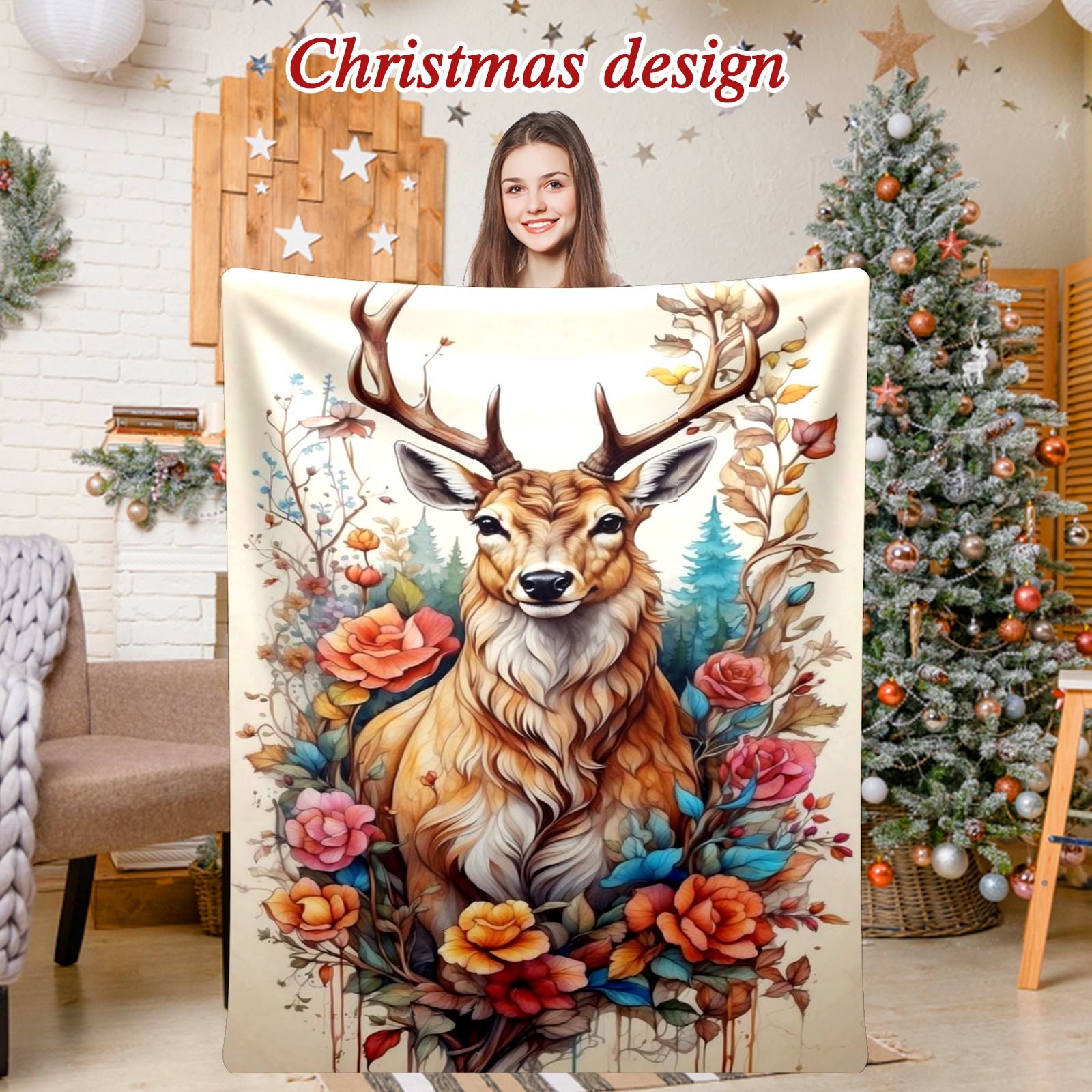 Премиальная фланелевая одеяло Colorful Flowers Deer