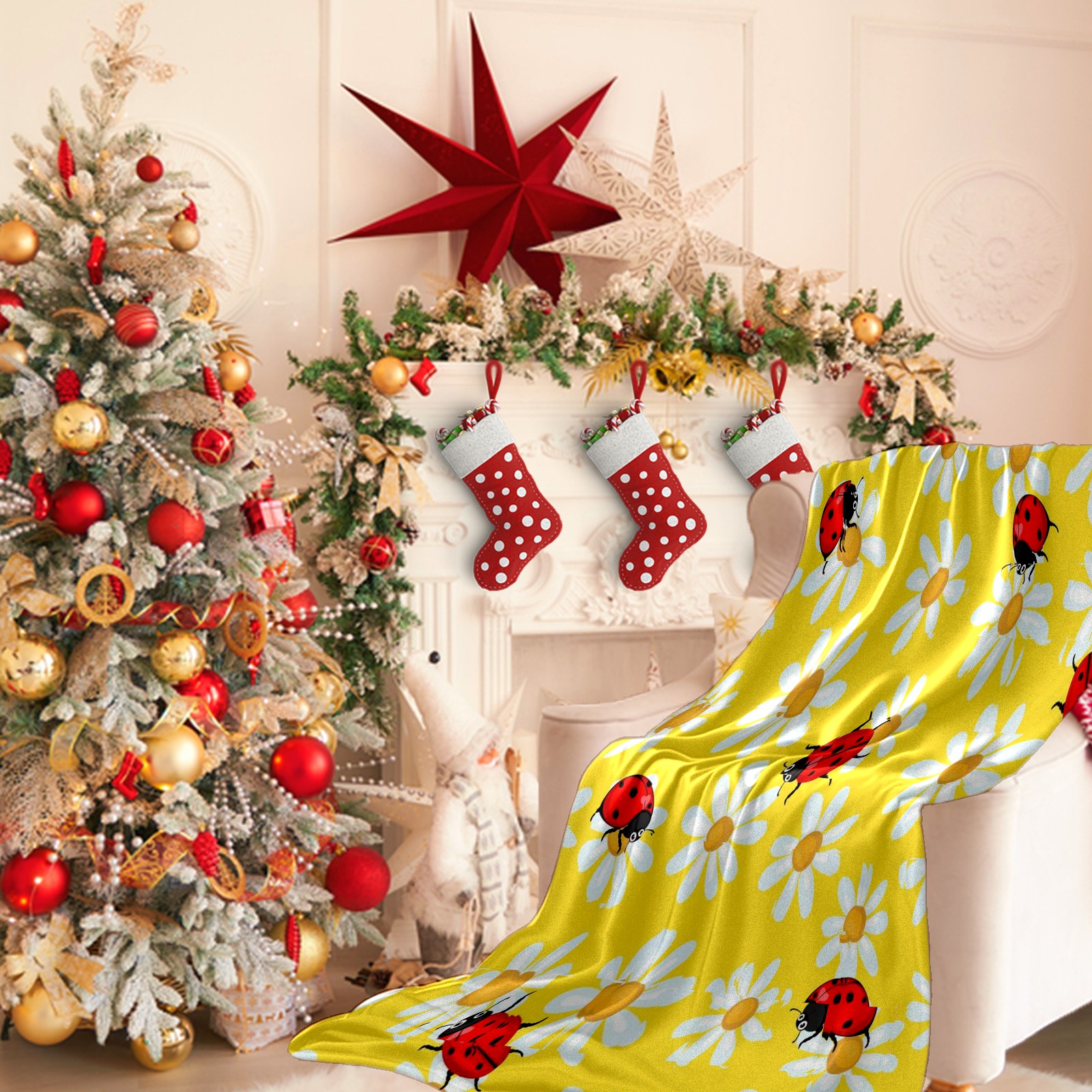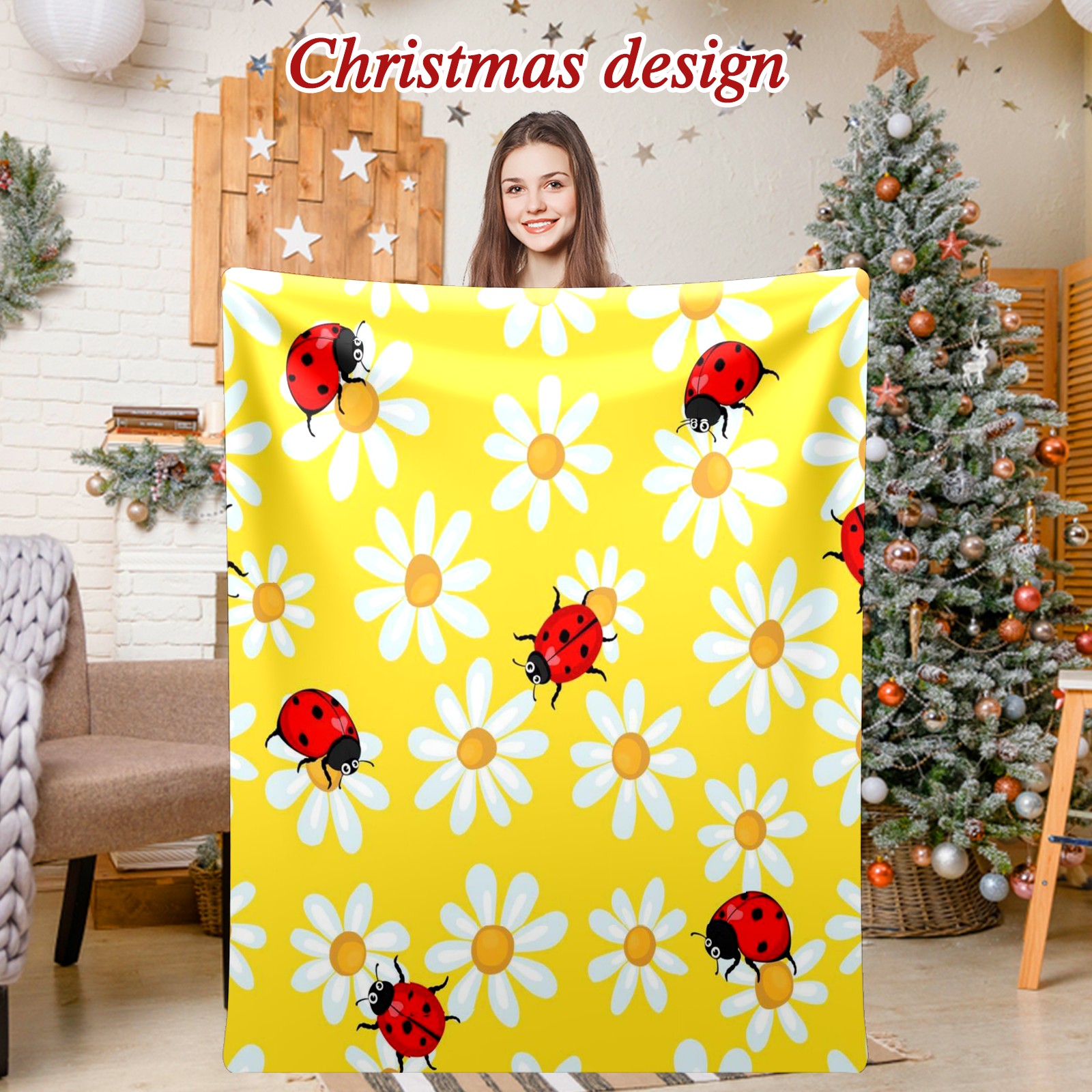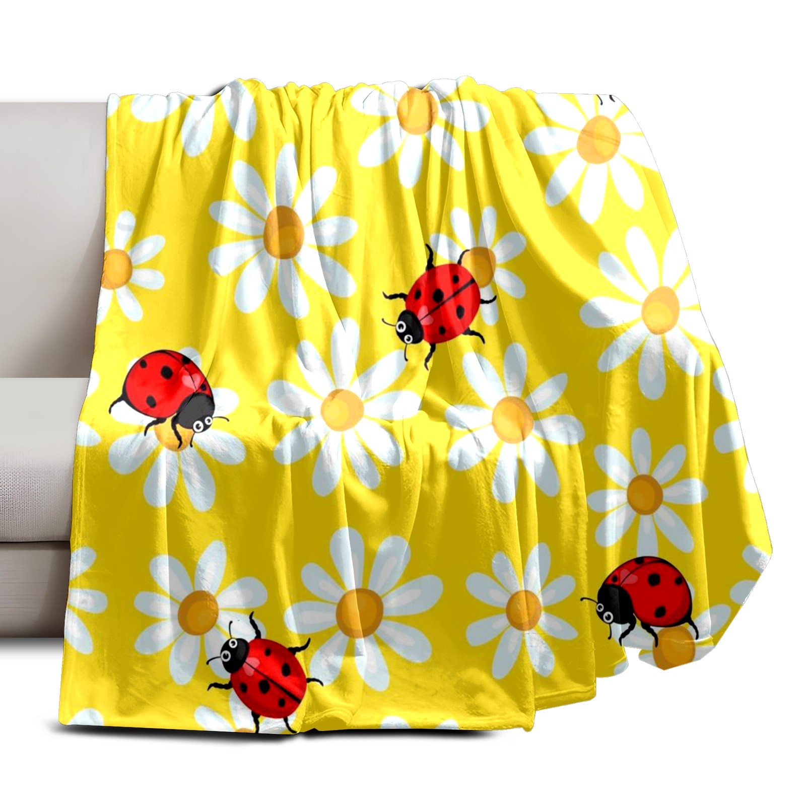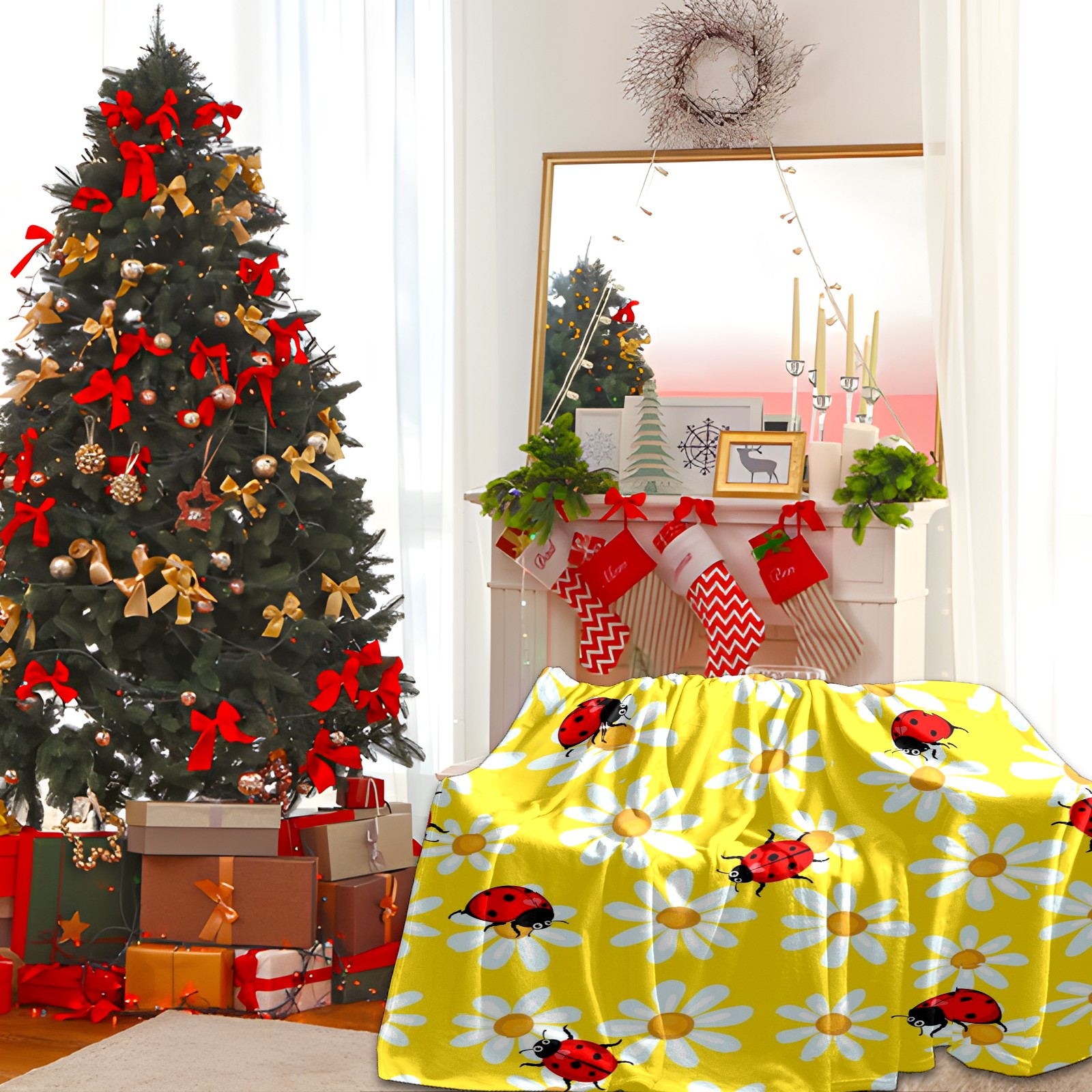 Премиальная фланелевая одеяло Yellow Flowers Ladybugs