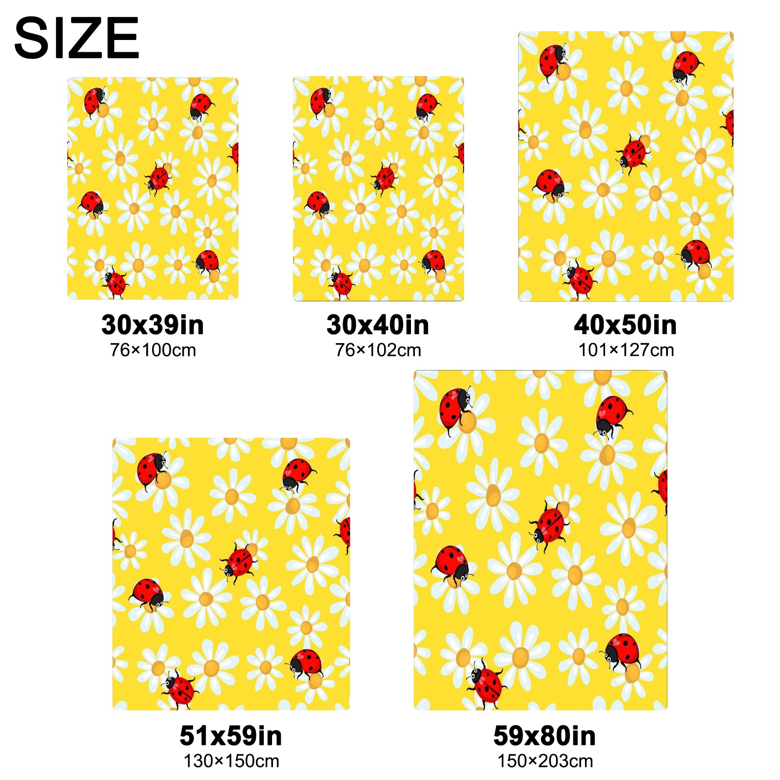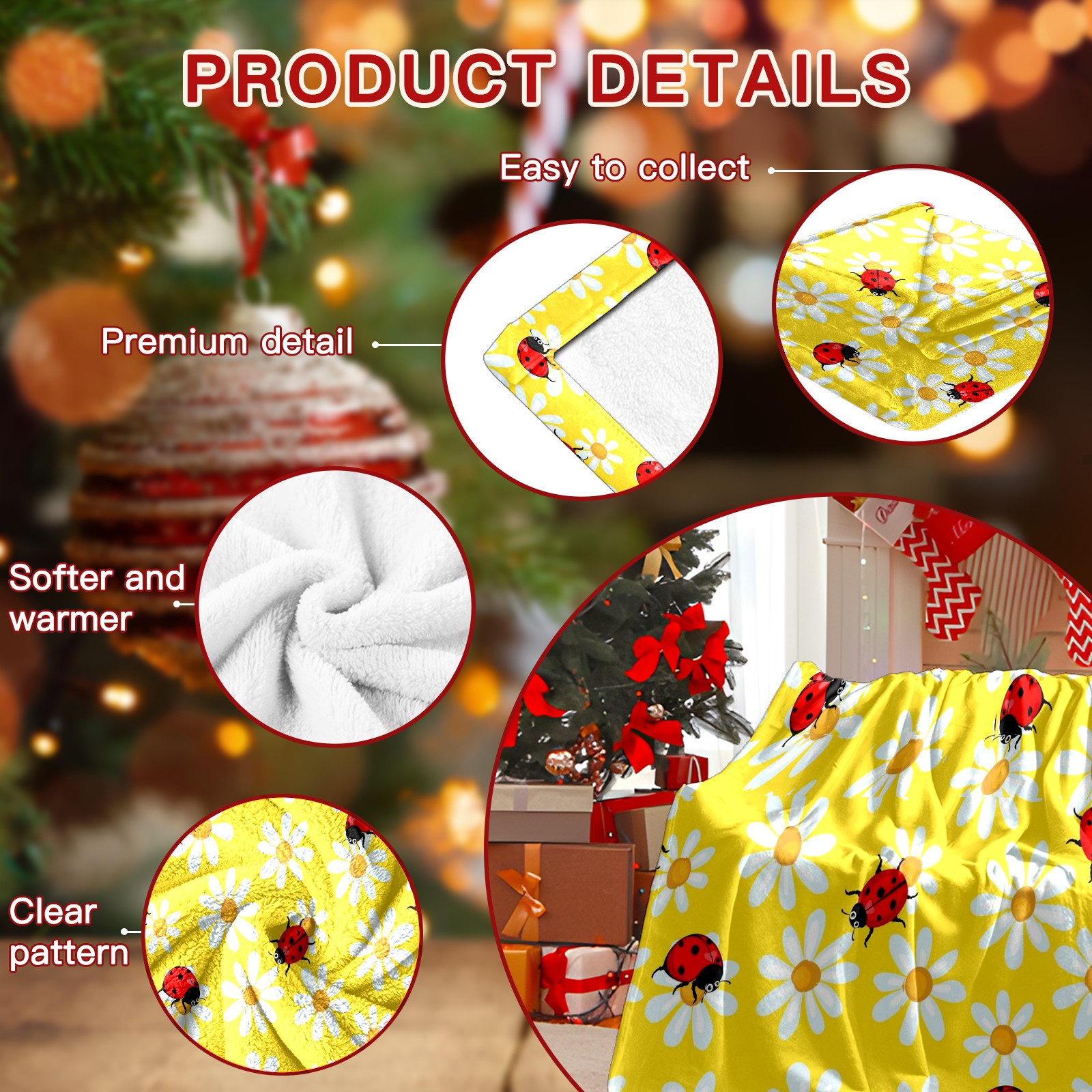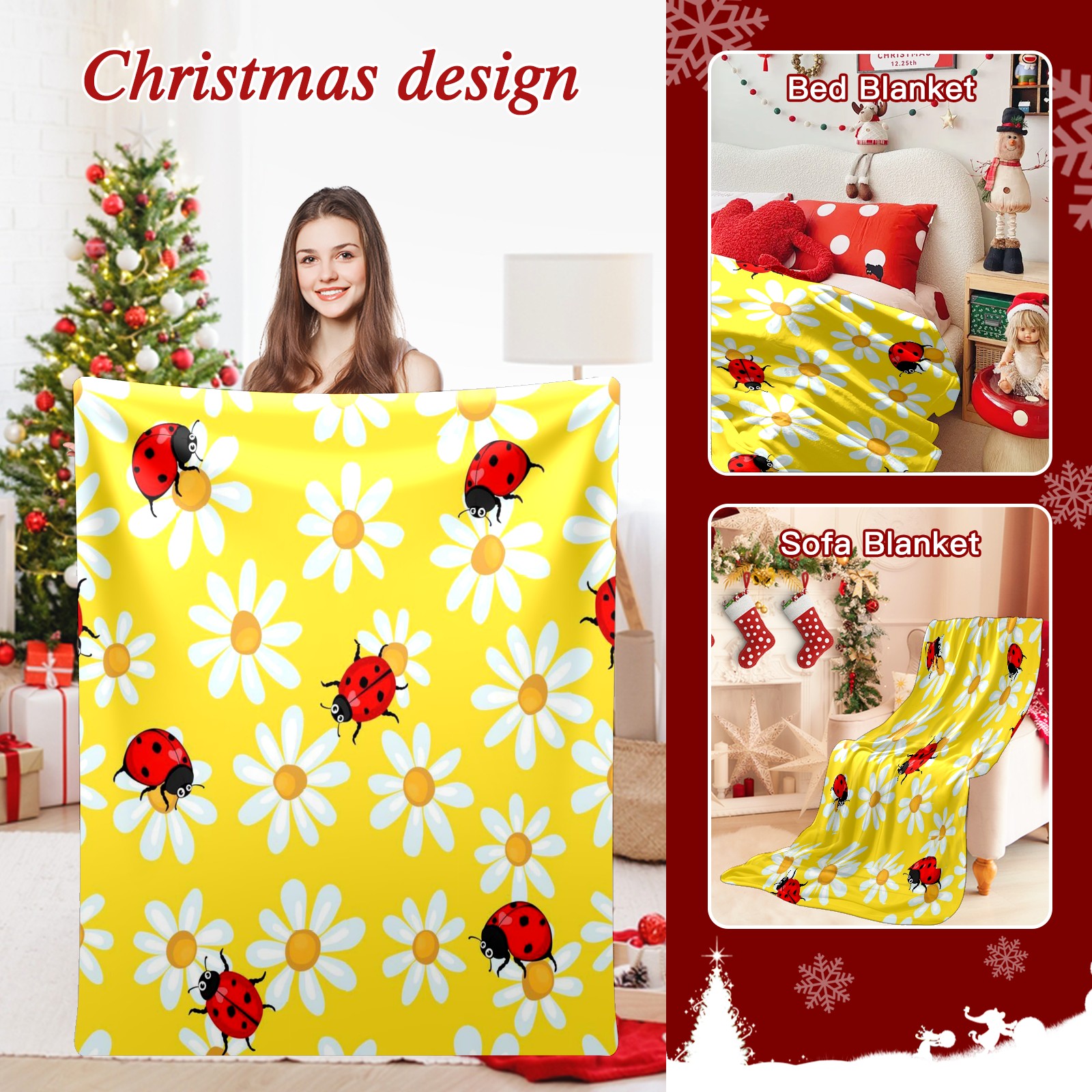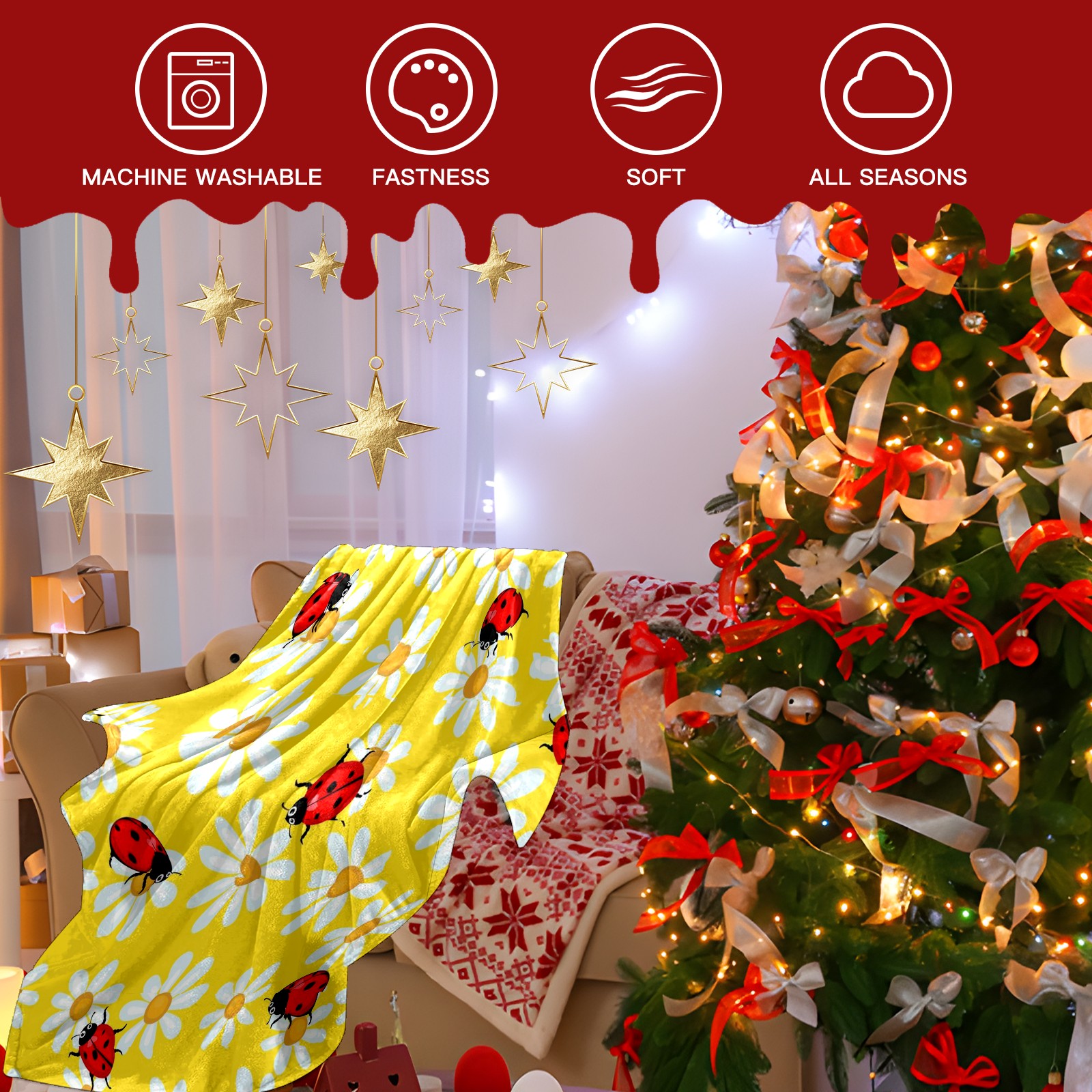 Премиальная фланелевая одеяло Yellow Flowers Ladybugs