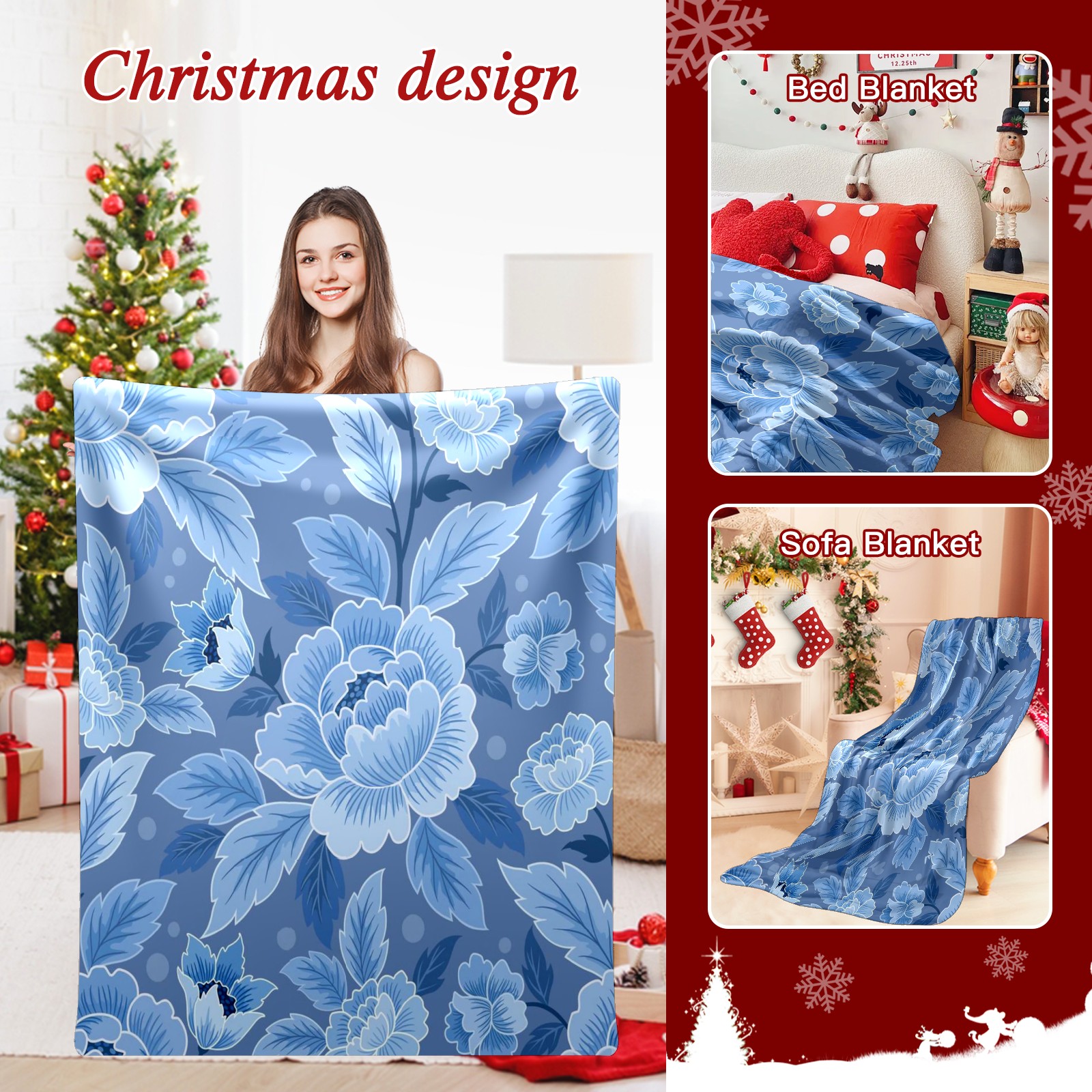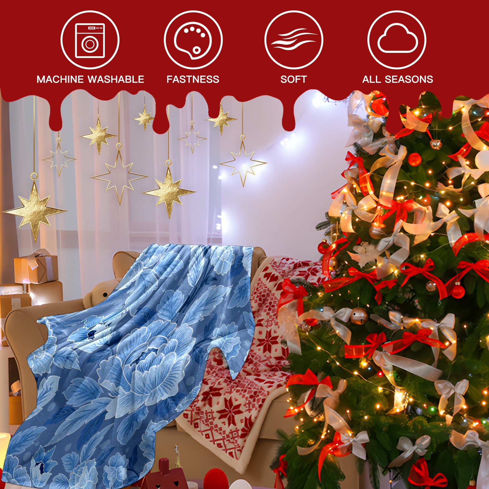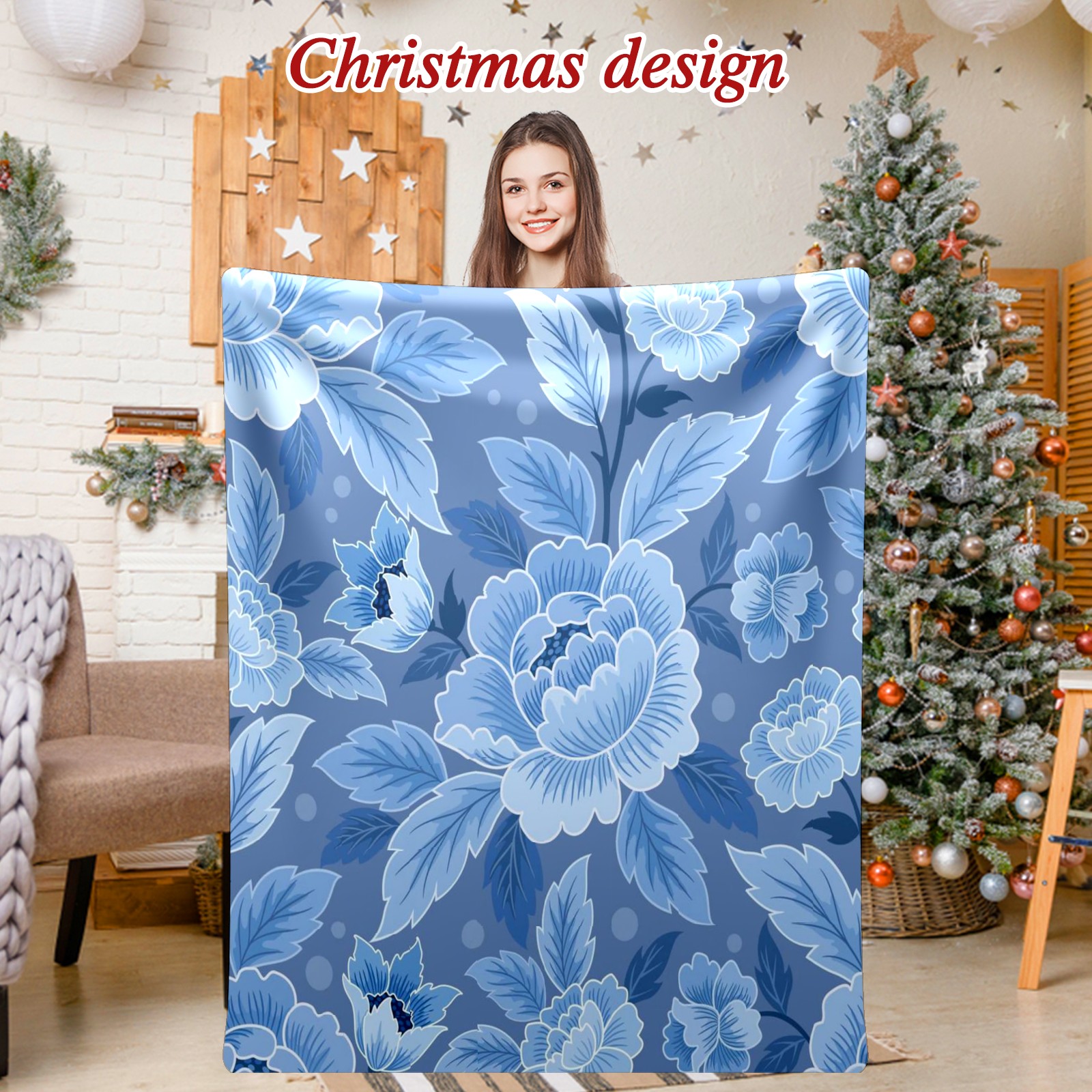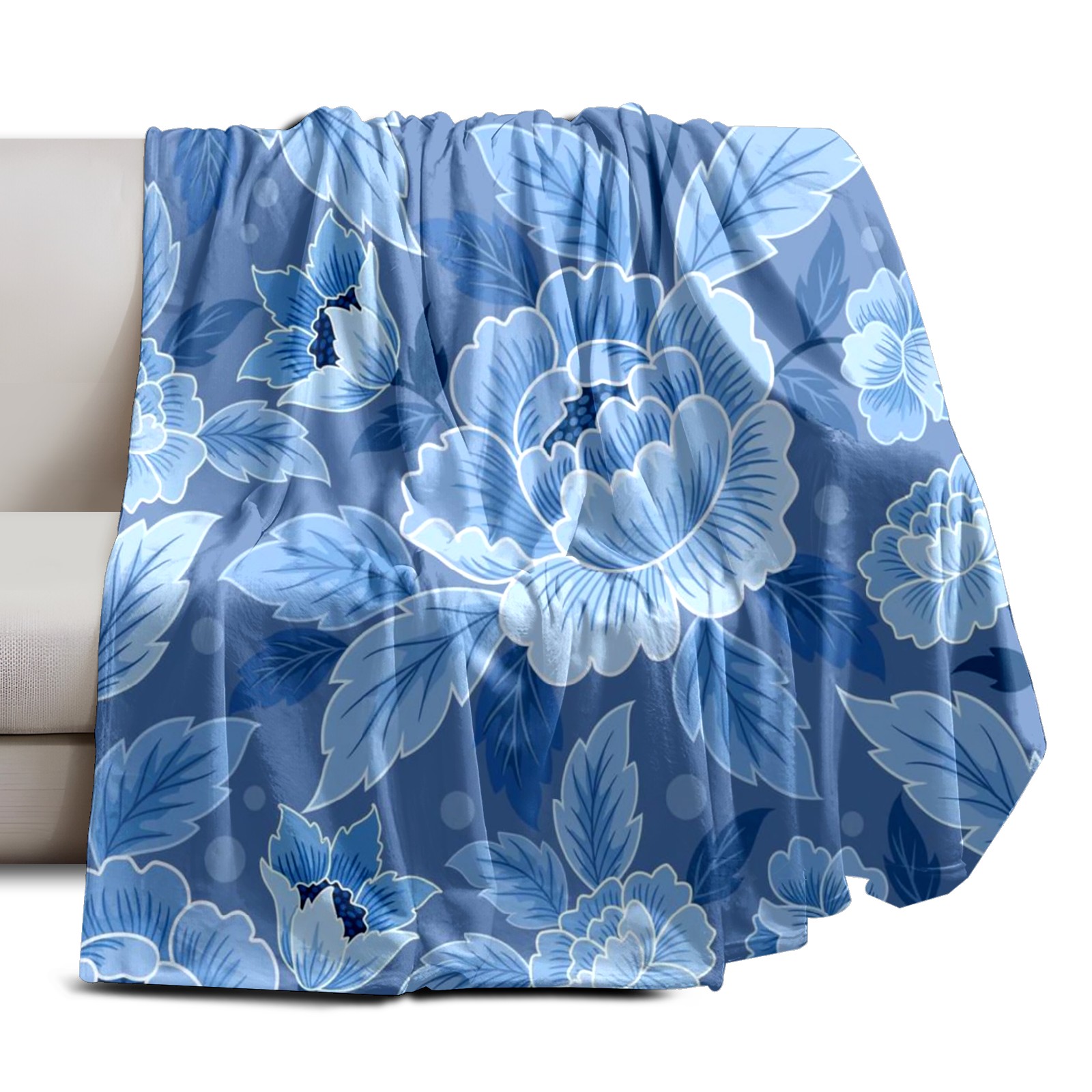 Премиальная фланелевая одеяло Vintage Blue Flowers