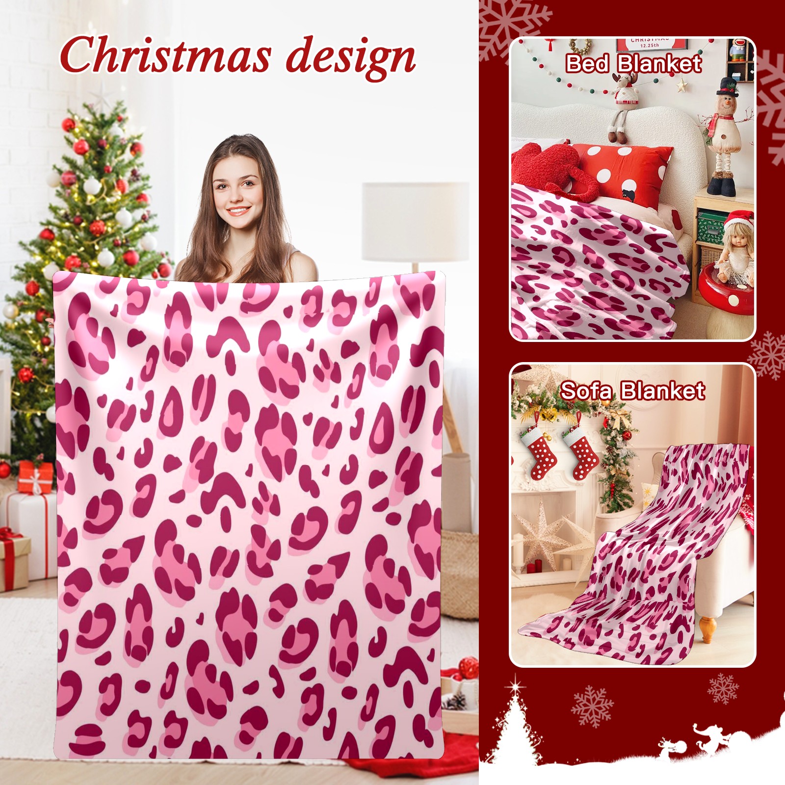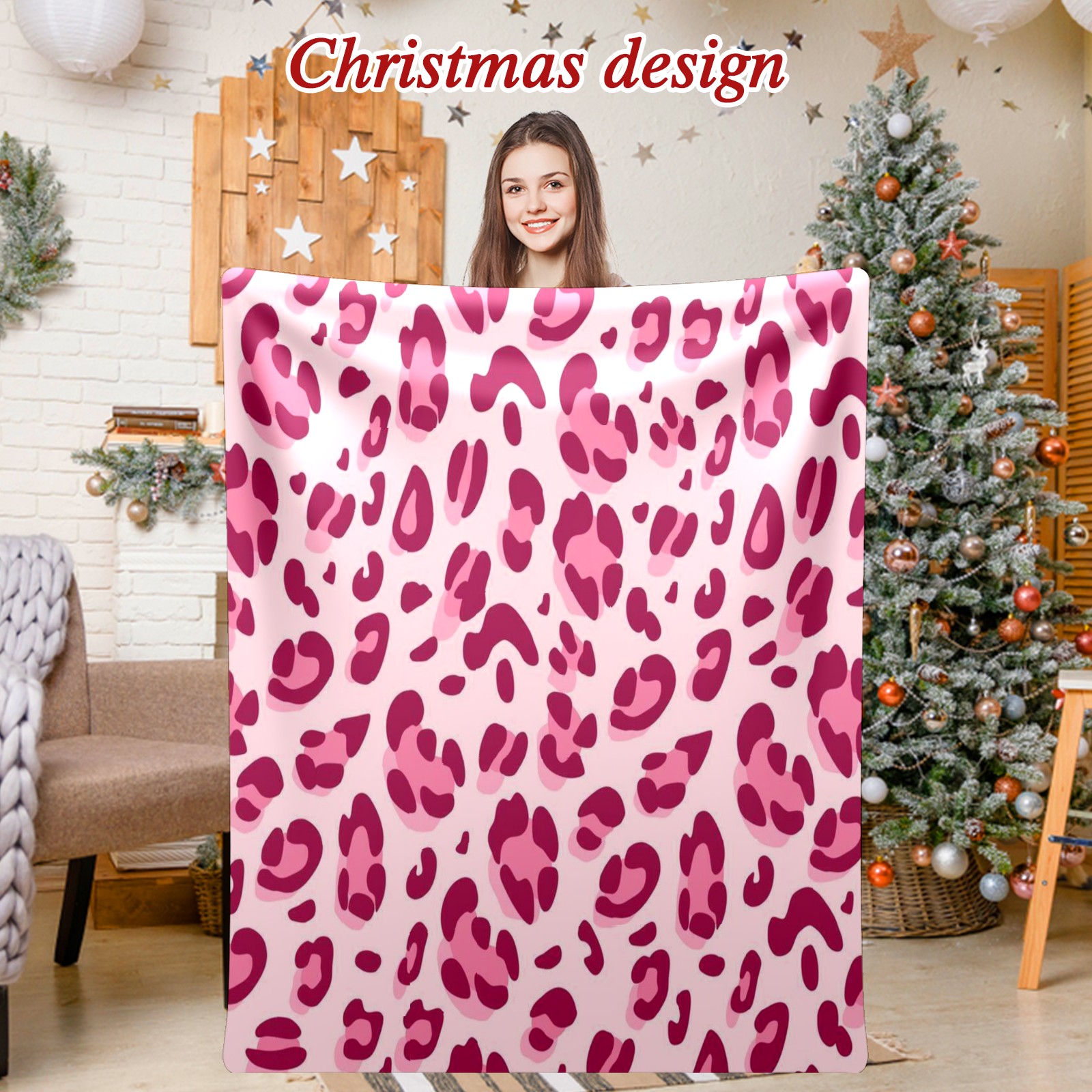 Премиальная фланелевая одеяло Pink Leopard