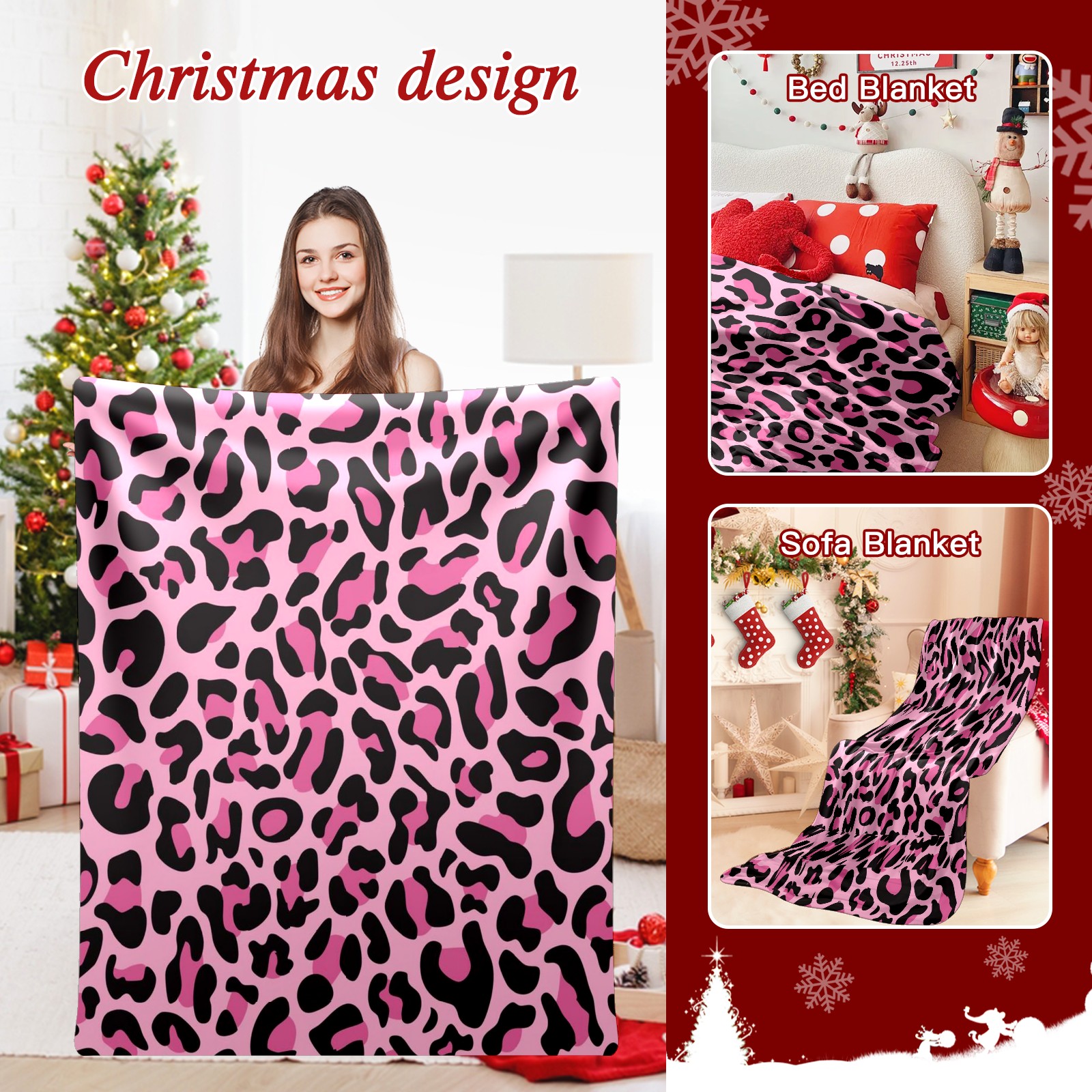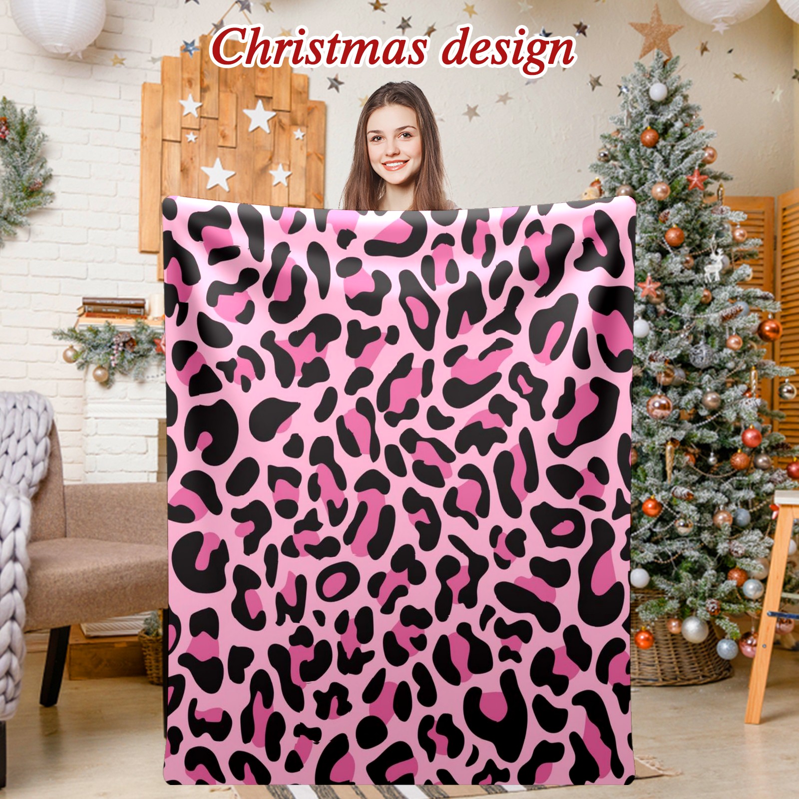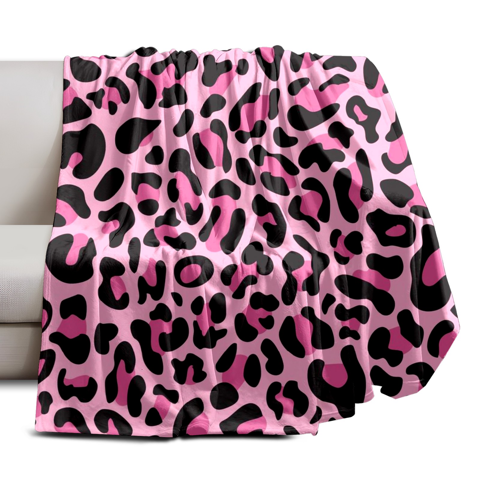 Премиальная фланелевая одеяло Pink Black Leopard Print