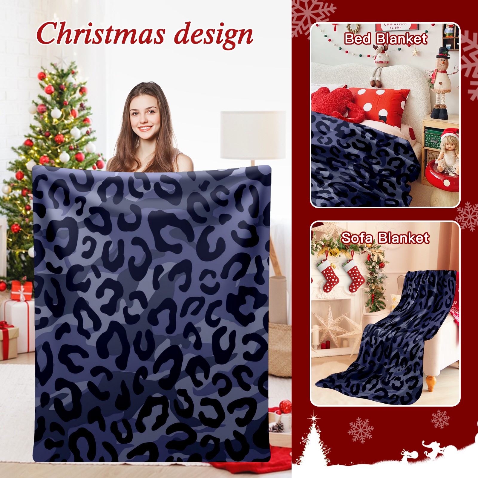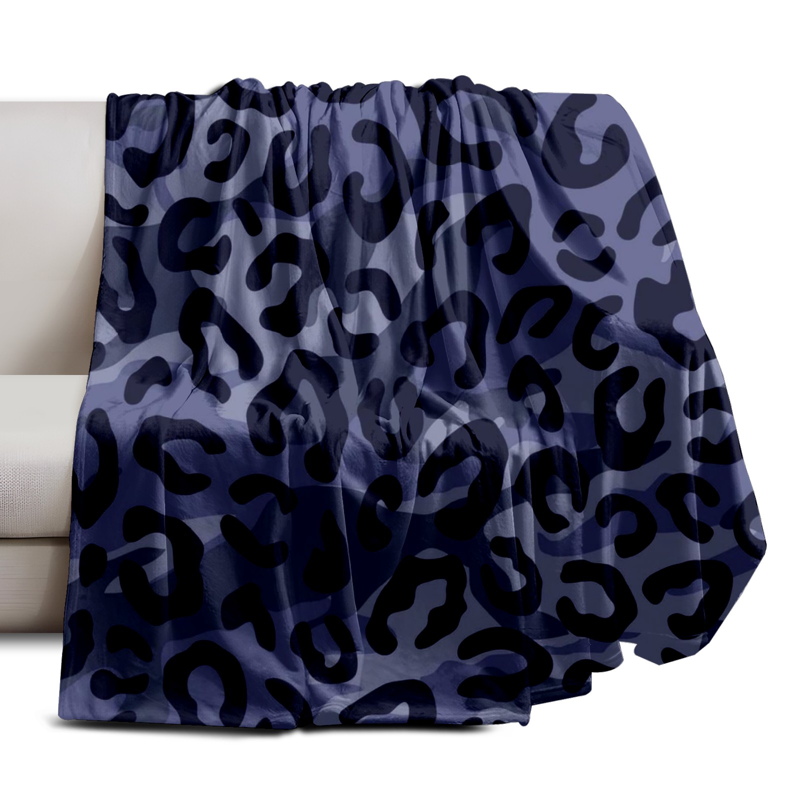 Премиальная фланелевая одеяло Navy Blue Black Leopard Animal