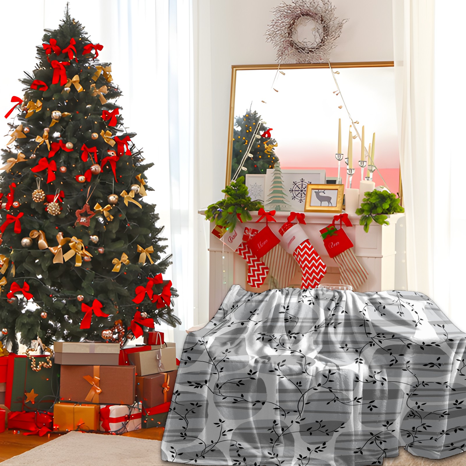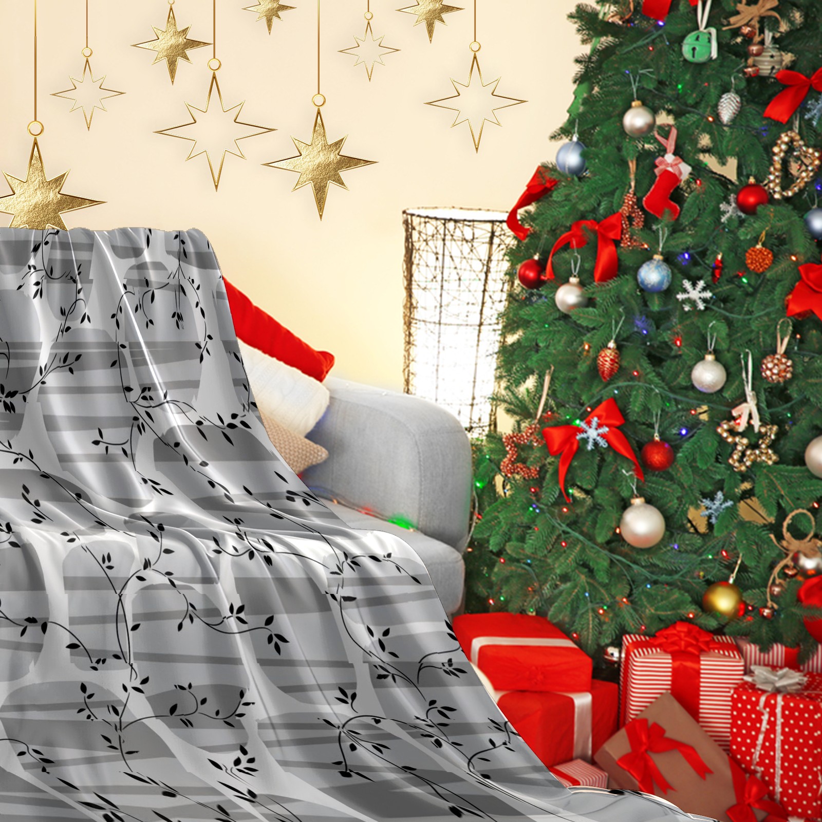 Премиальная фланелевая одеяло Gray Floral