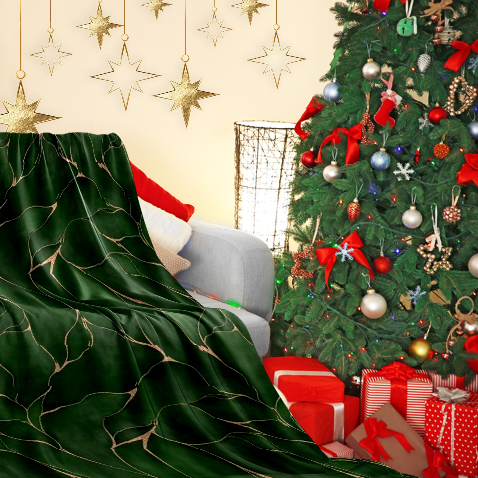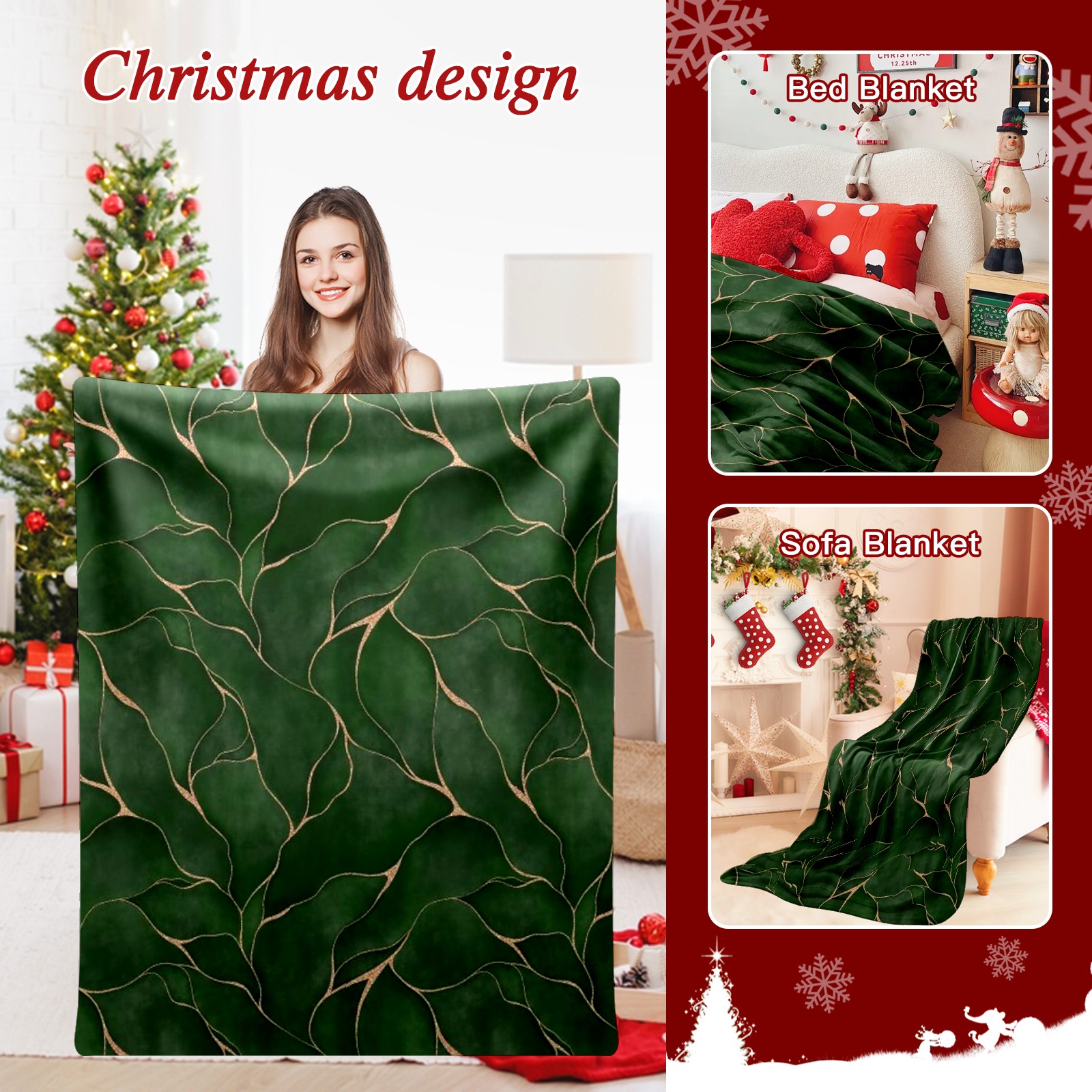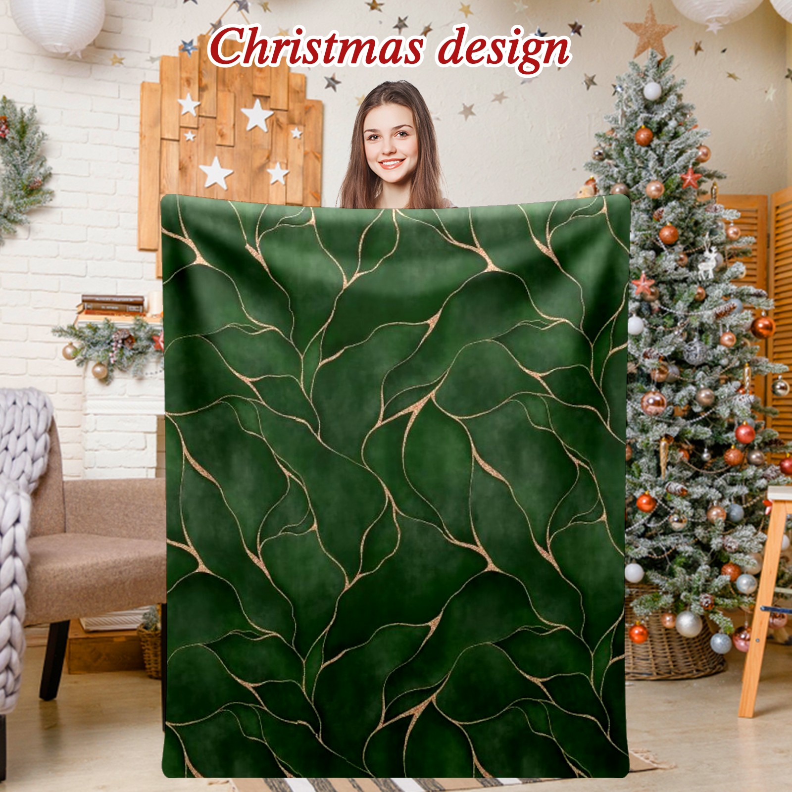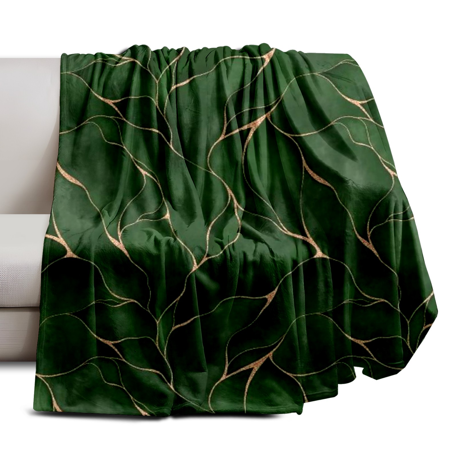 Премиальная фланелевая одеяло Gold Green Leaf Texture