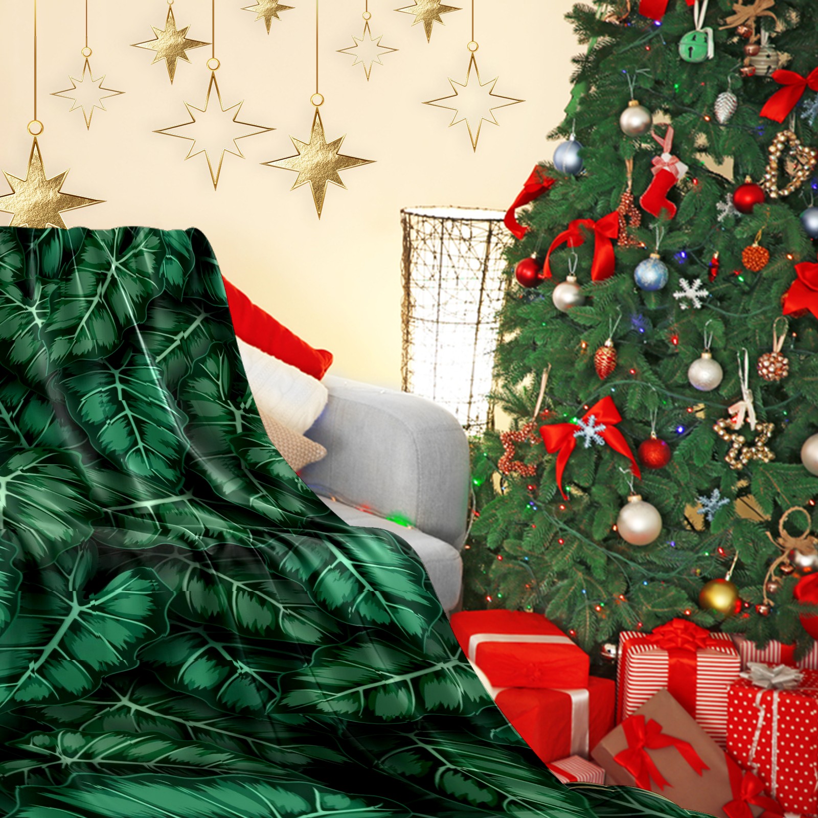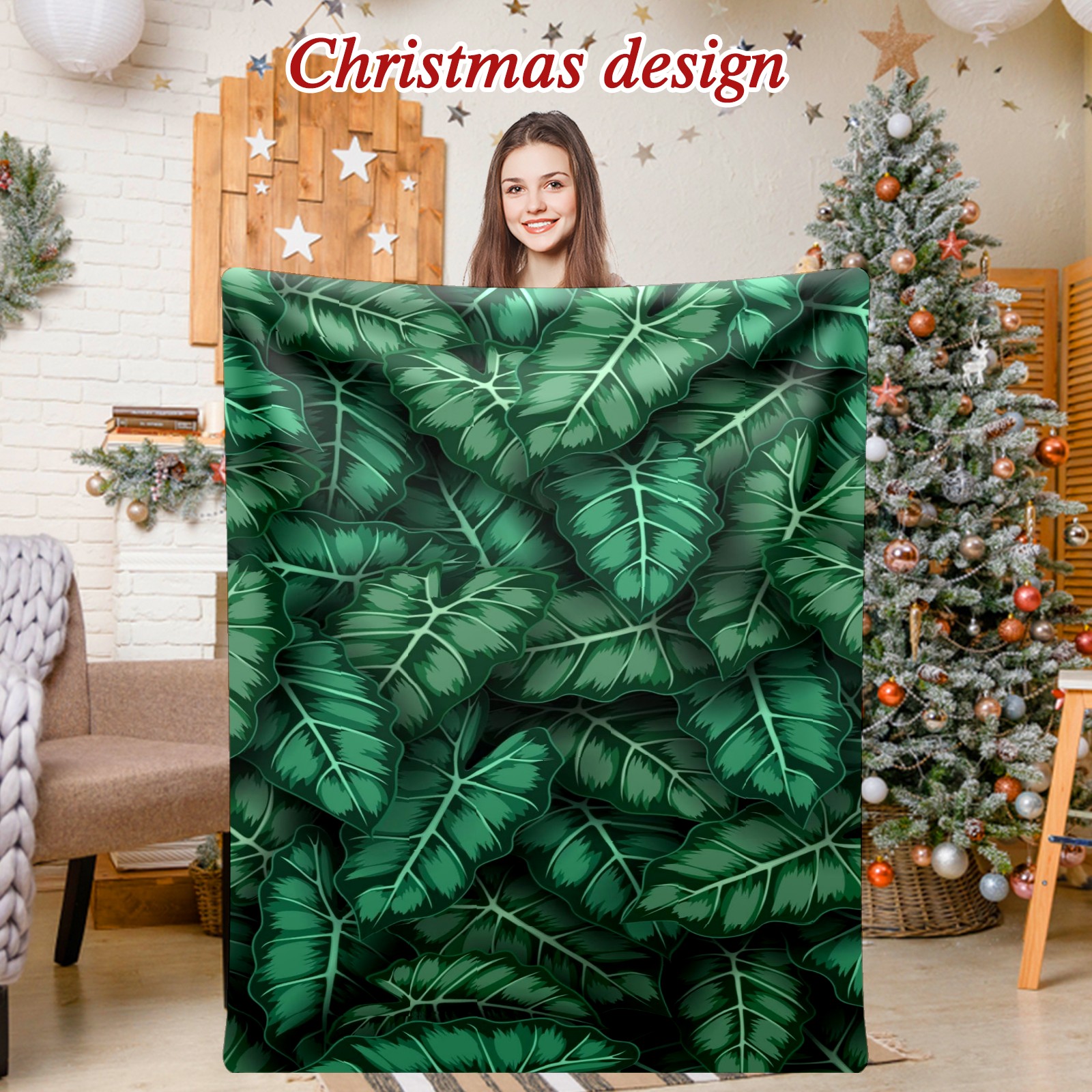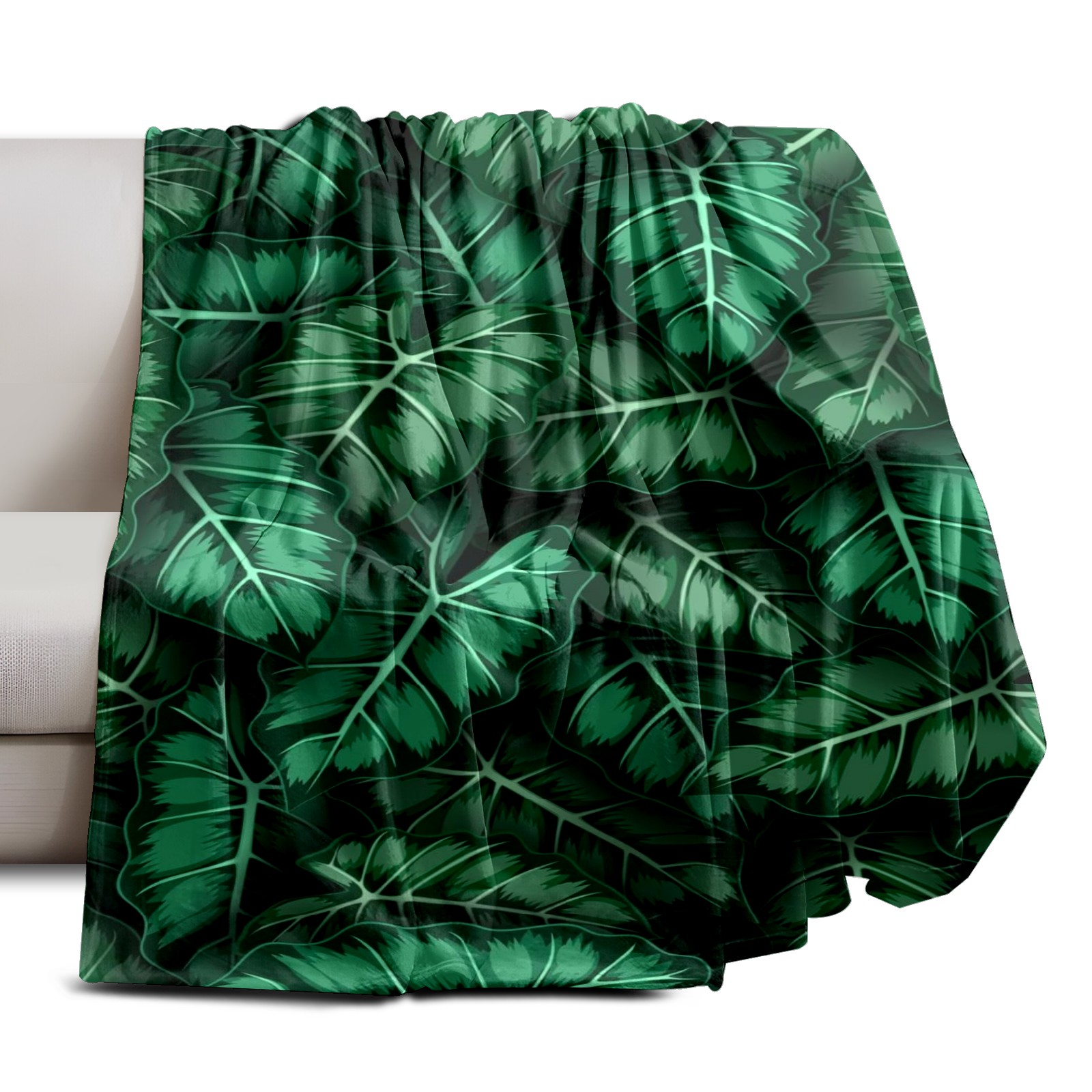 Премиальная фланелевая одеяло Green Leaves Print