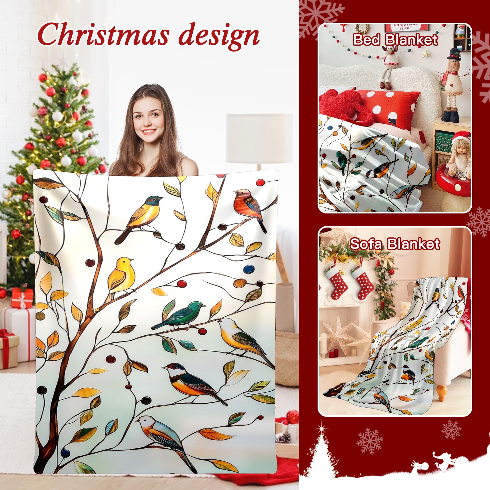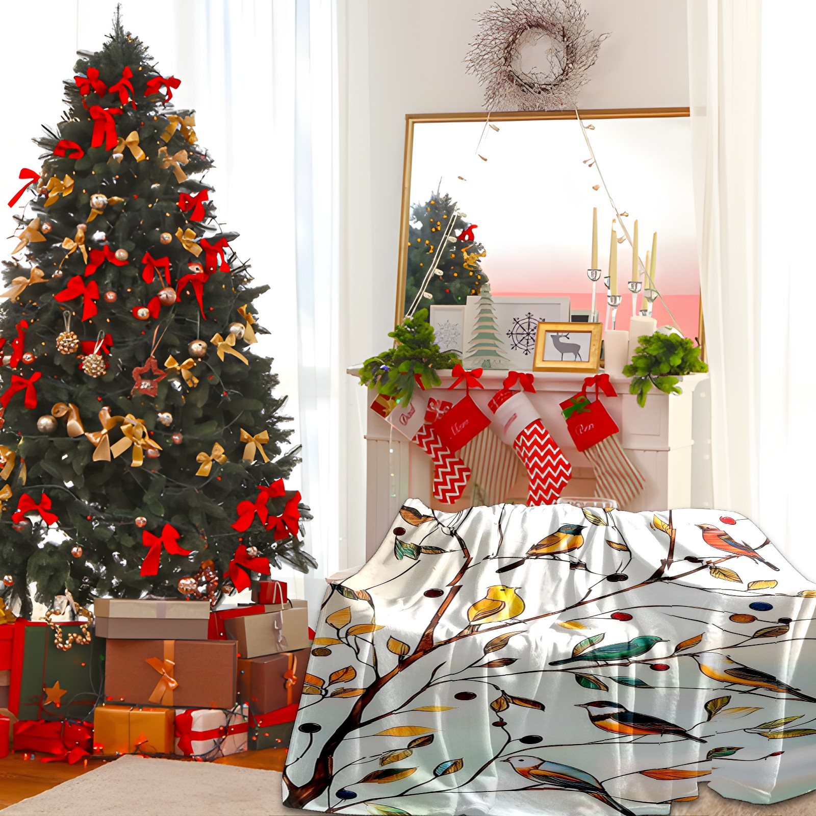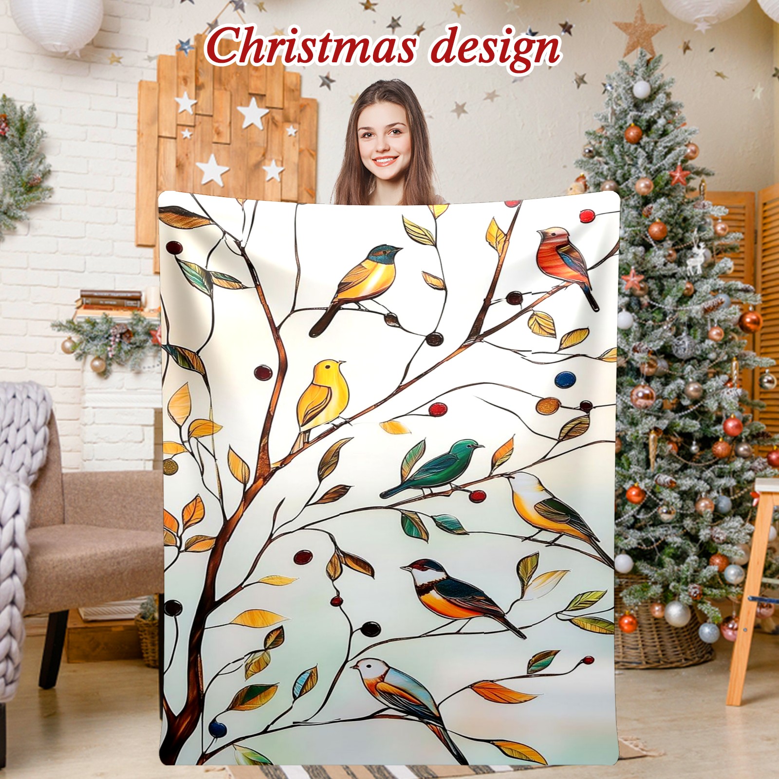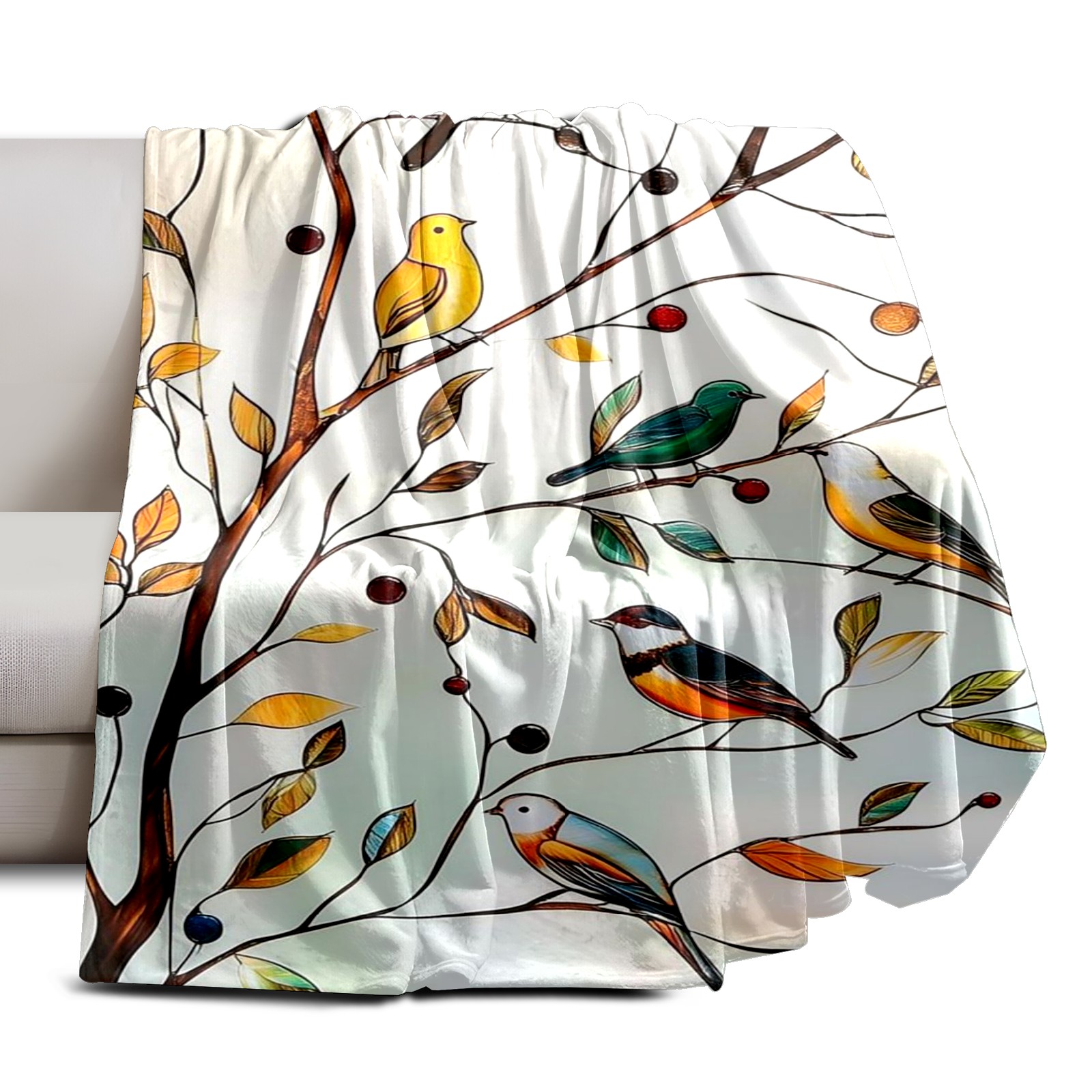 Премиальная фланелевая одеяло Autumn Leaves Birds