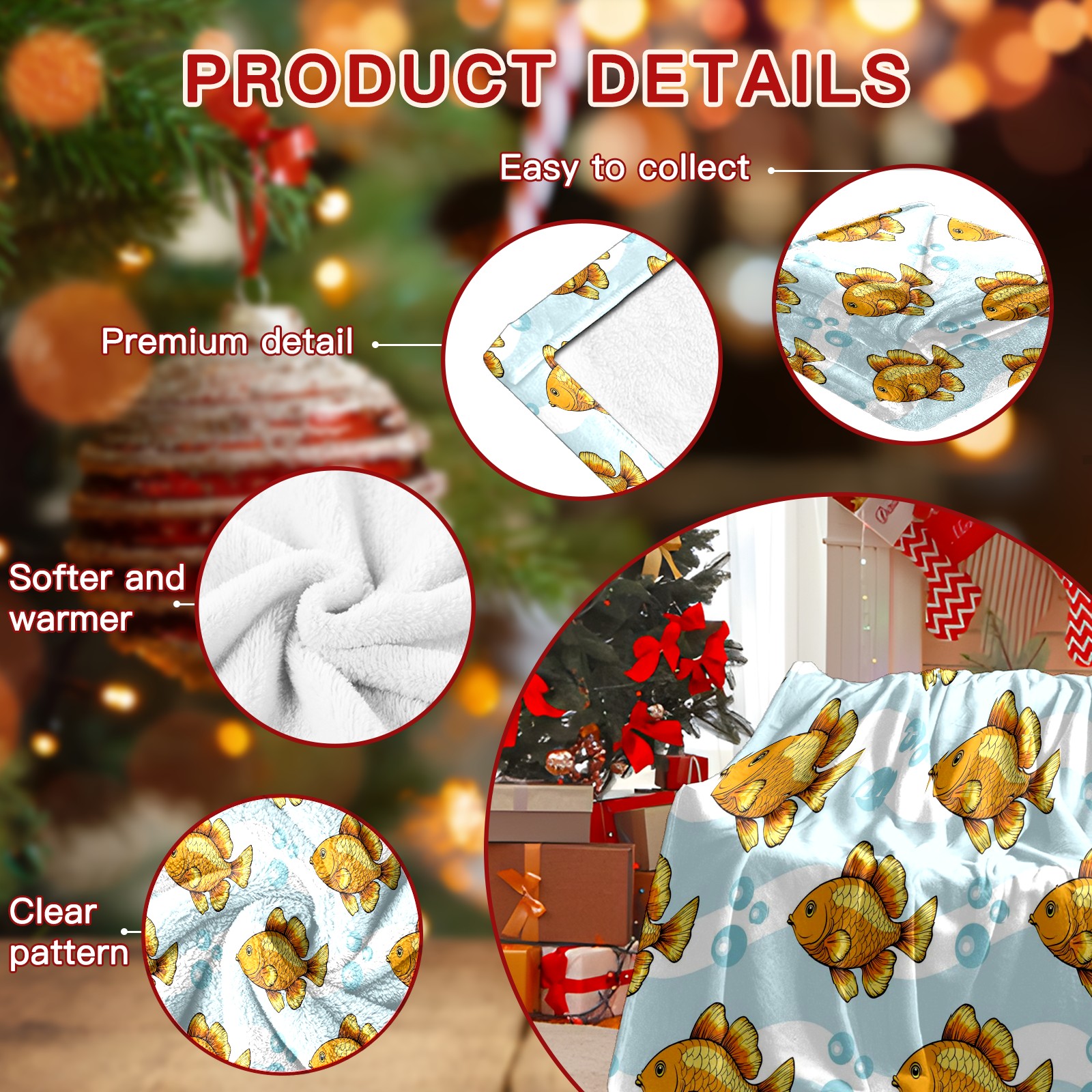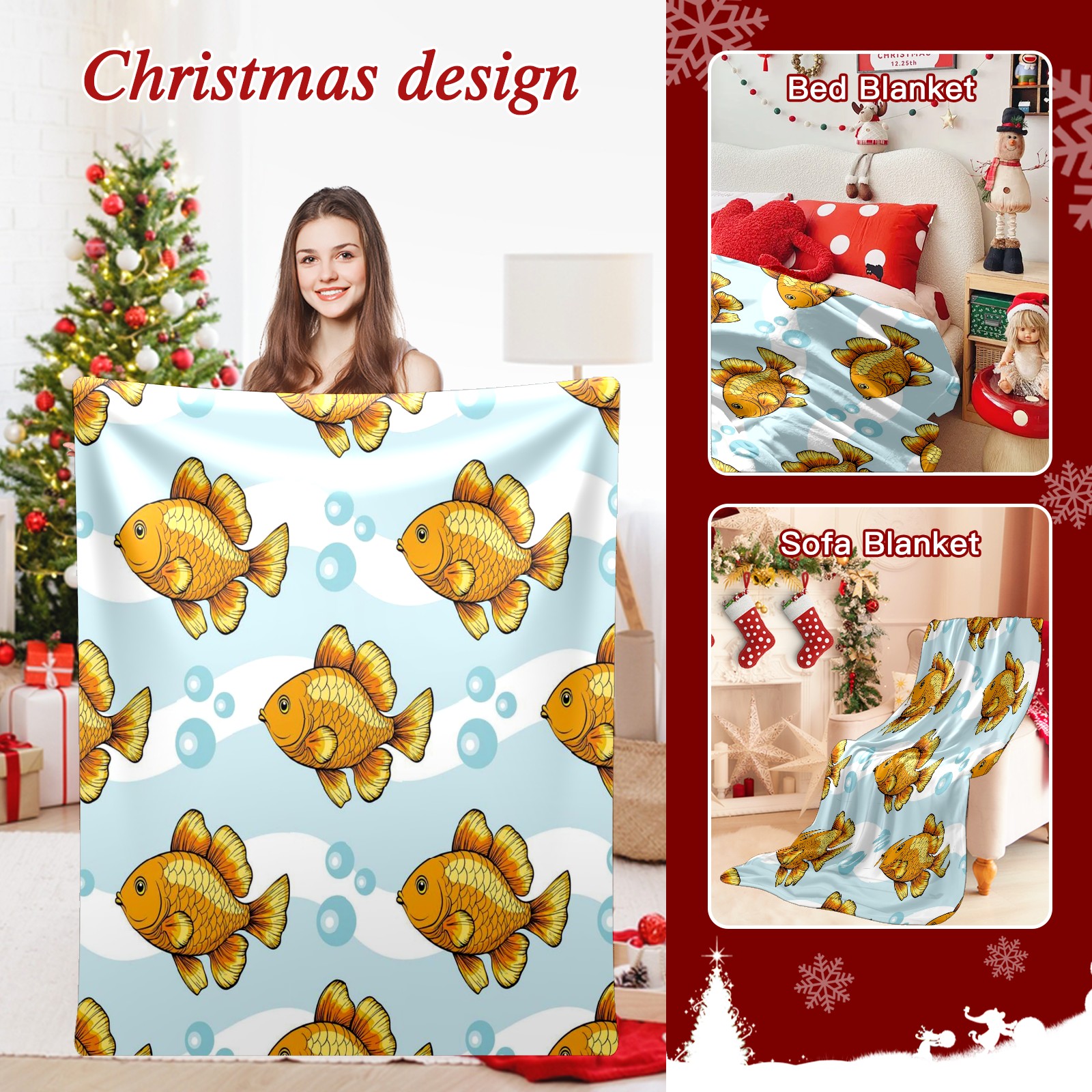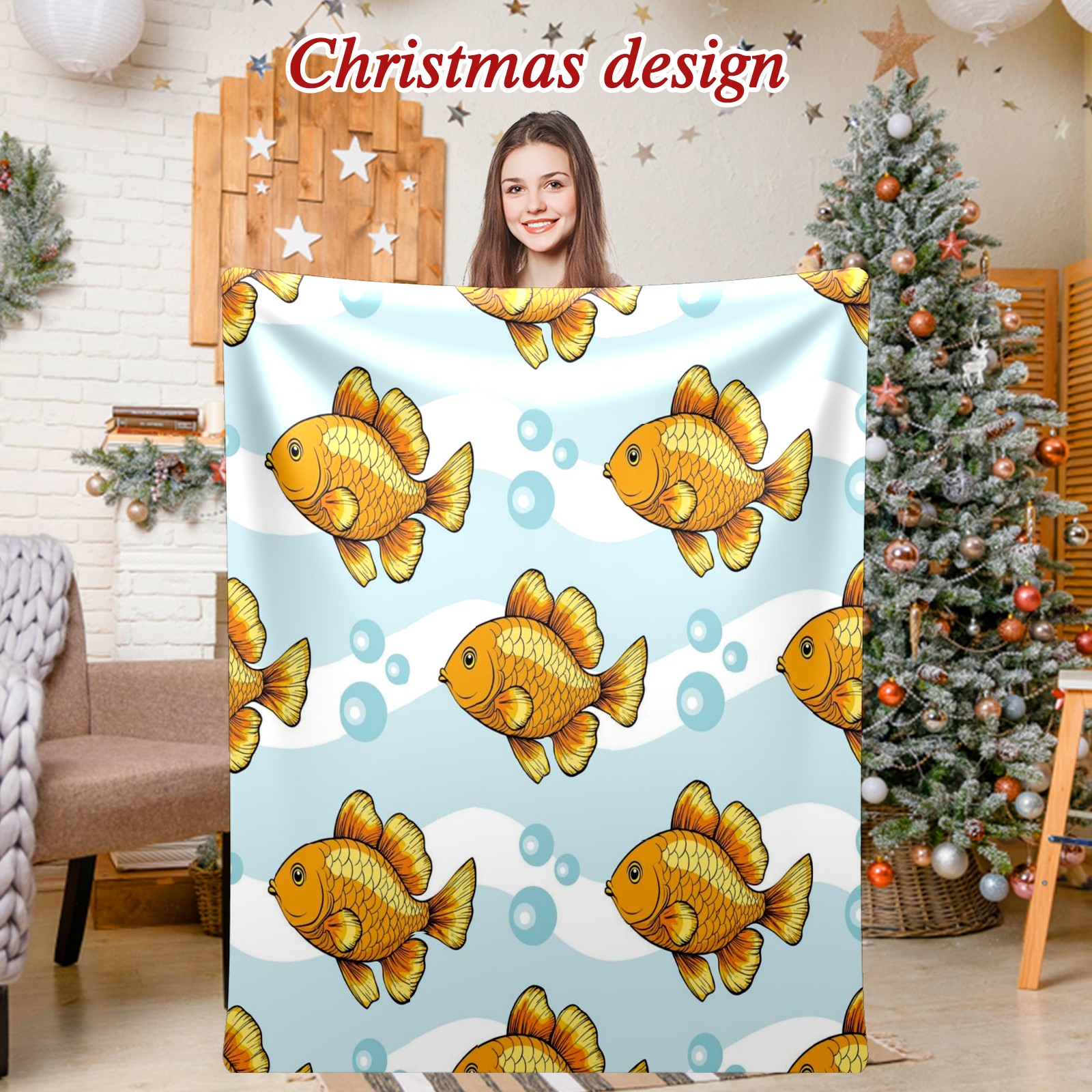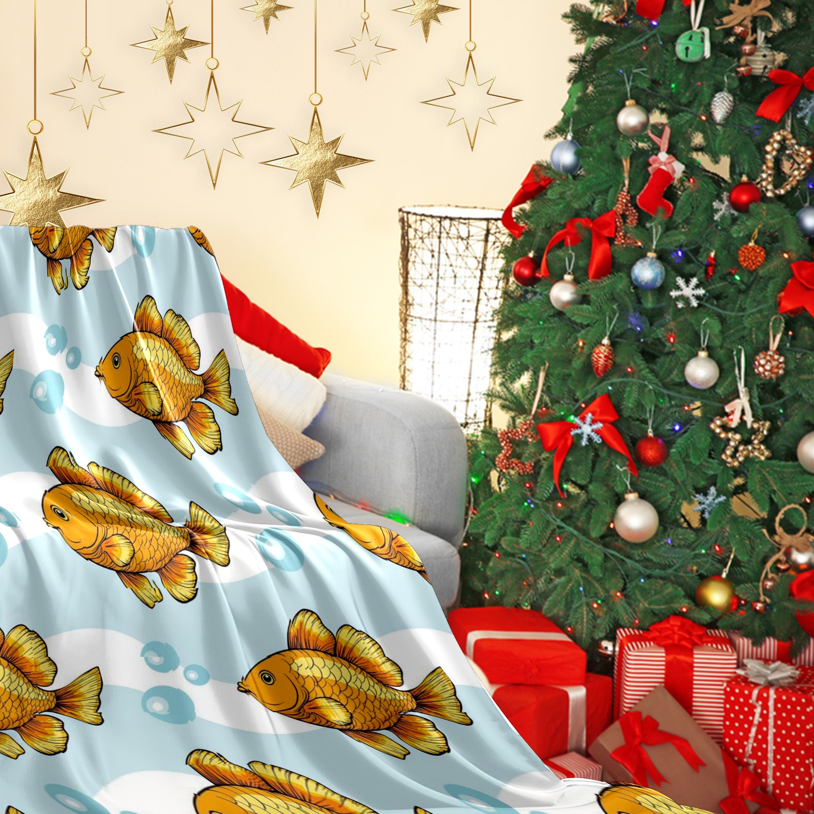 Премиальная фланелевая одеяло Yellow Fishes