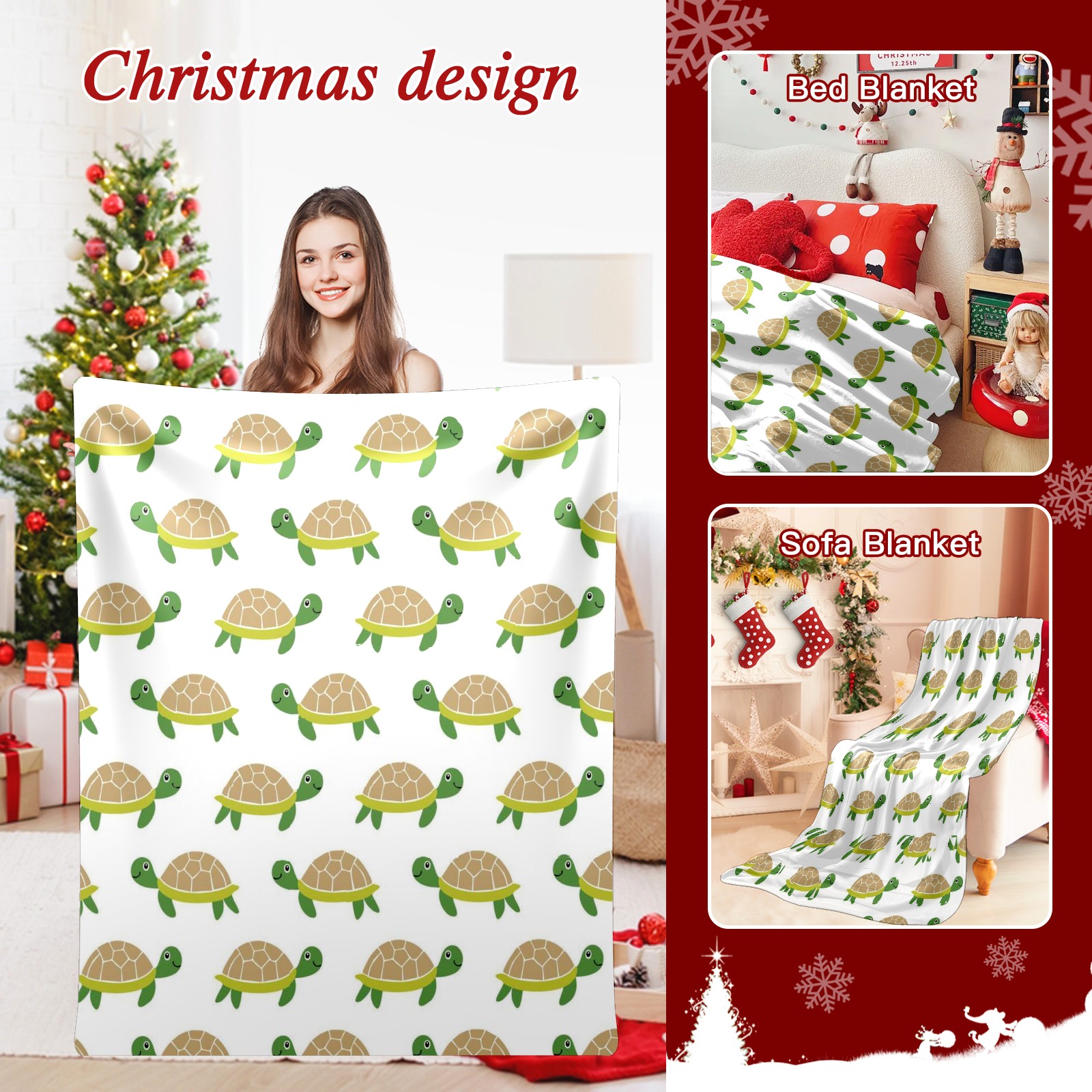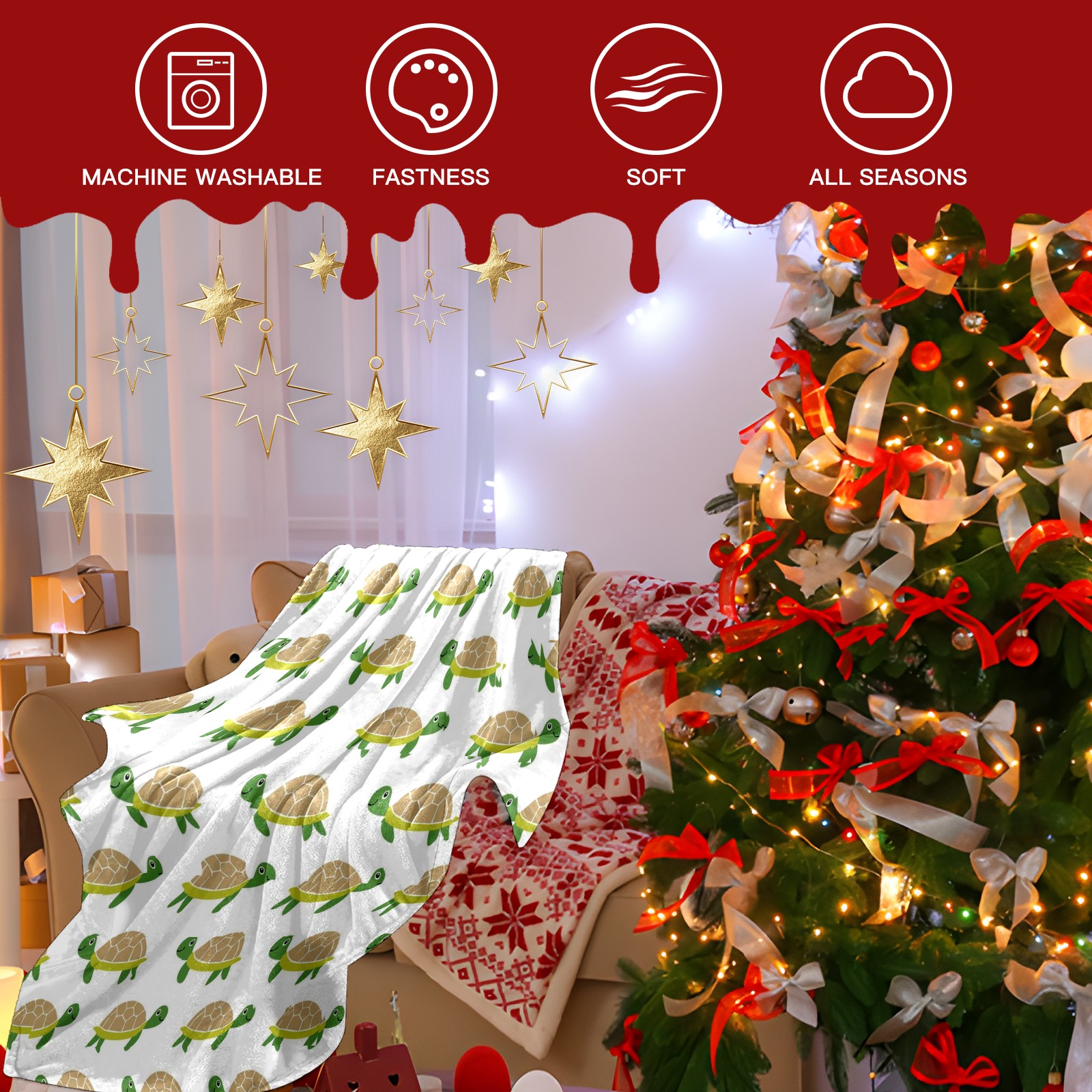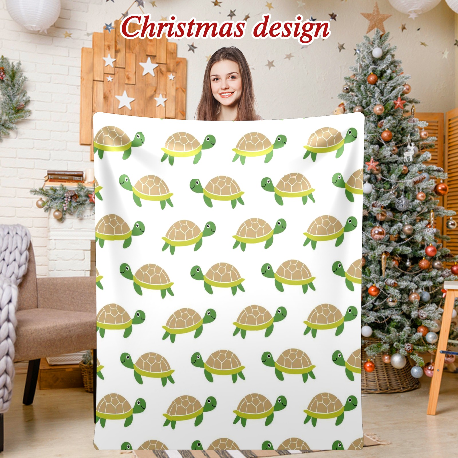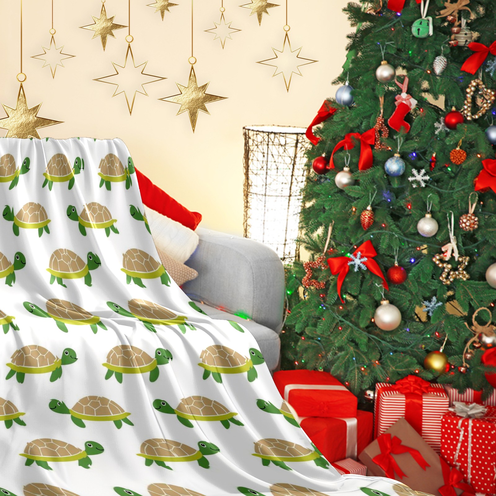 Премиальная фланелевая одеяло White Green Sea Turtles