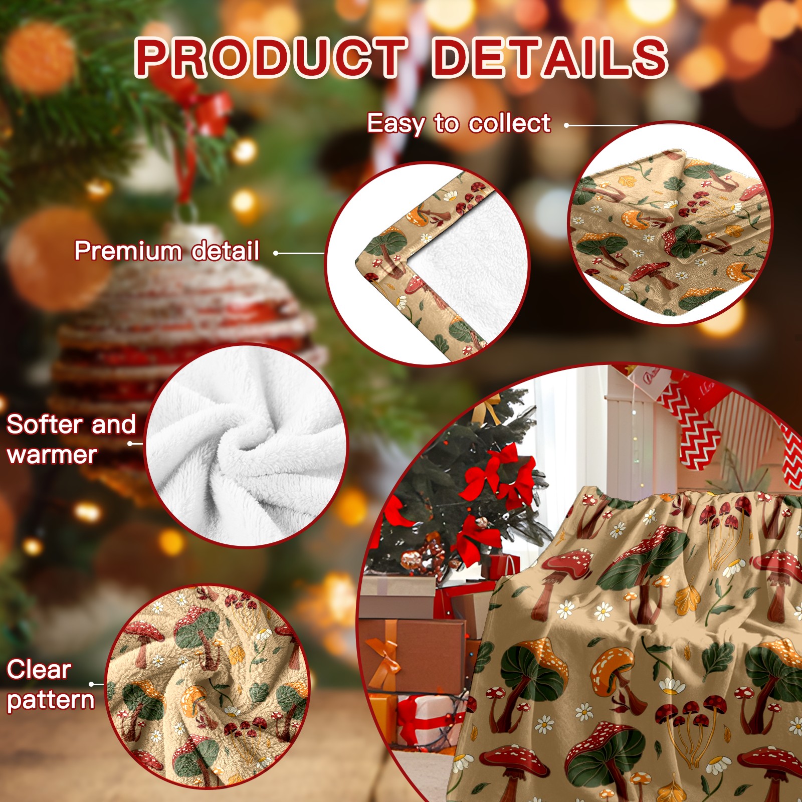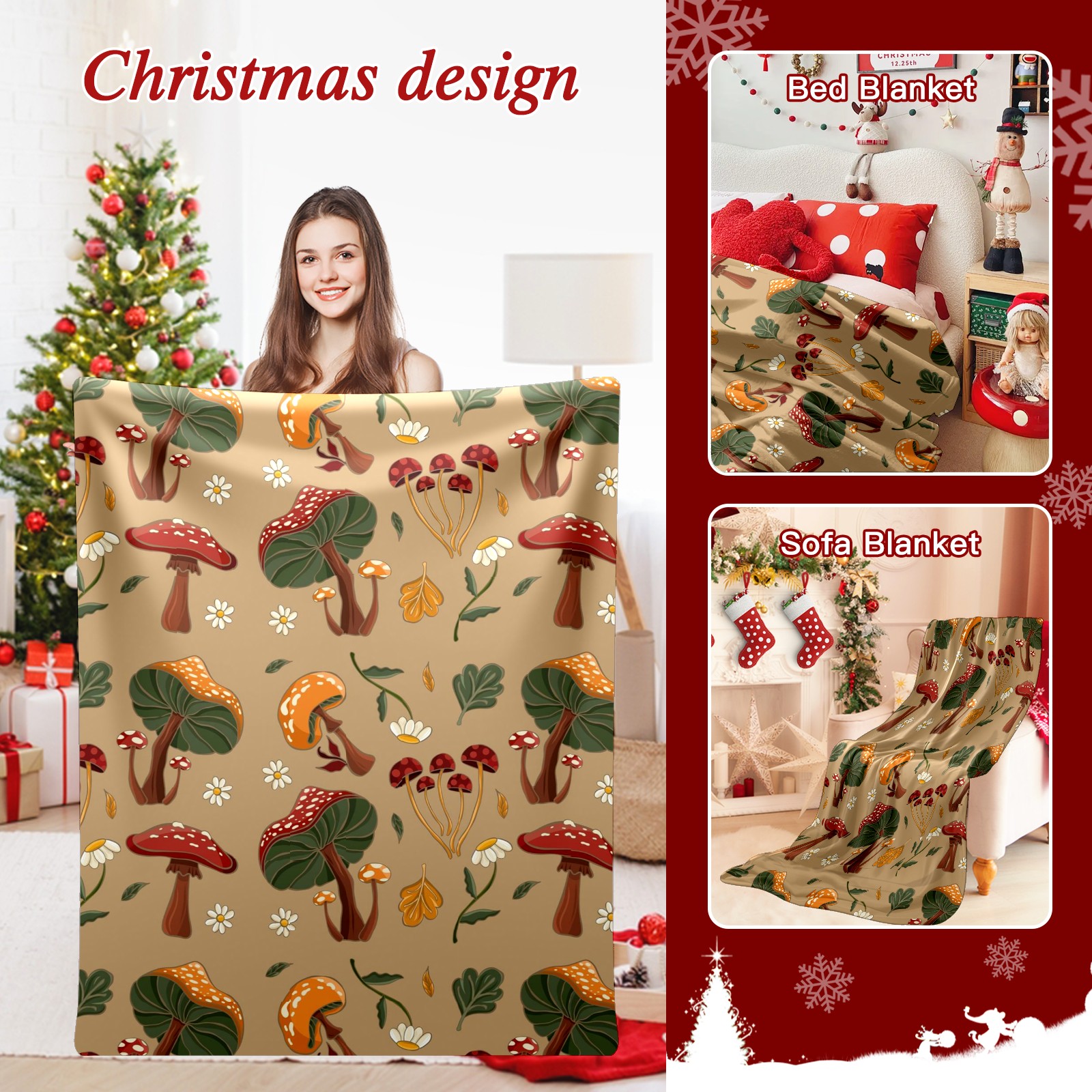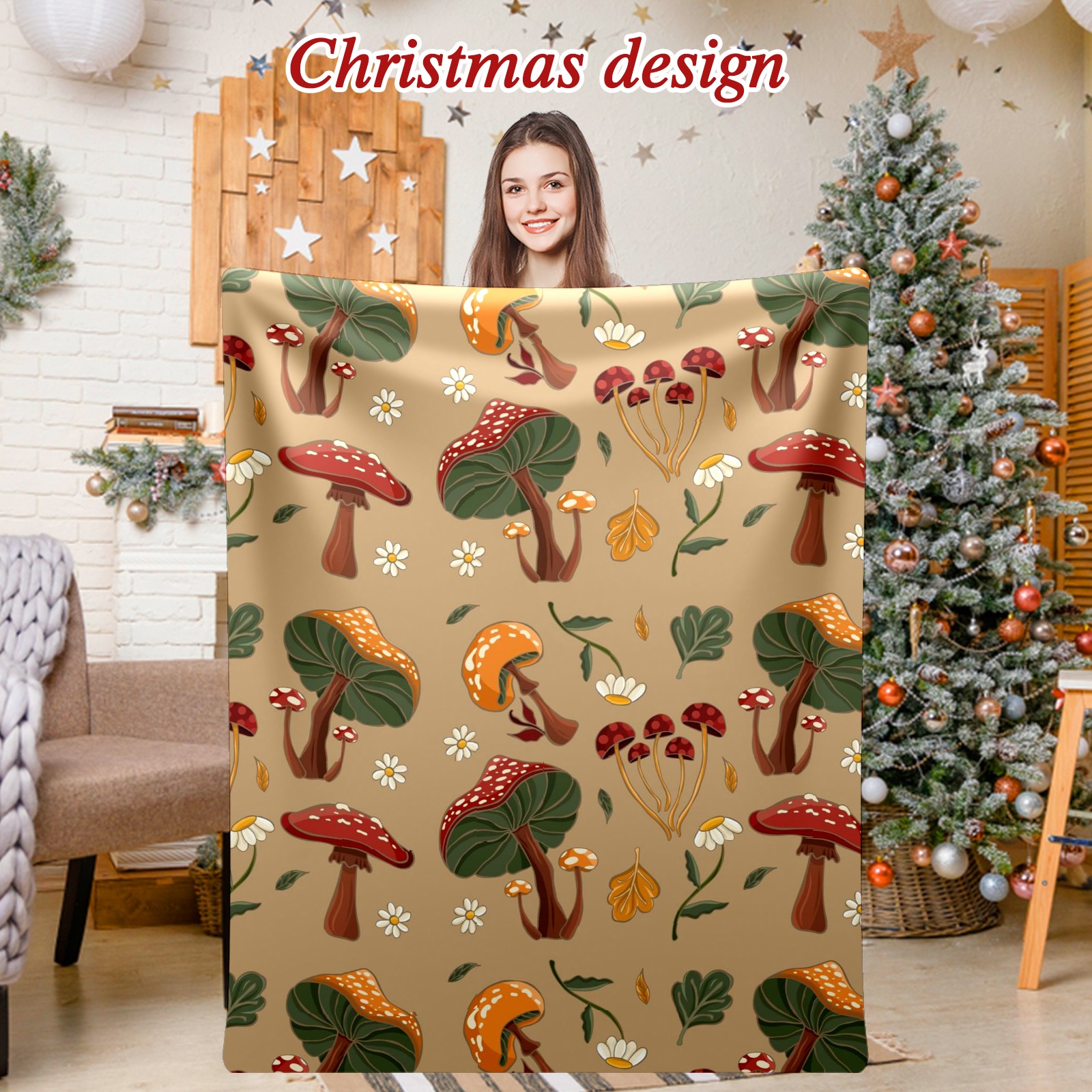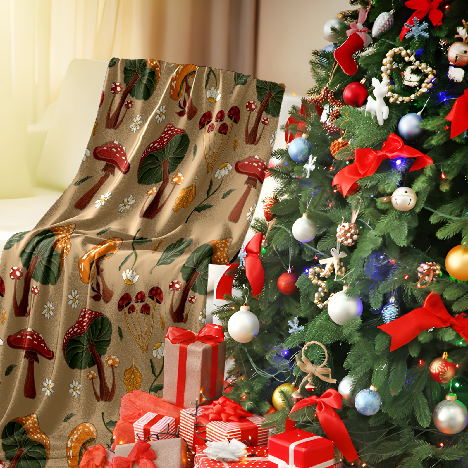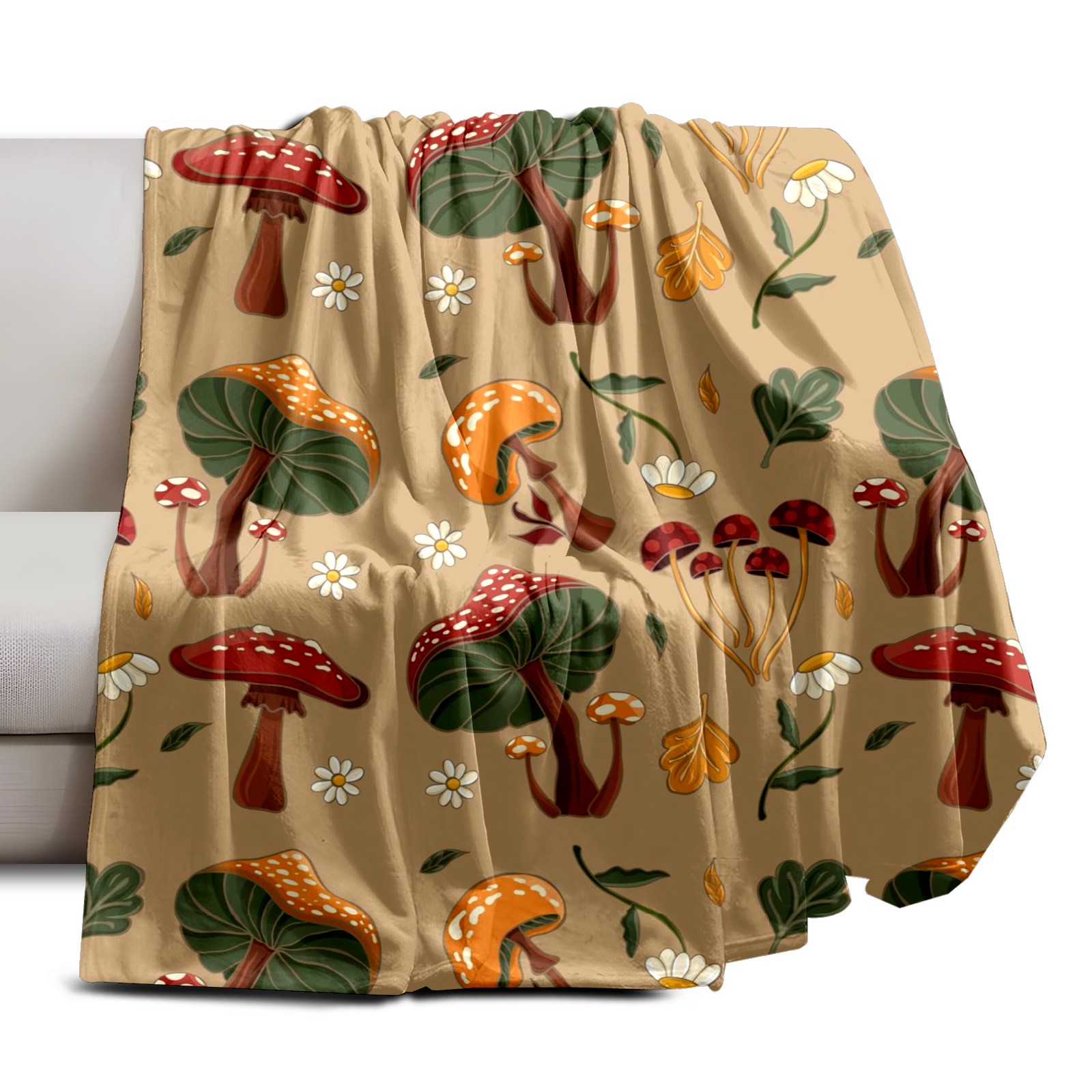 Премиальная фланелевая одеяло Khaki Mushrooms