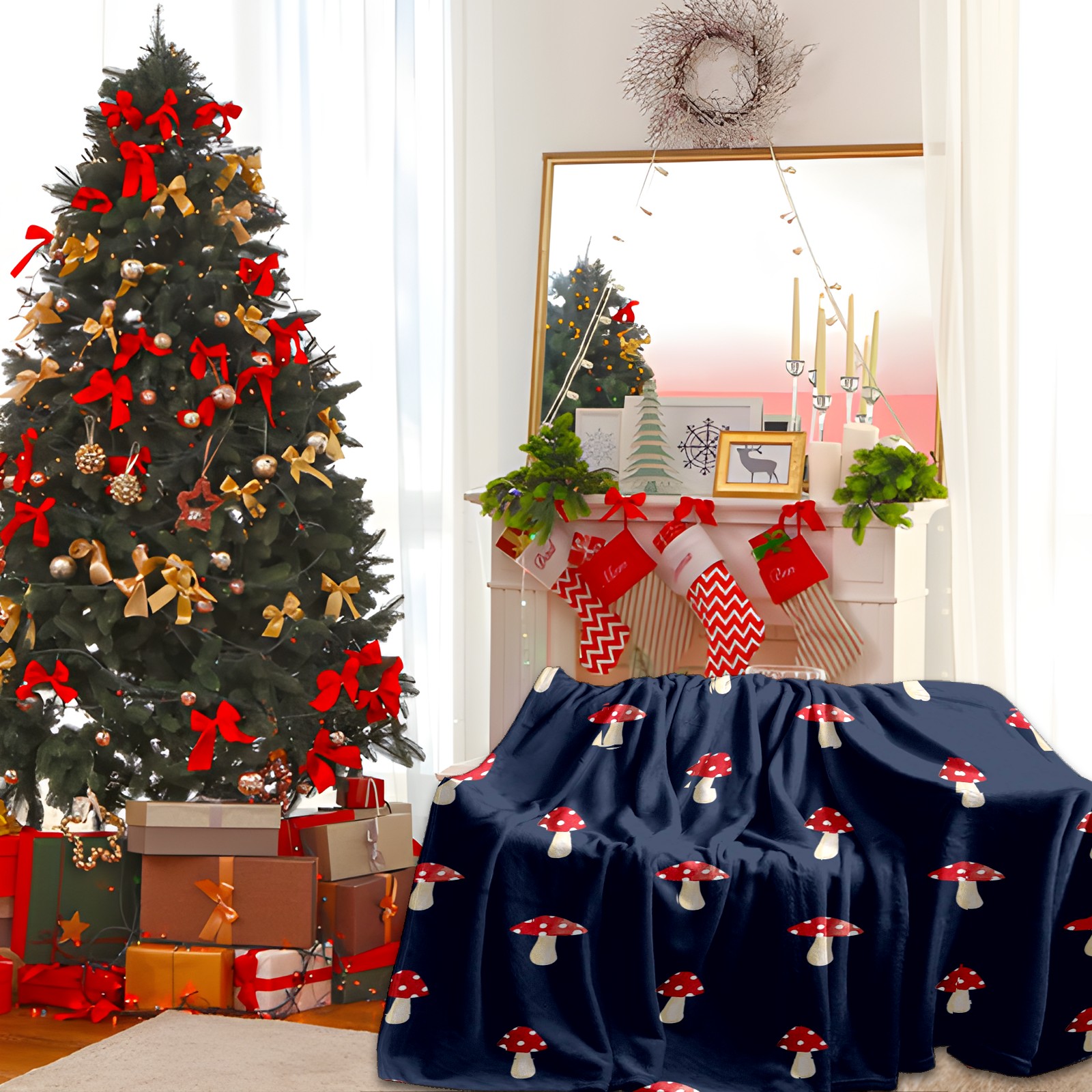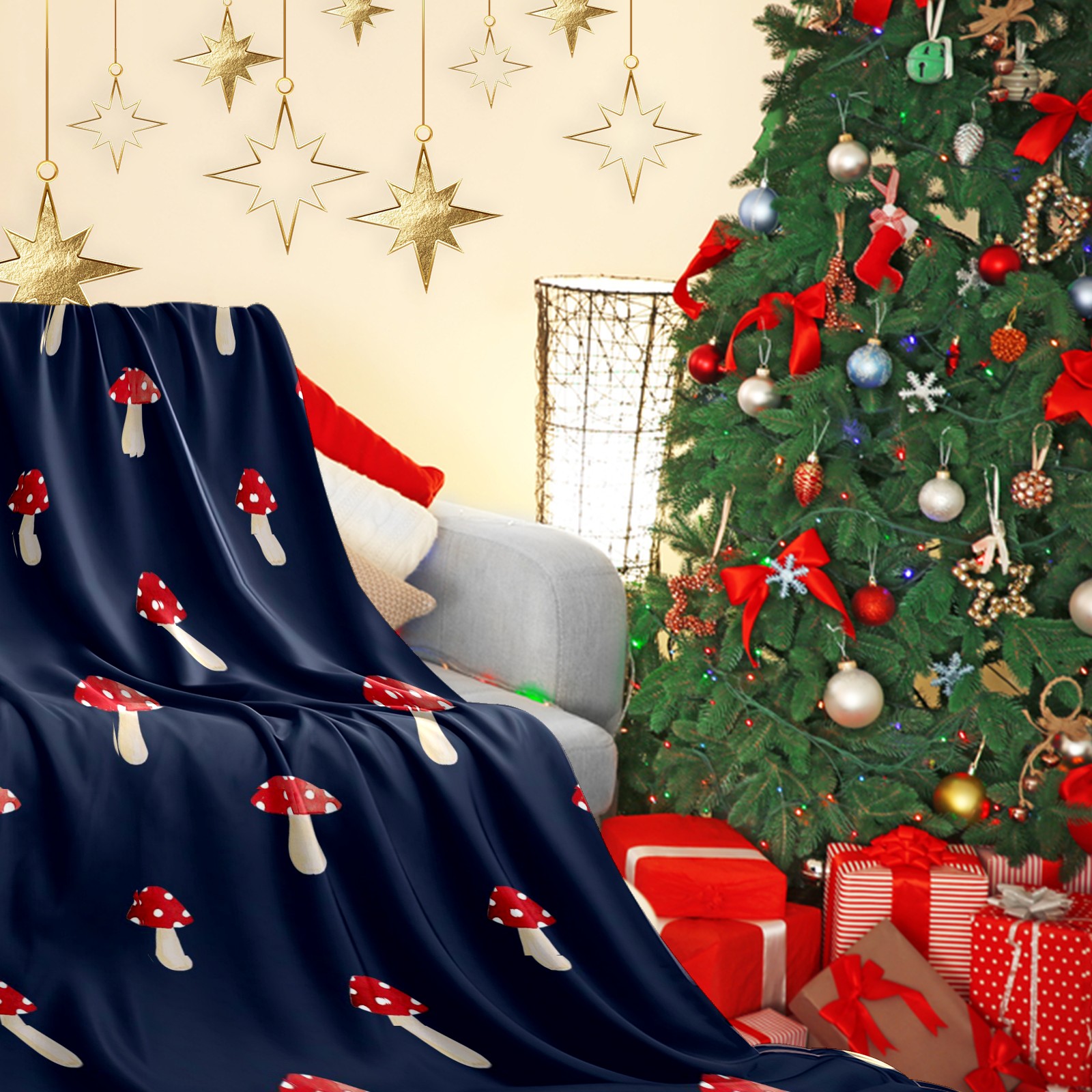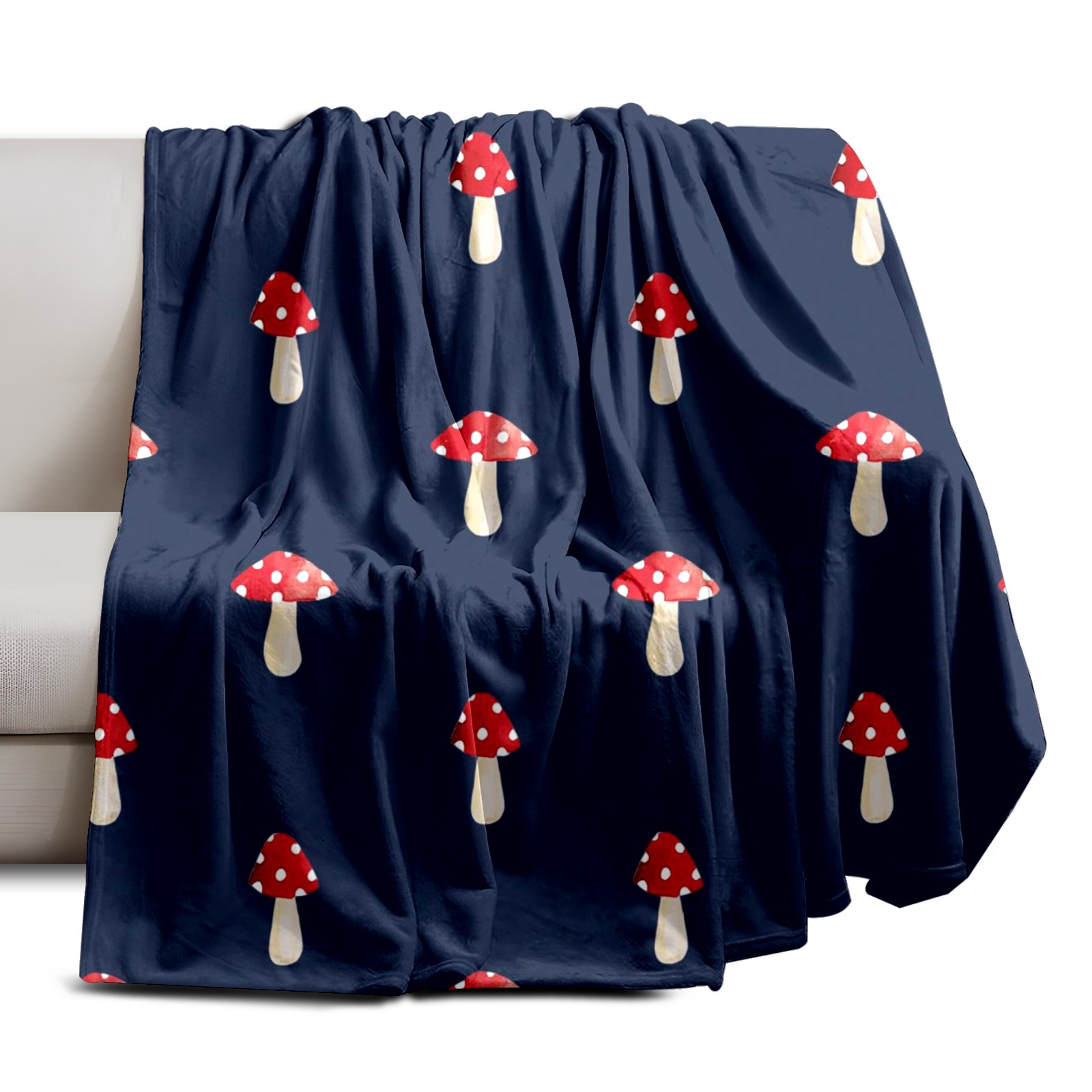 Премиальная фланелевая одеяло Navy Blue Red Mushrooms