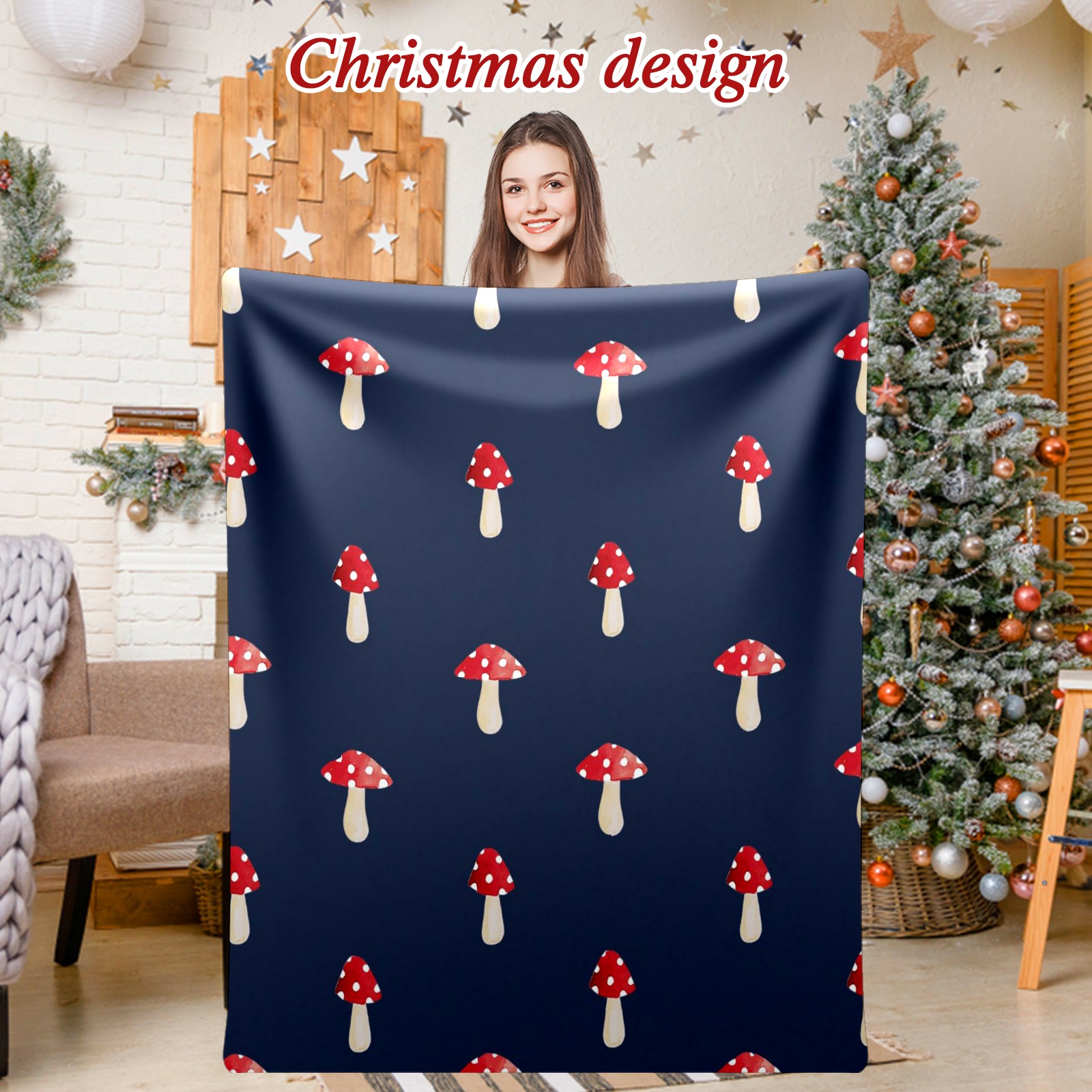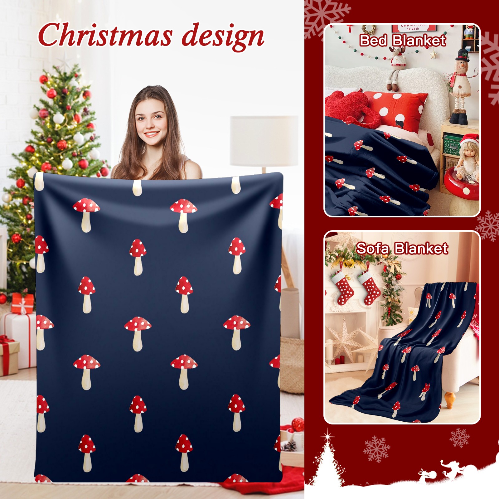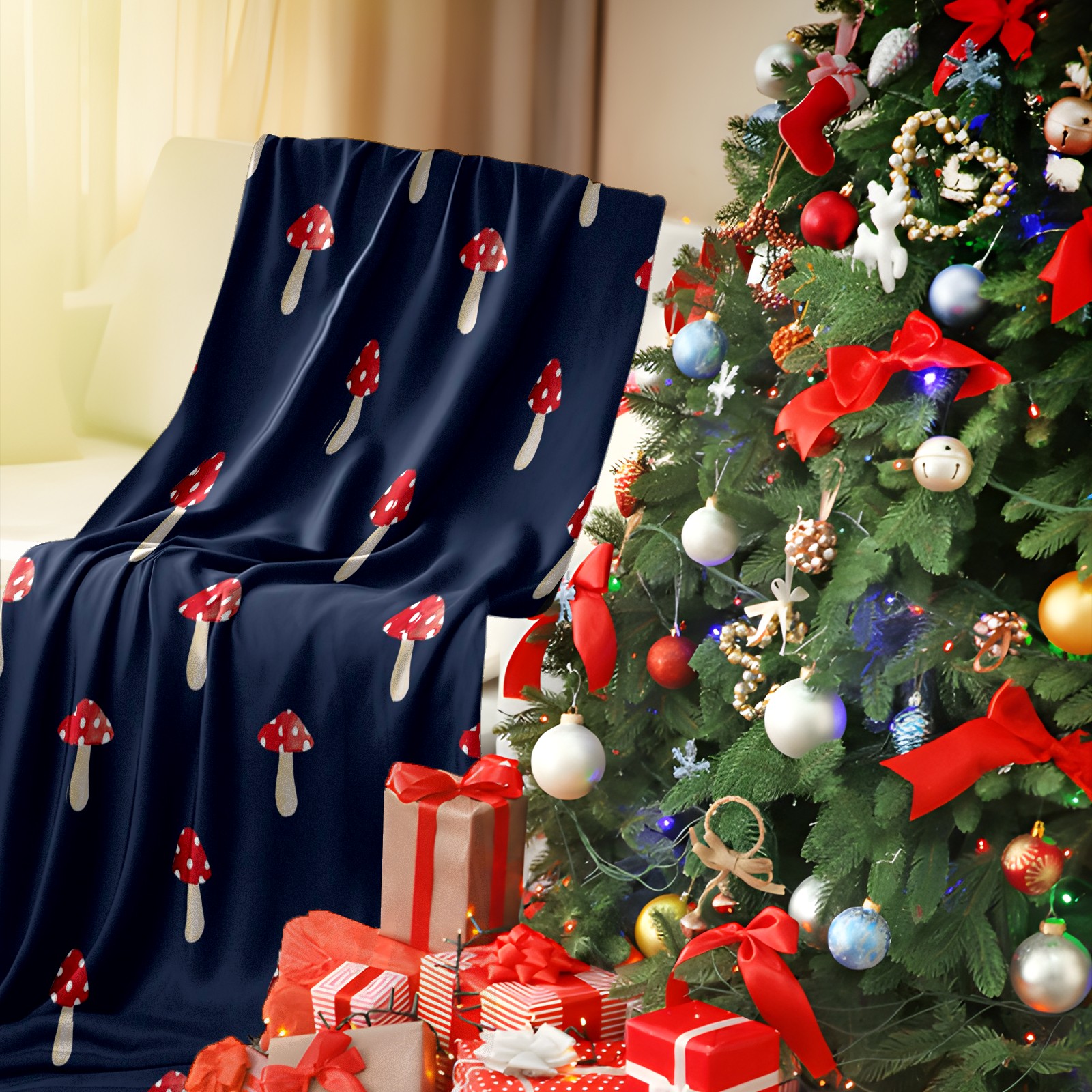 Премиальная фланелевая одеяло Navy Blue Red Mushrooms