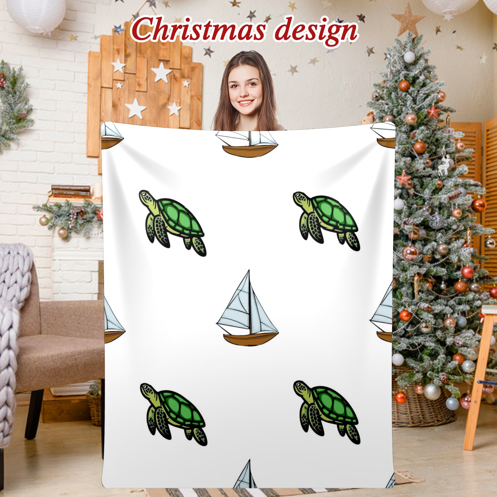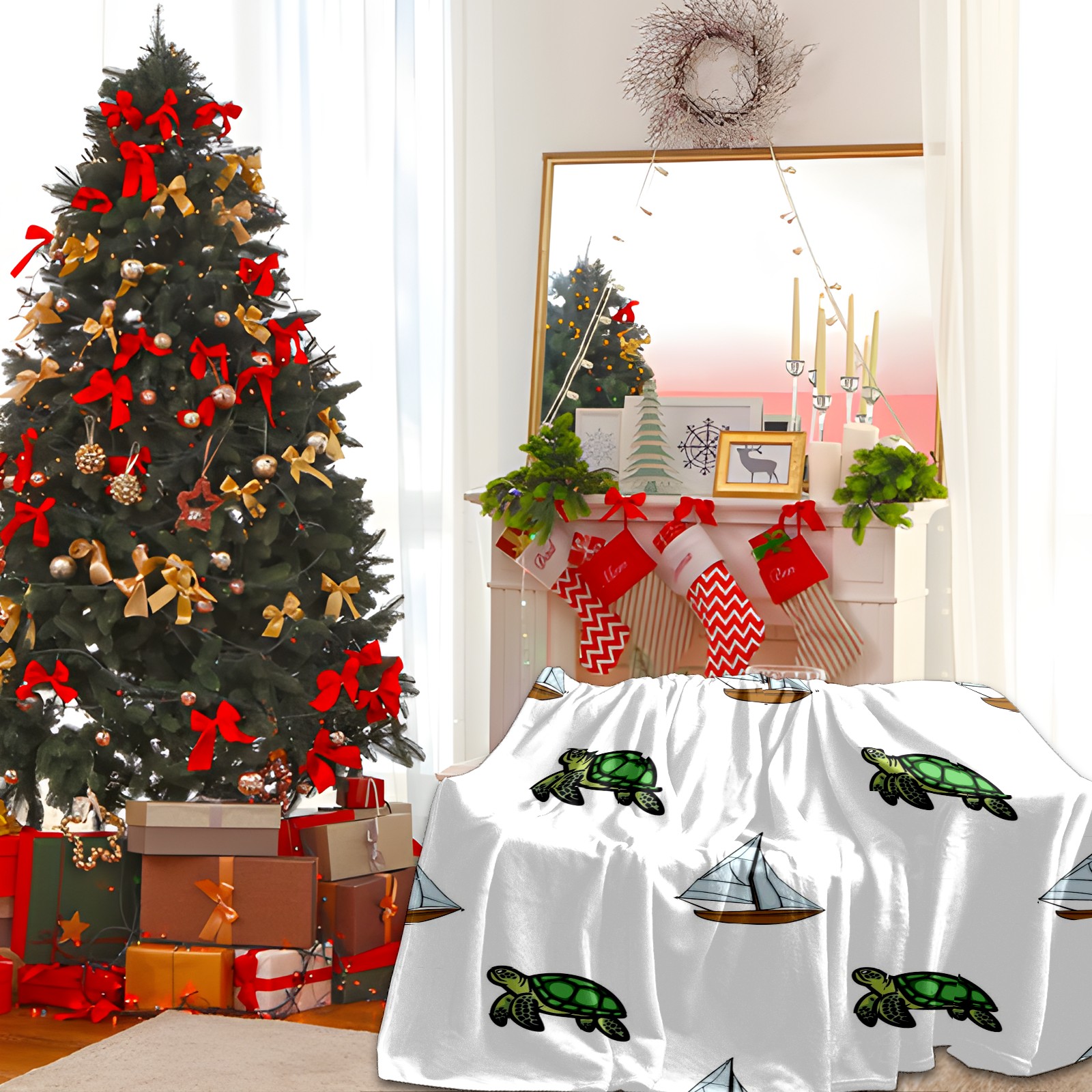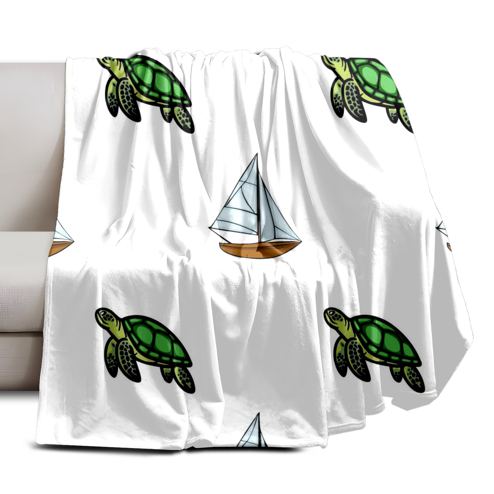 Премиальная фланелевая одеяло Green Turtles Sailboats