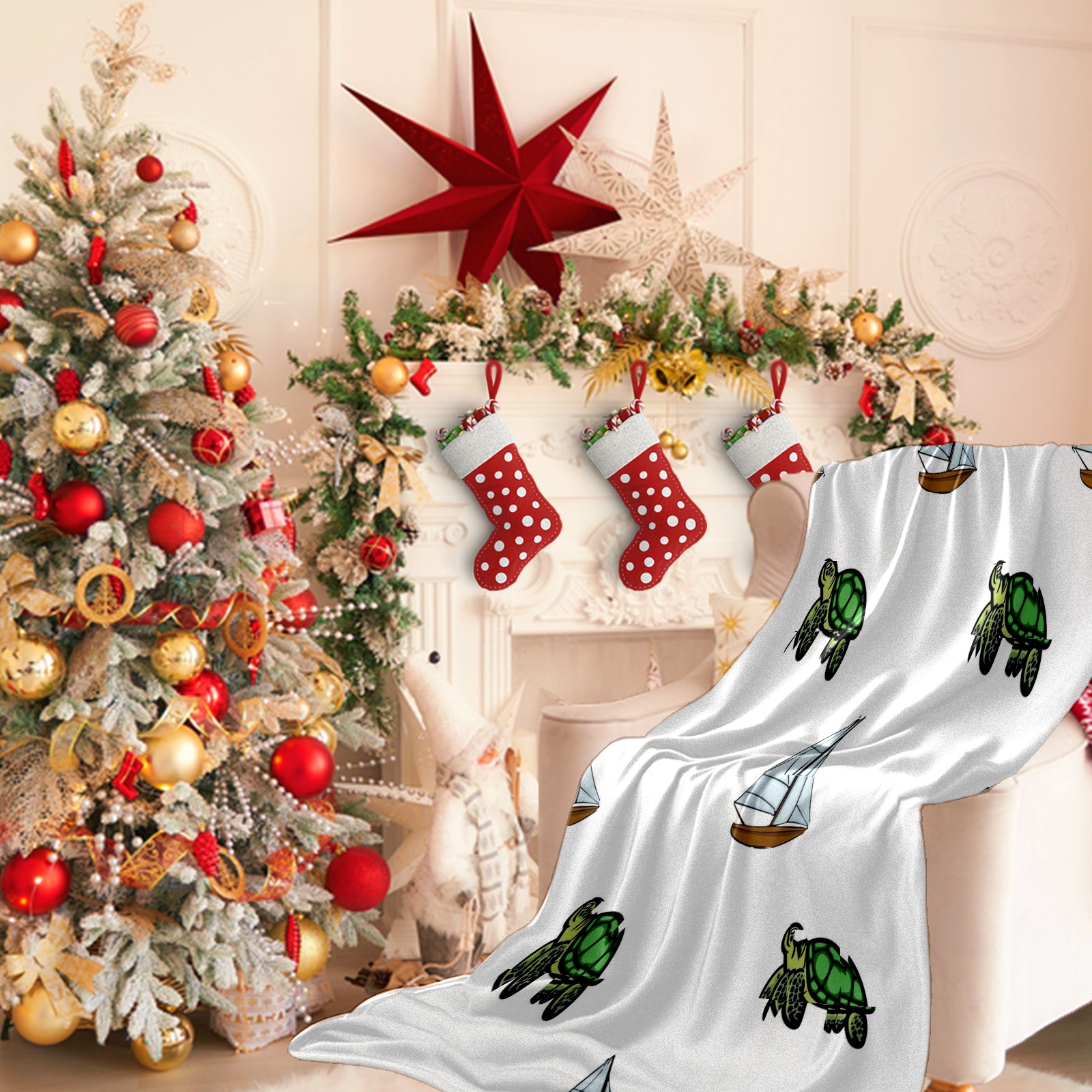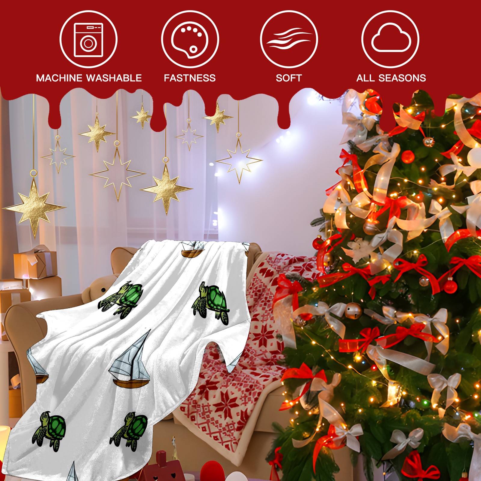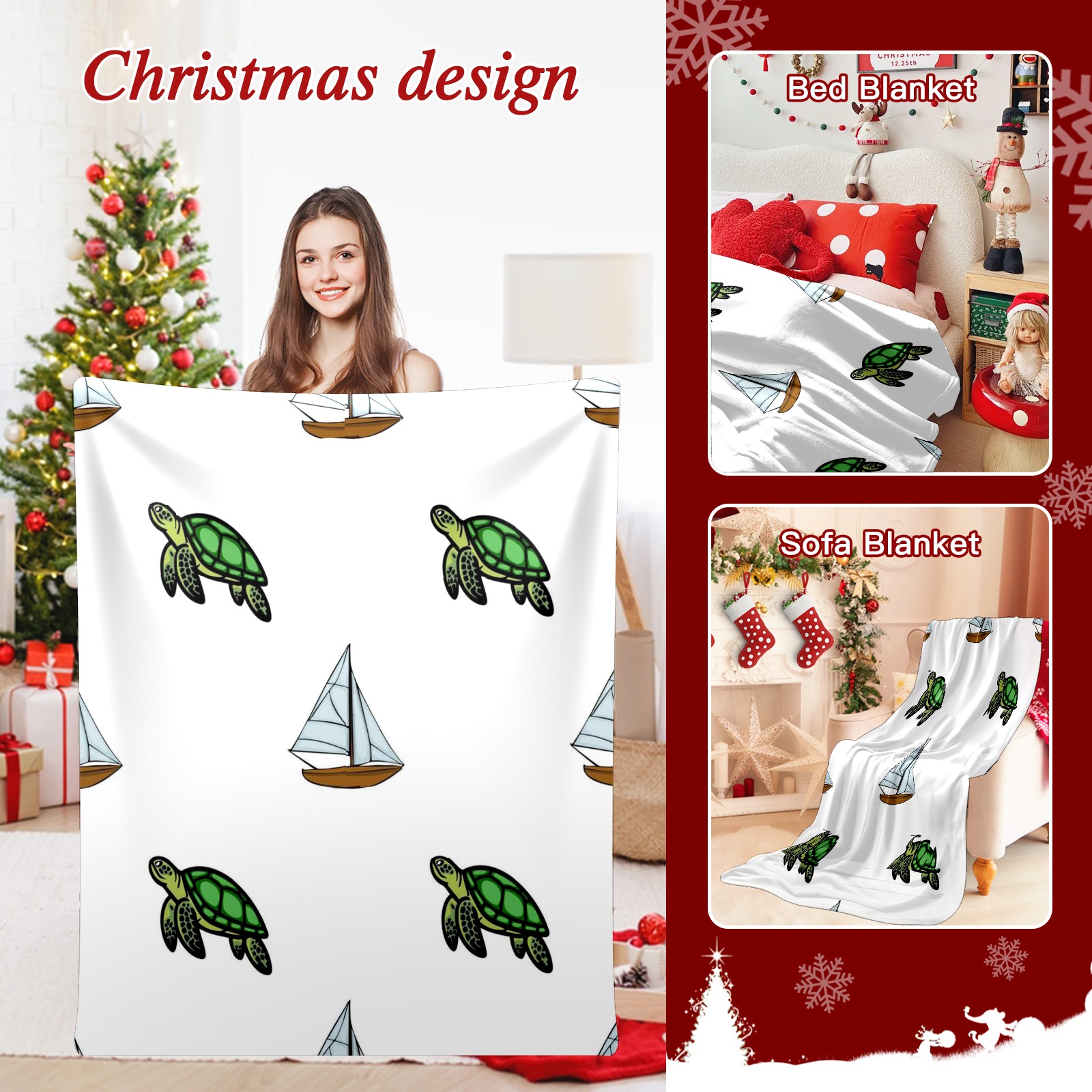 Премиальная фланелевая одеяло Green Turtles Sailboats