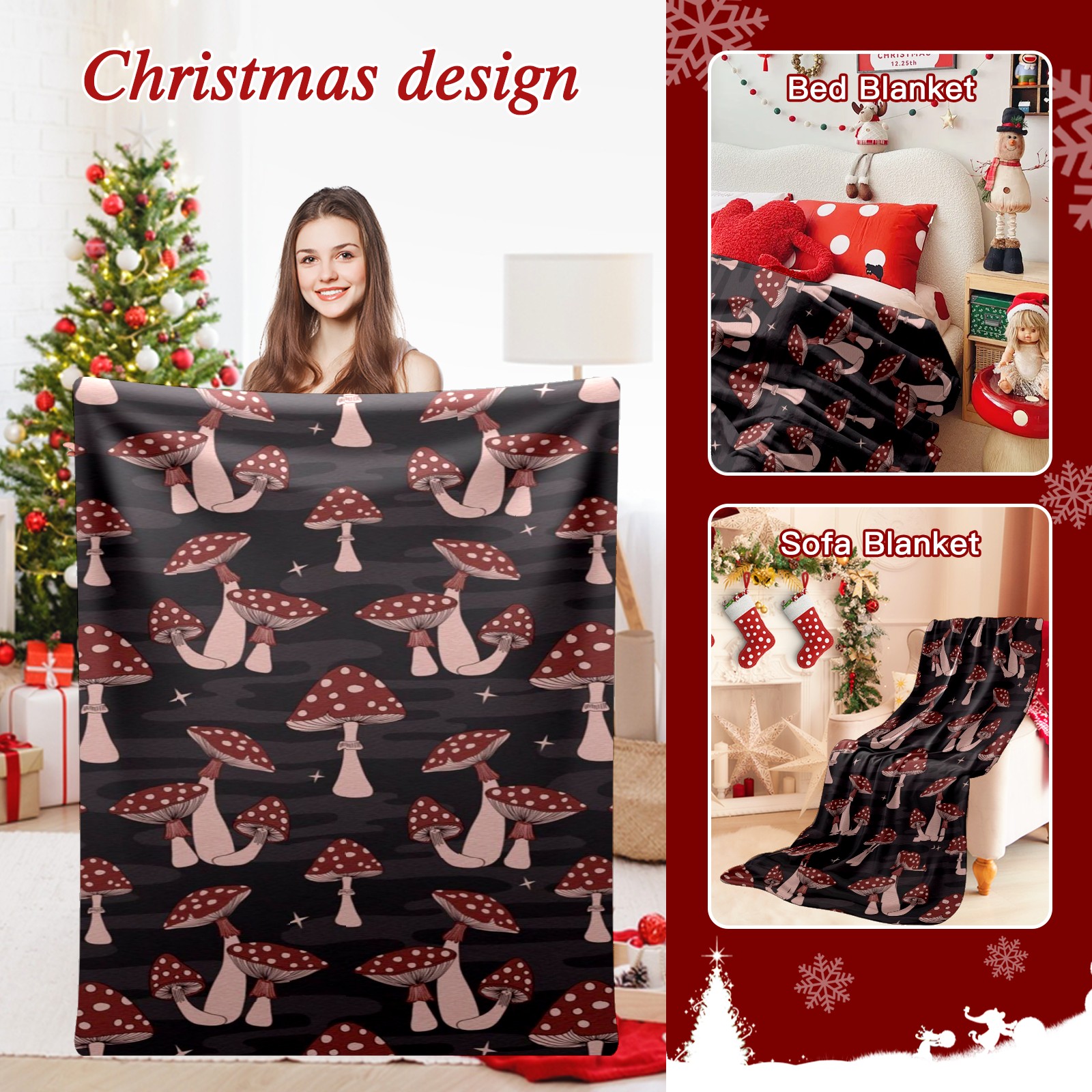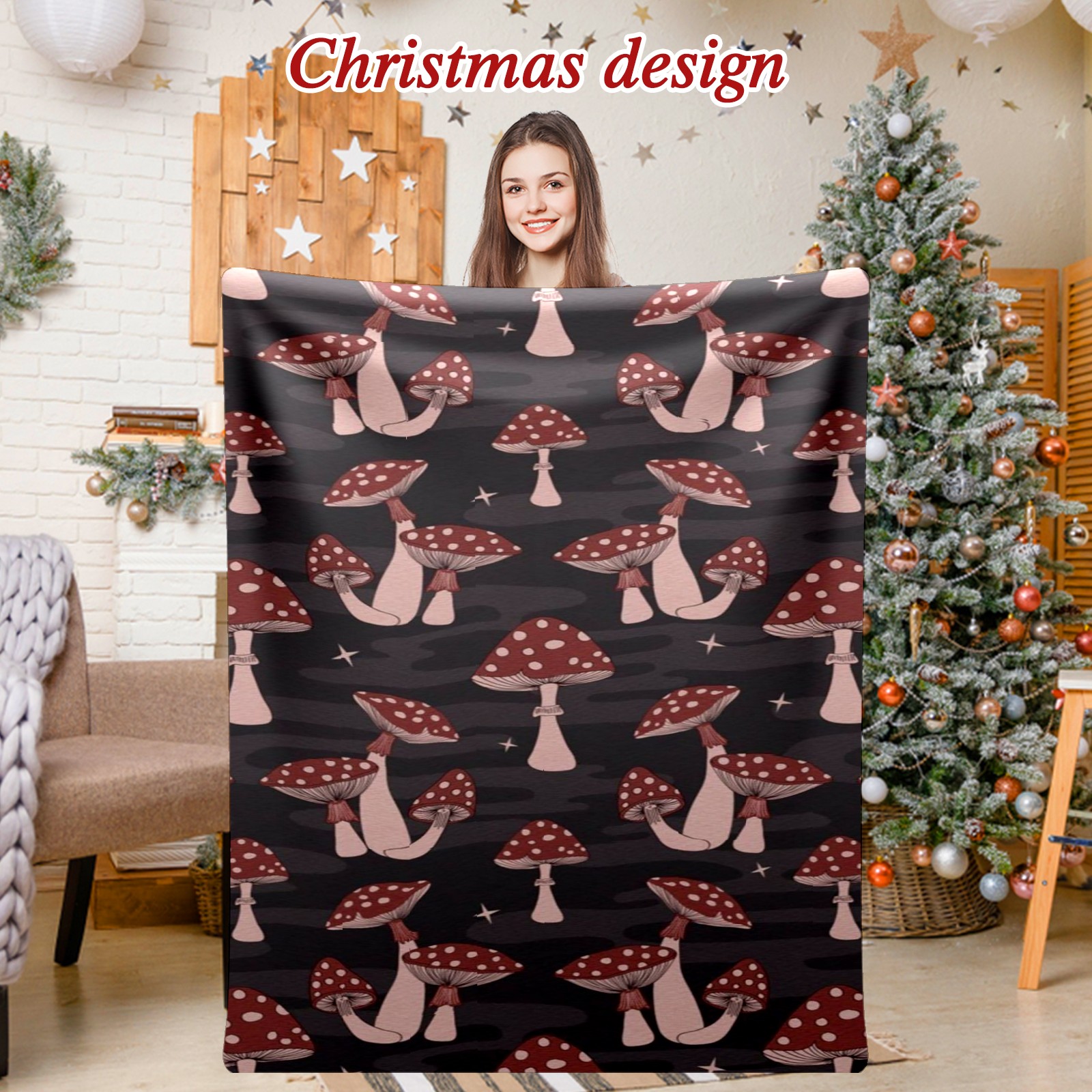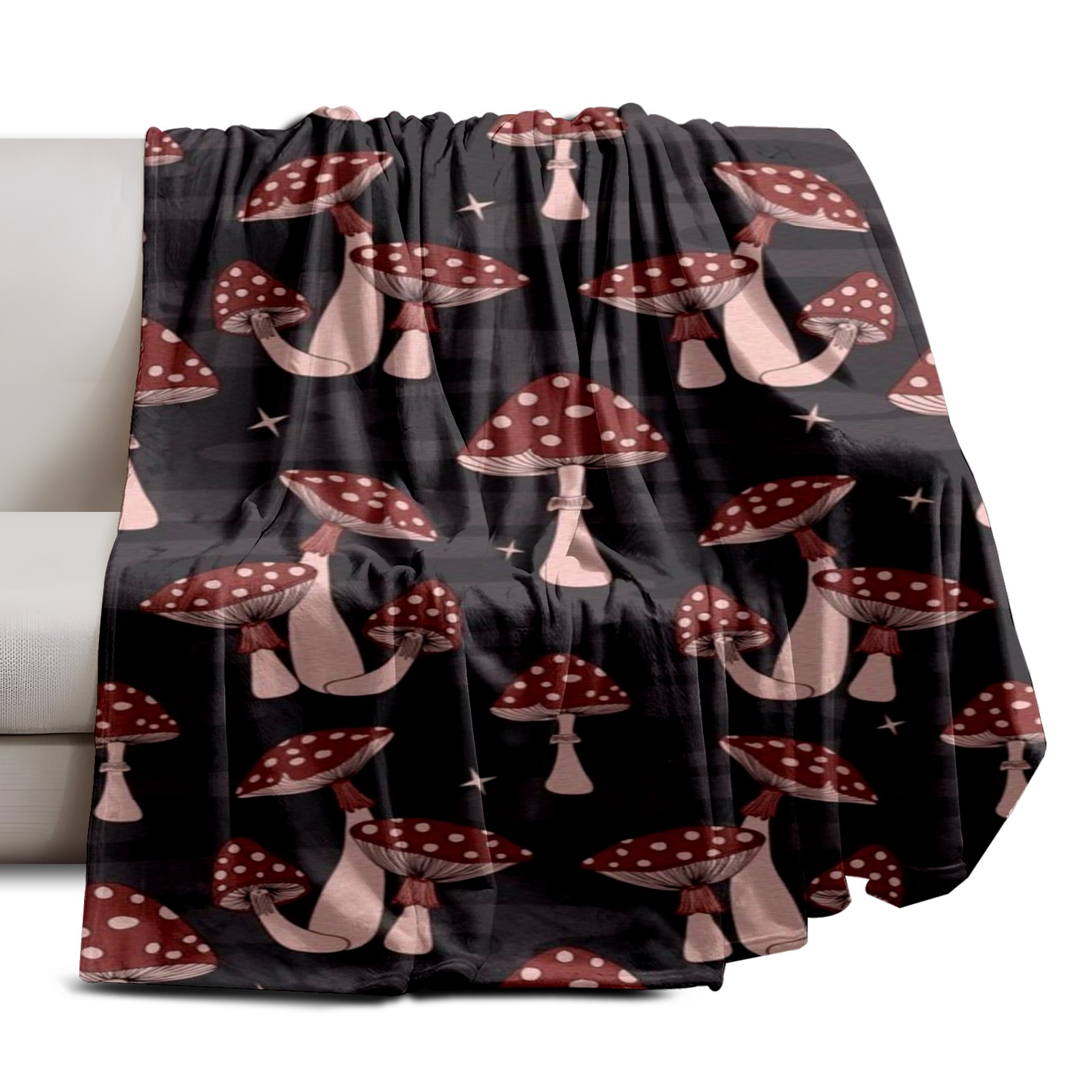 Премиальная фланелевая одеяло Dark Red Mushrooms