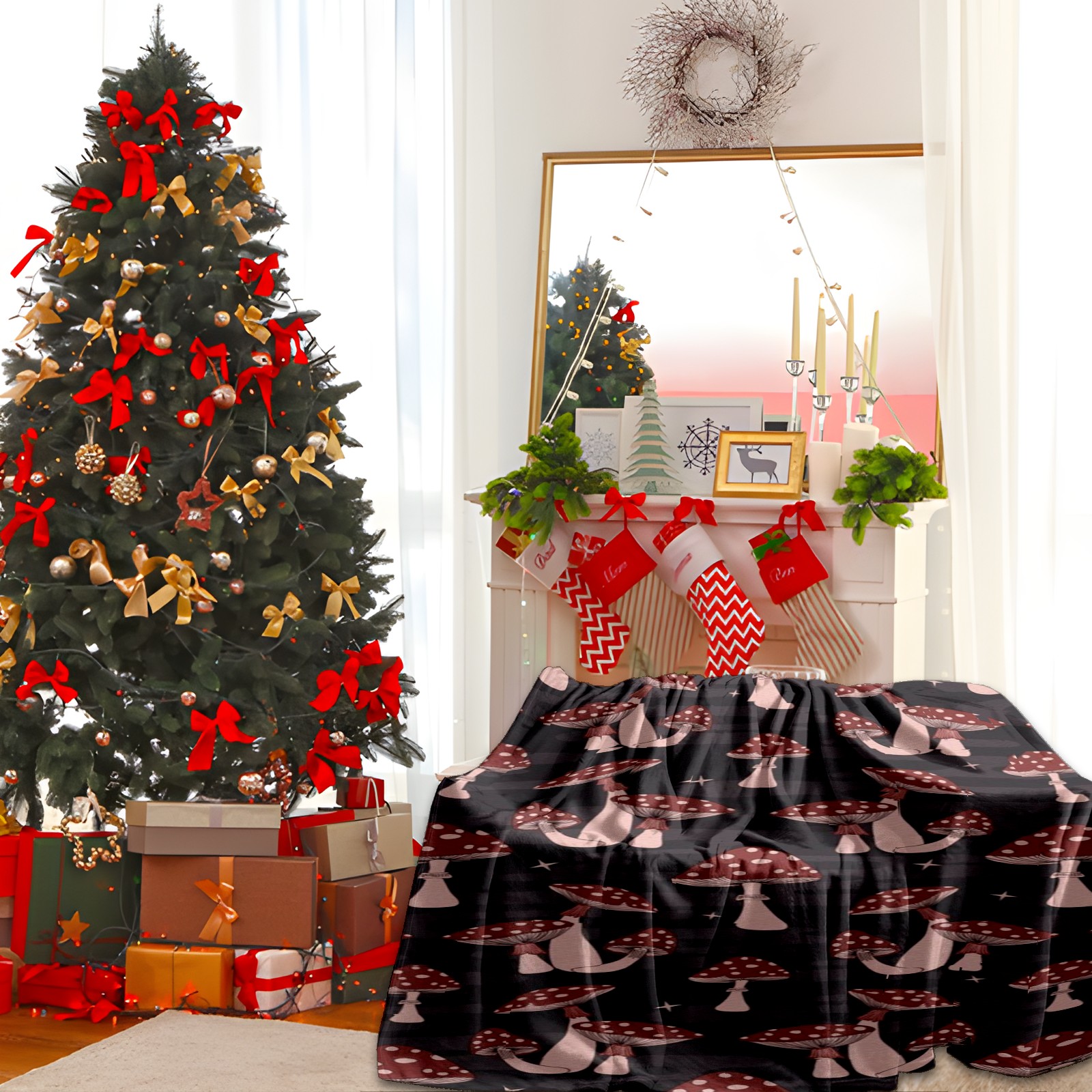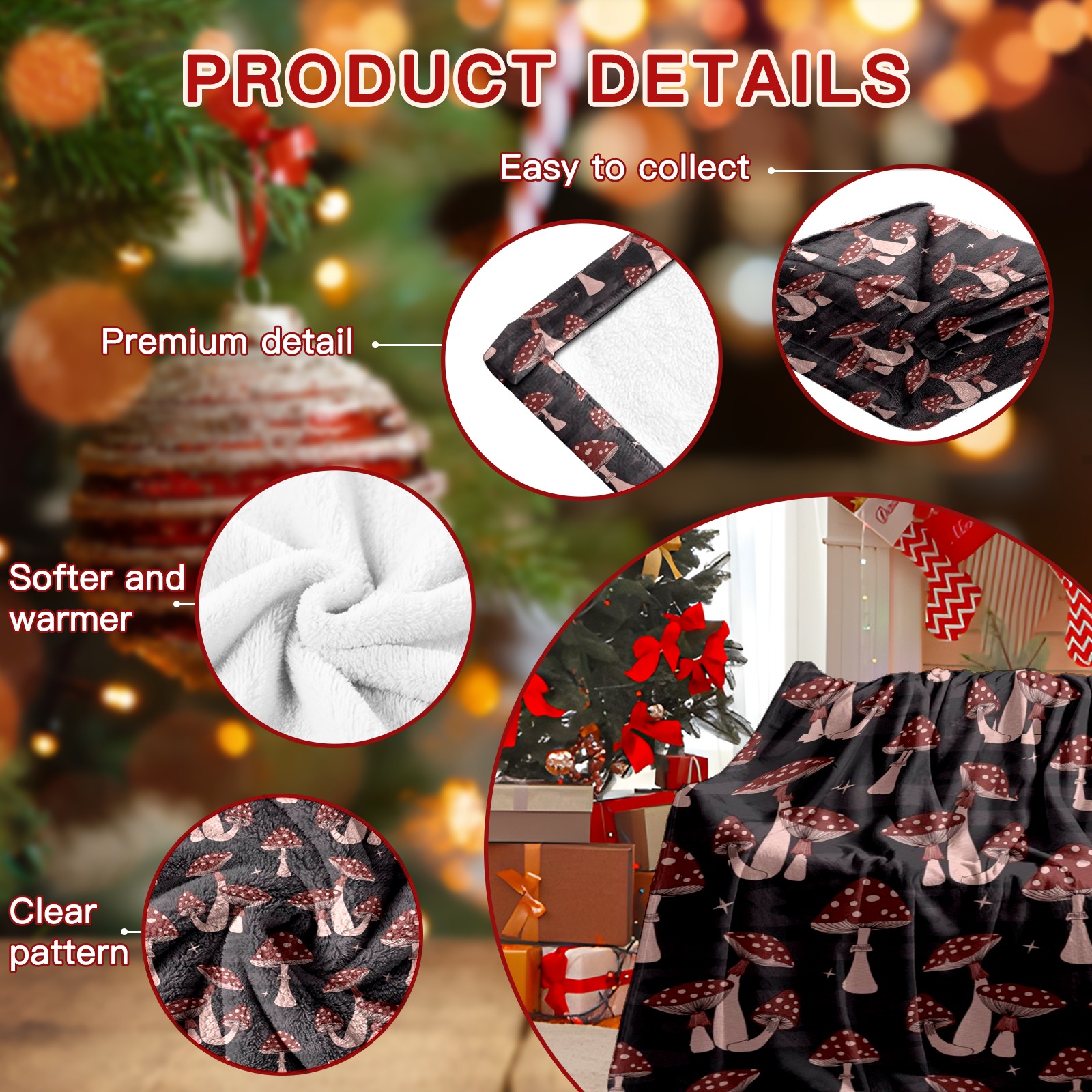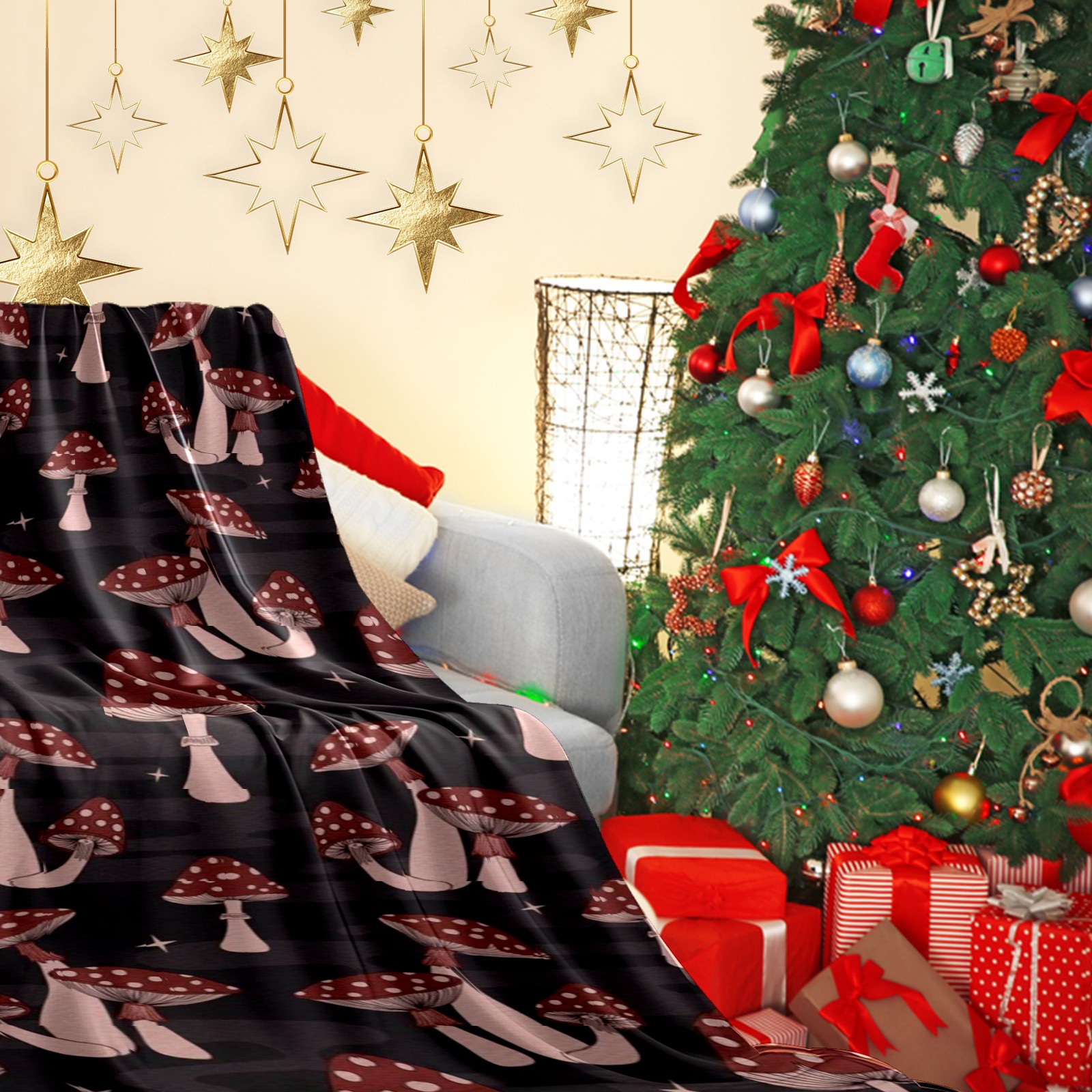 Премиальная фланелевая одеяло Dark Red Mushrooms