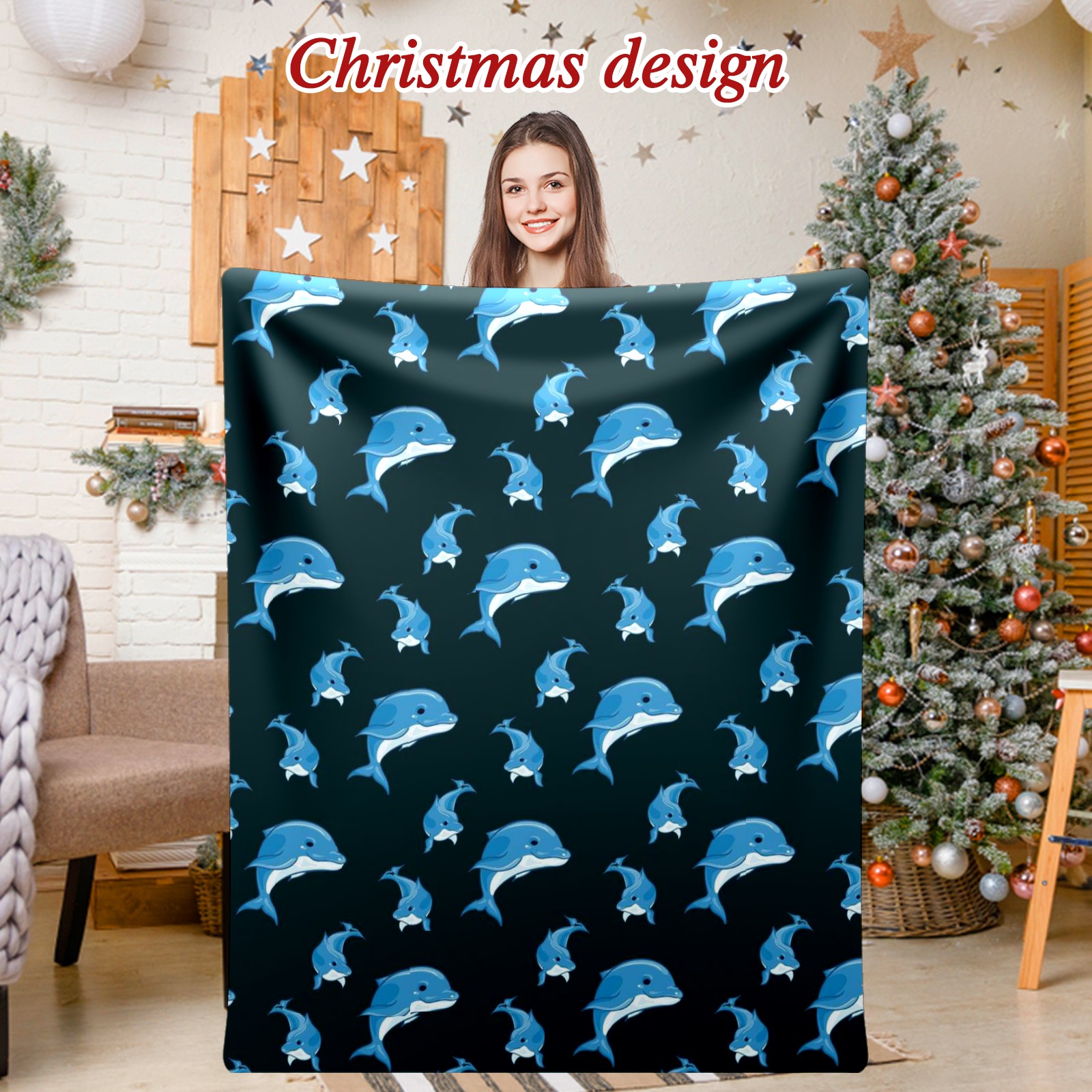 Премиальная фланелевая одеяло Dark Blue Whale