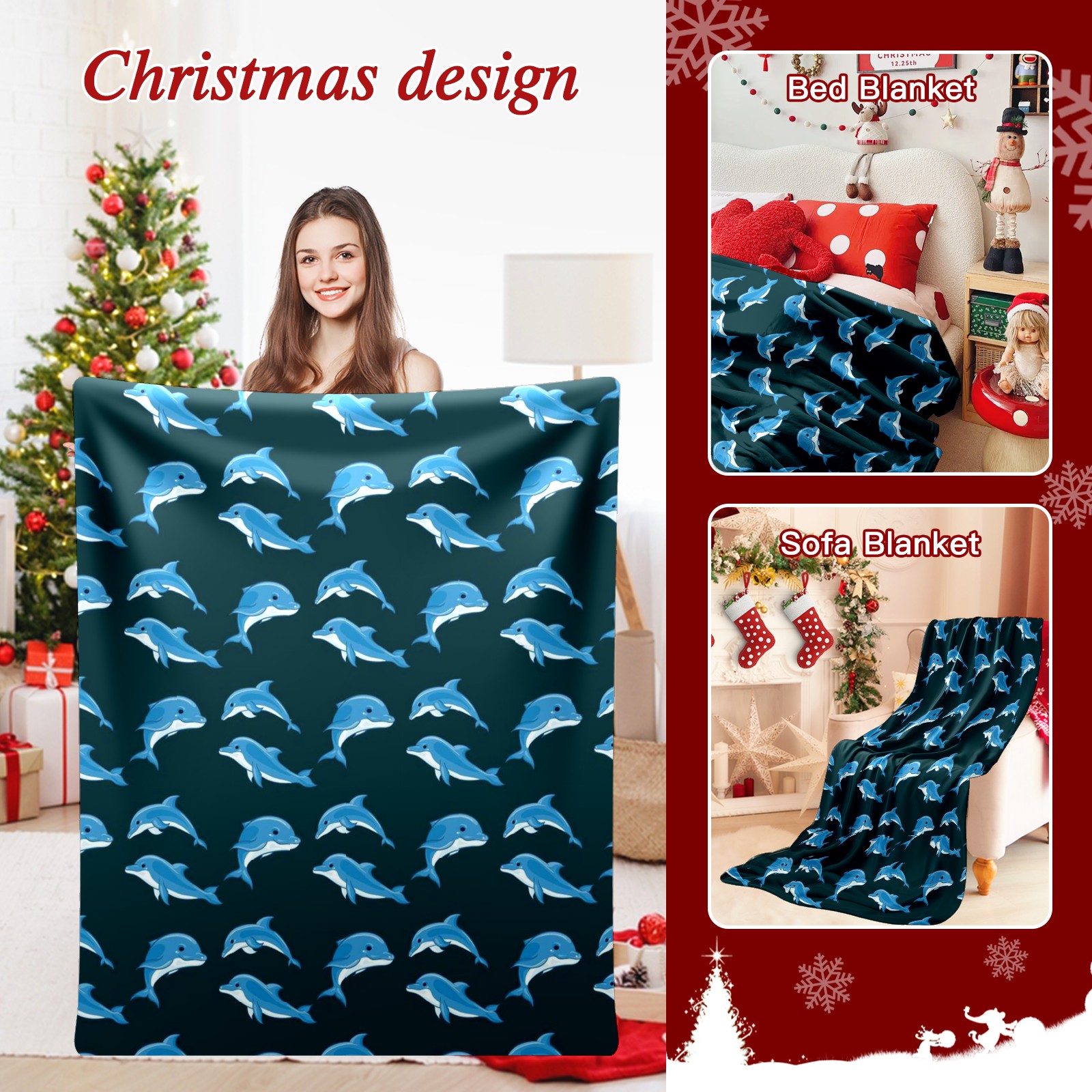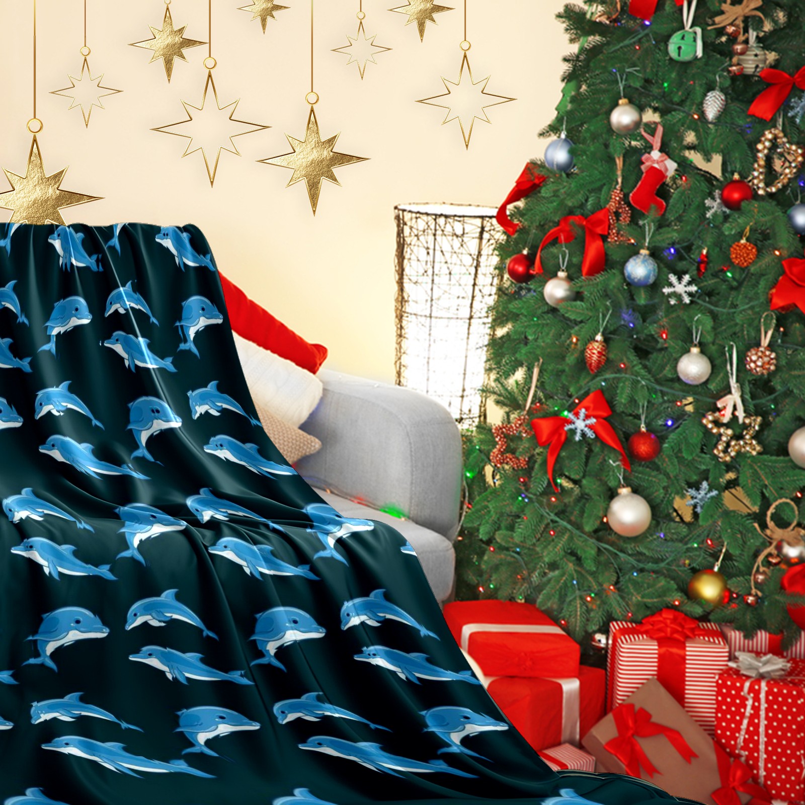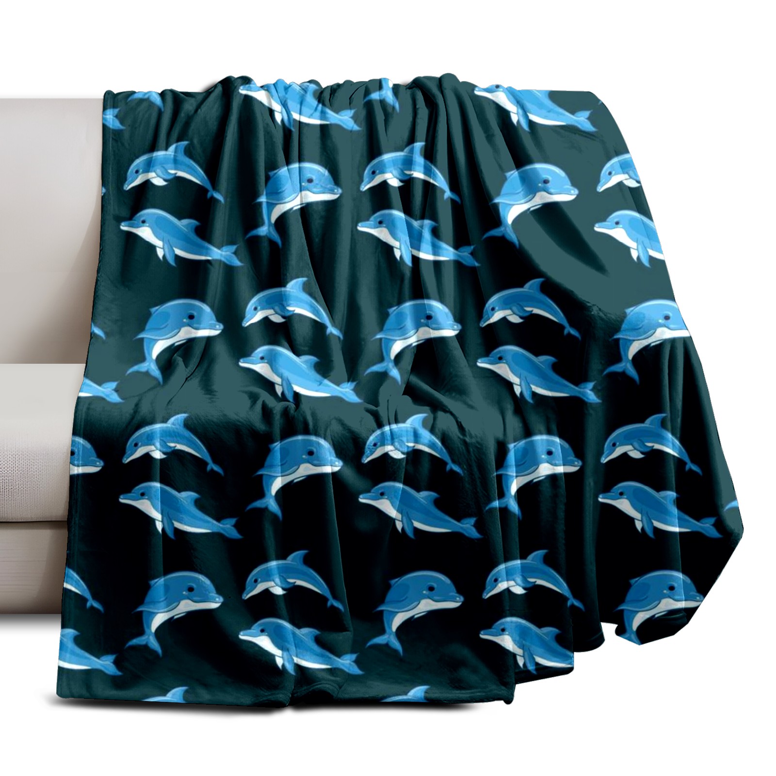 Премиальная фланелевая одеяло Dark Blue Dolphins