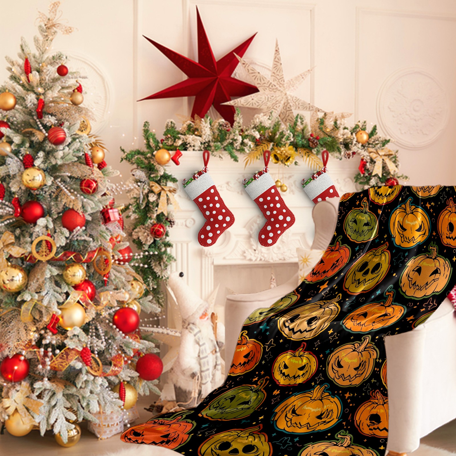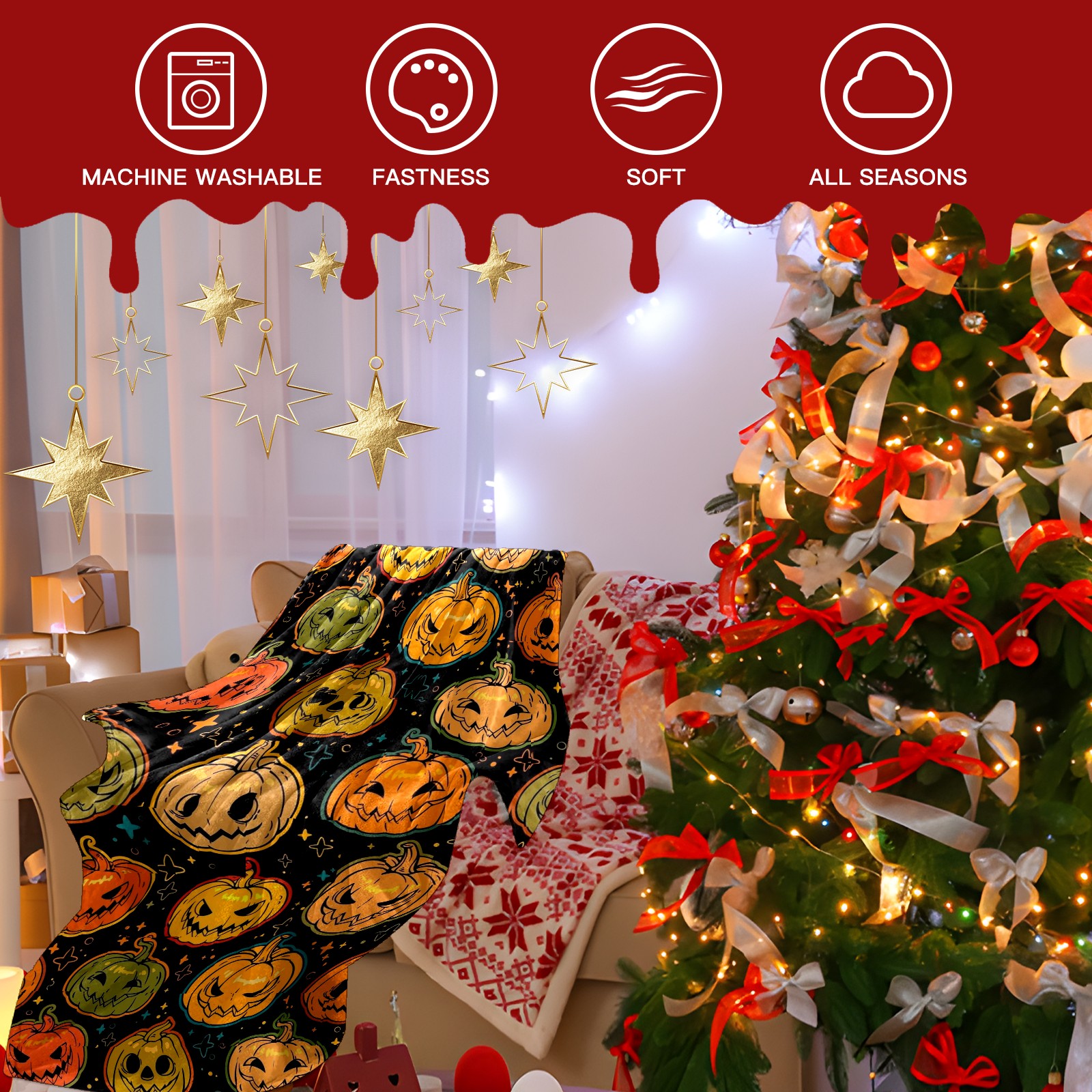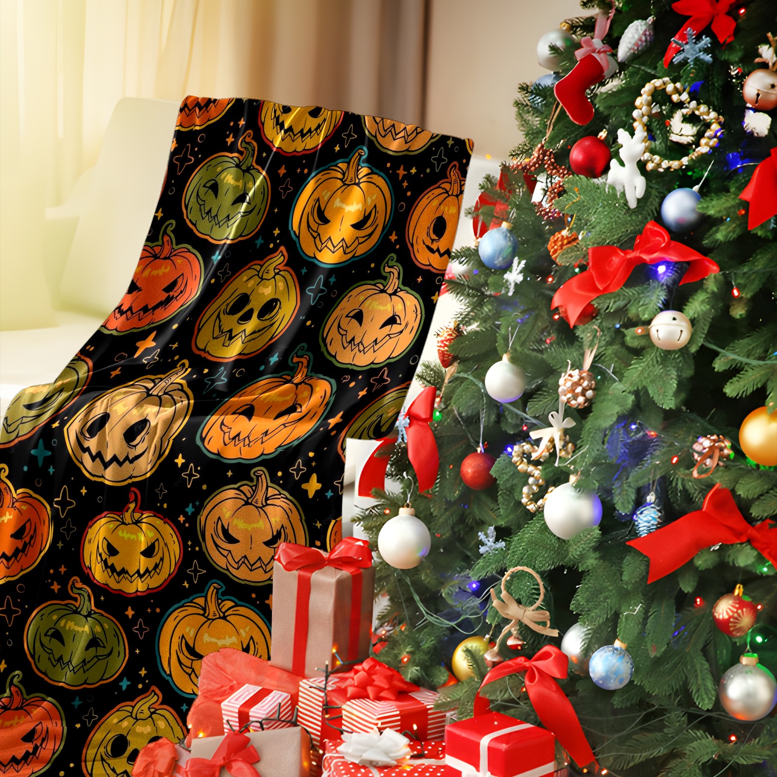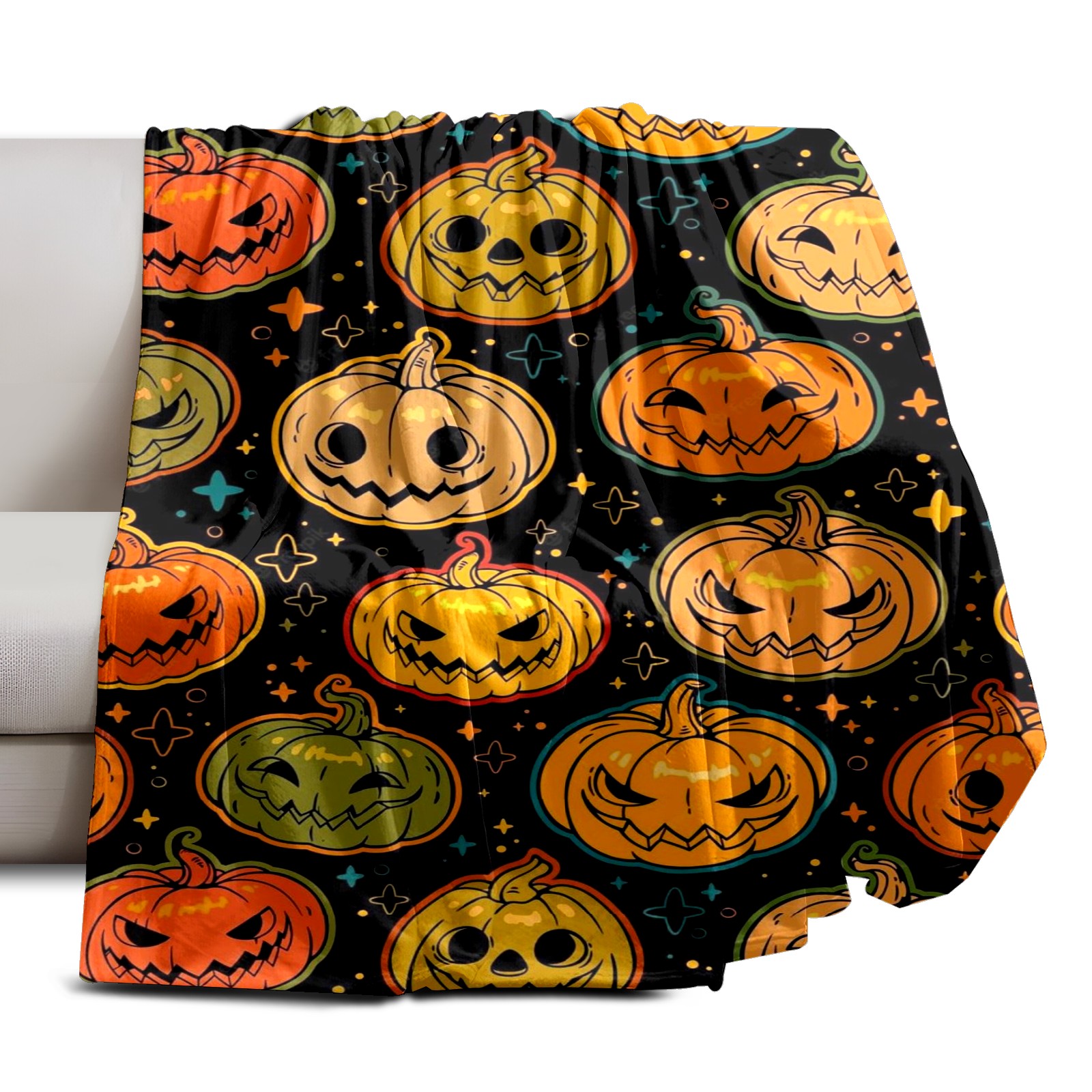 Премиальная фланелевая одеяло Colorful Halloween Pumpkins