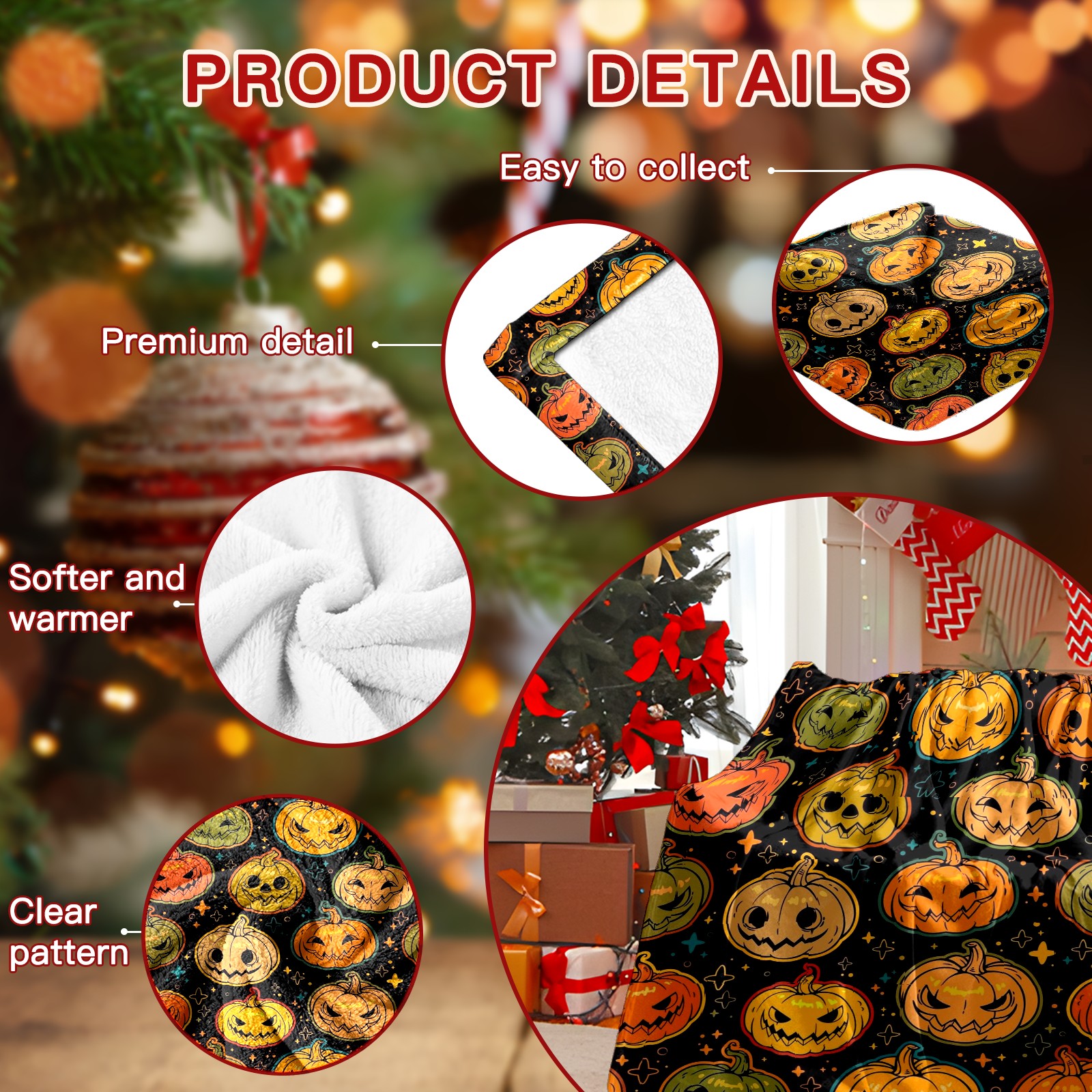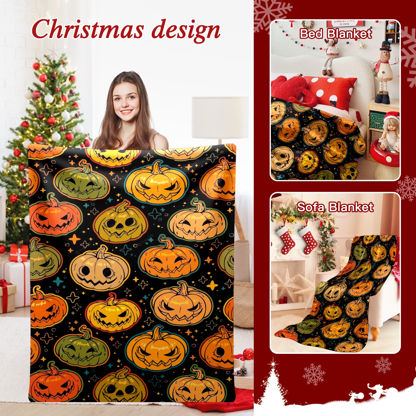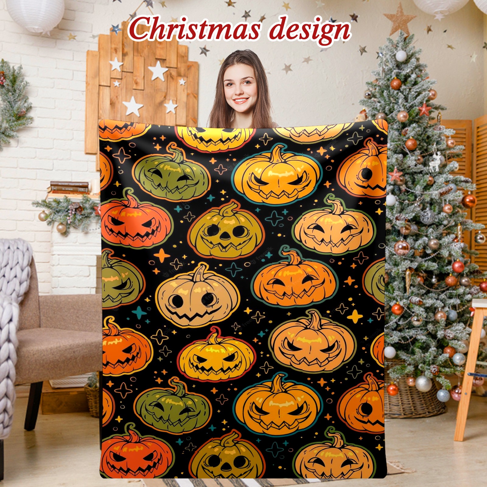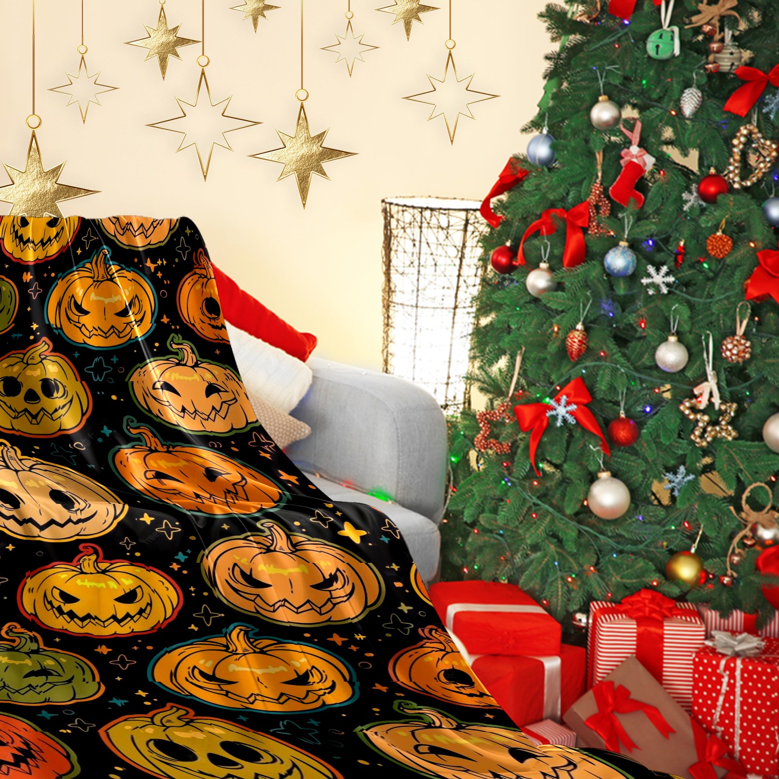 Премиальная фланелевая одеяло Colorful Halloween Pumpkins