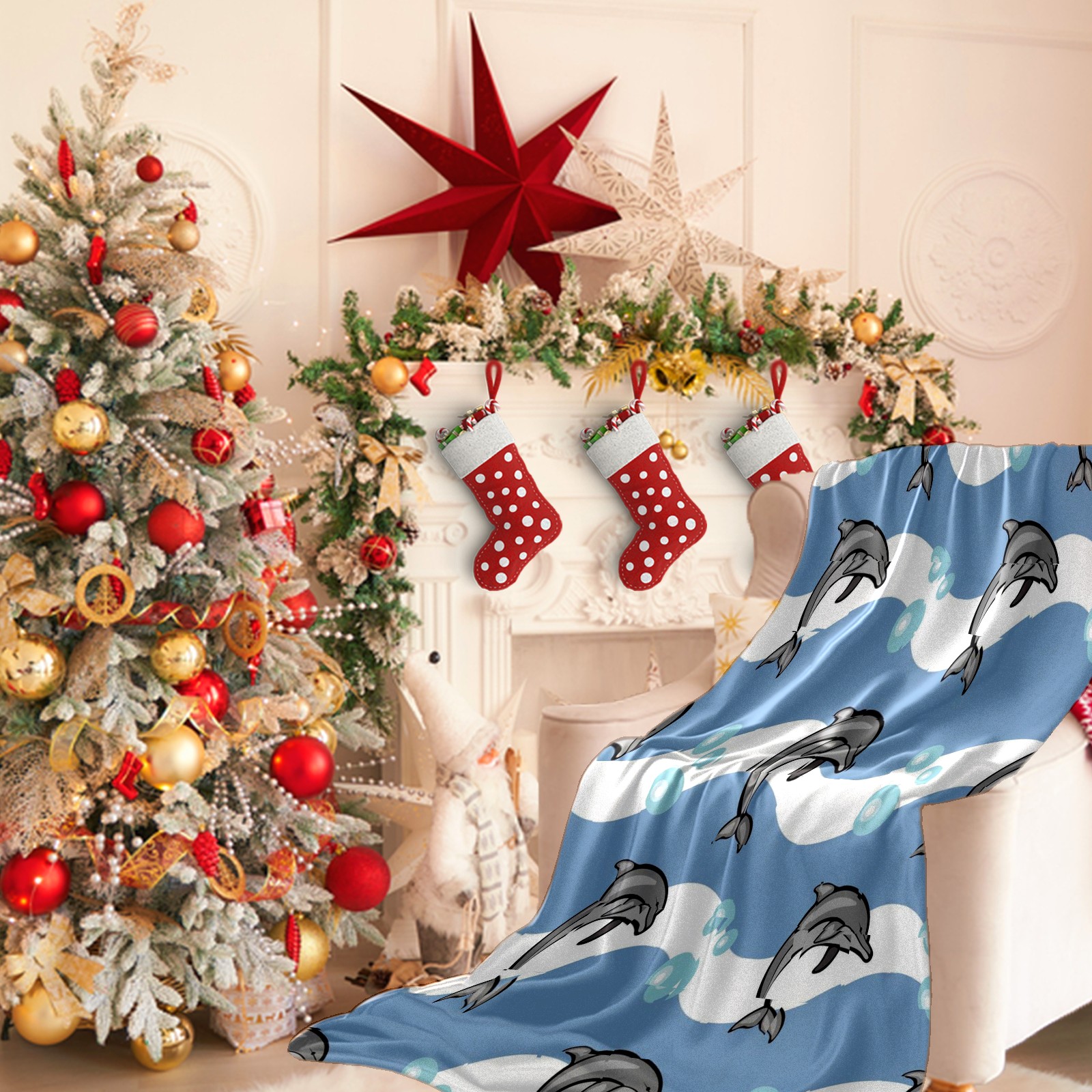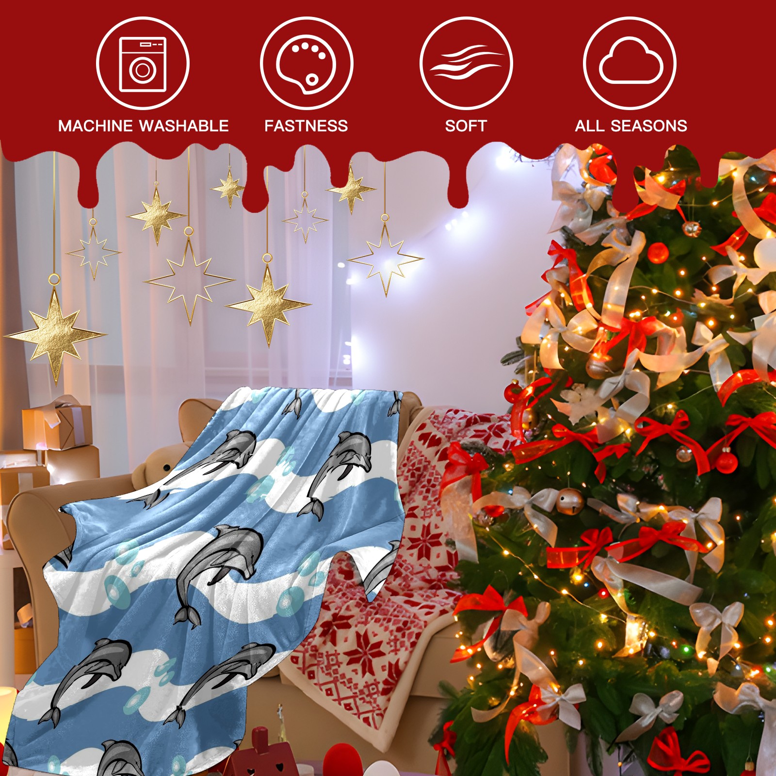 Премиальная фланелевая одеяло Blue White Waves Dolphin
