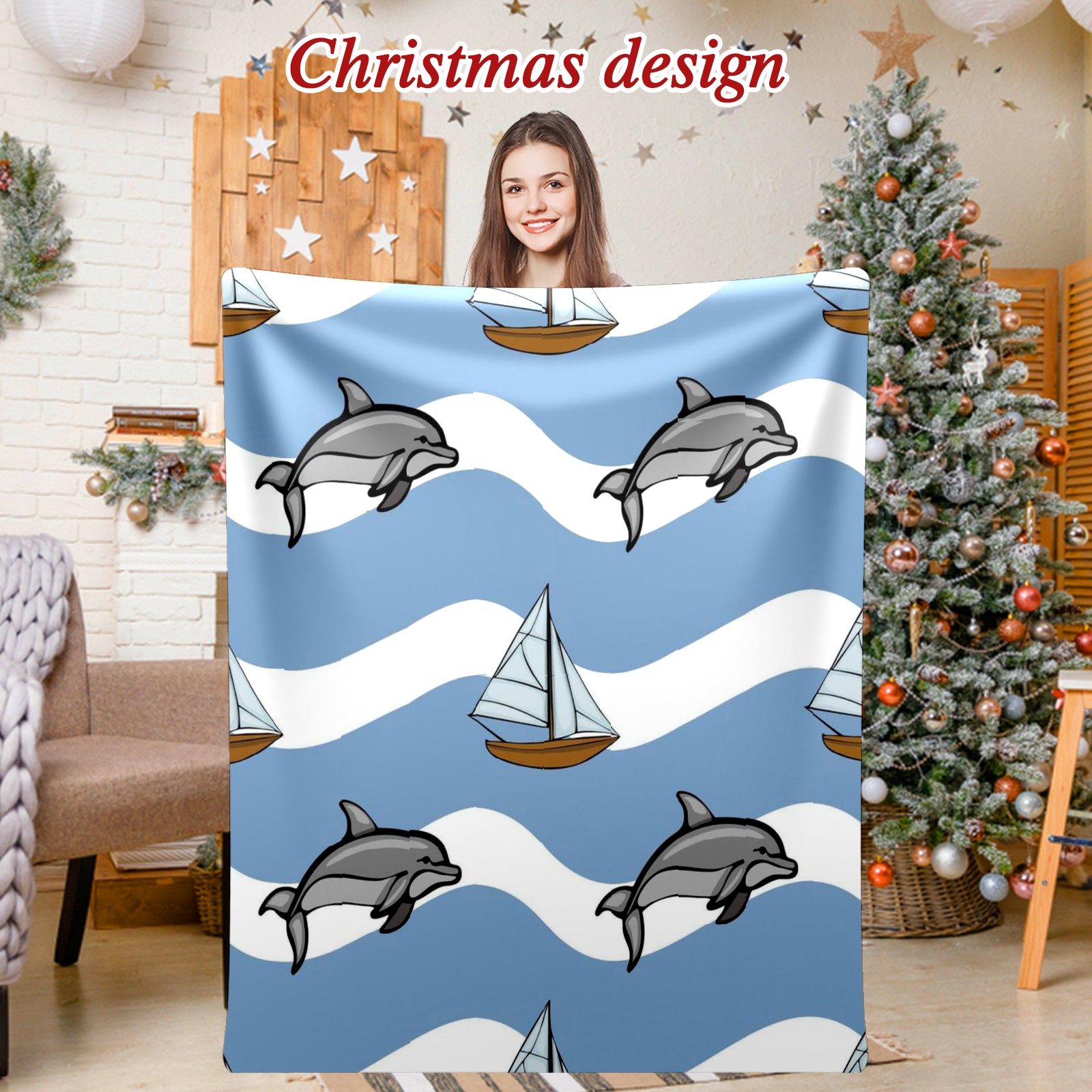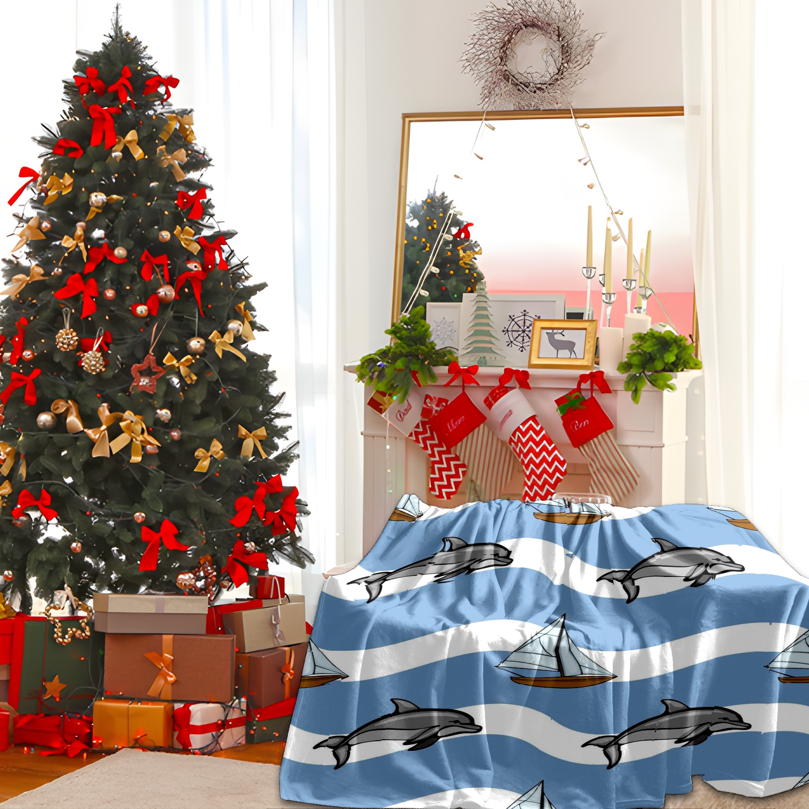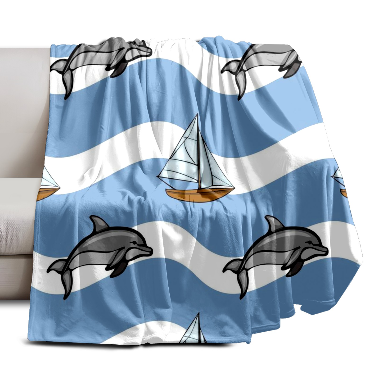 Премиальная фланелевая одеяло Blue Wave Dolphins Sailboats
