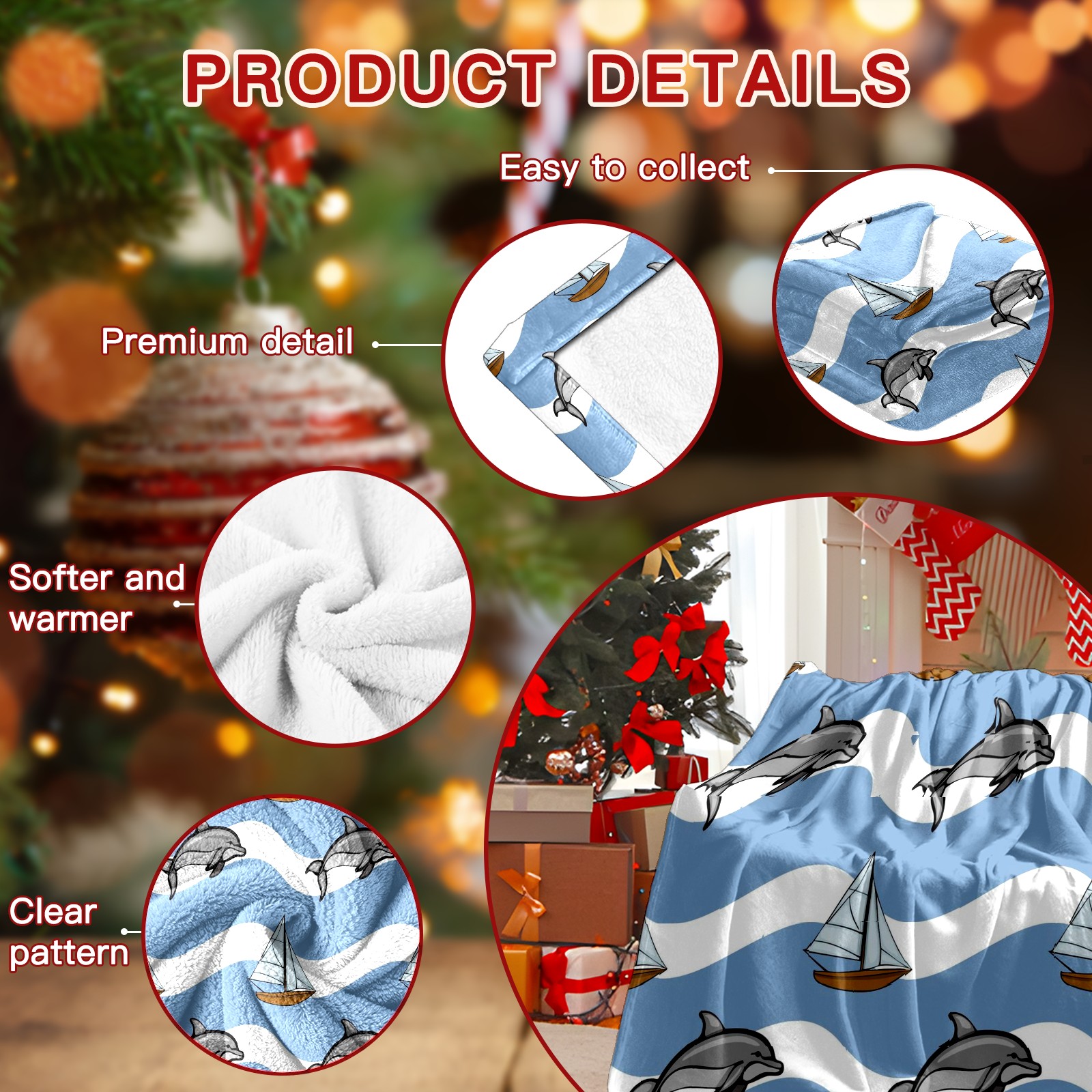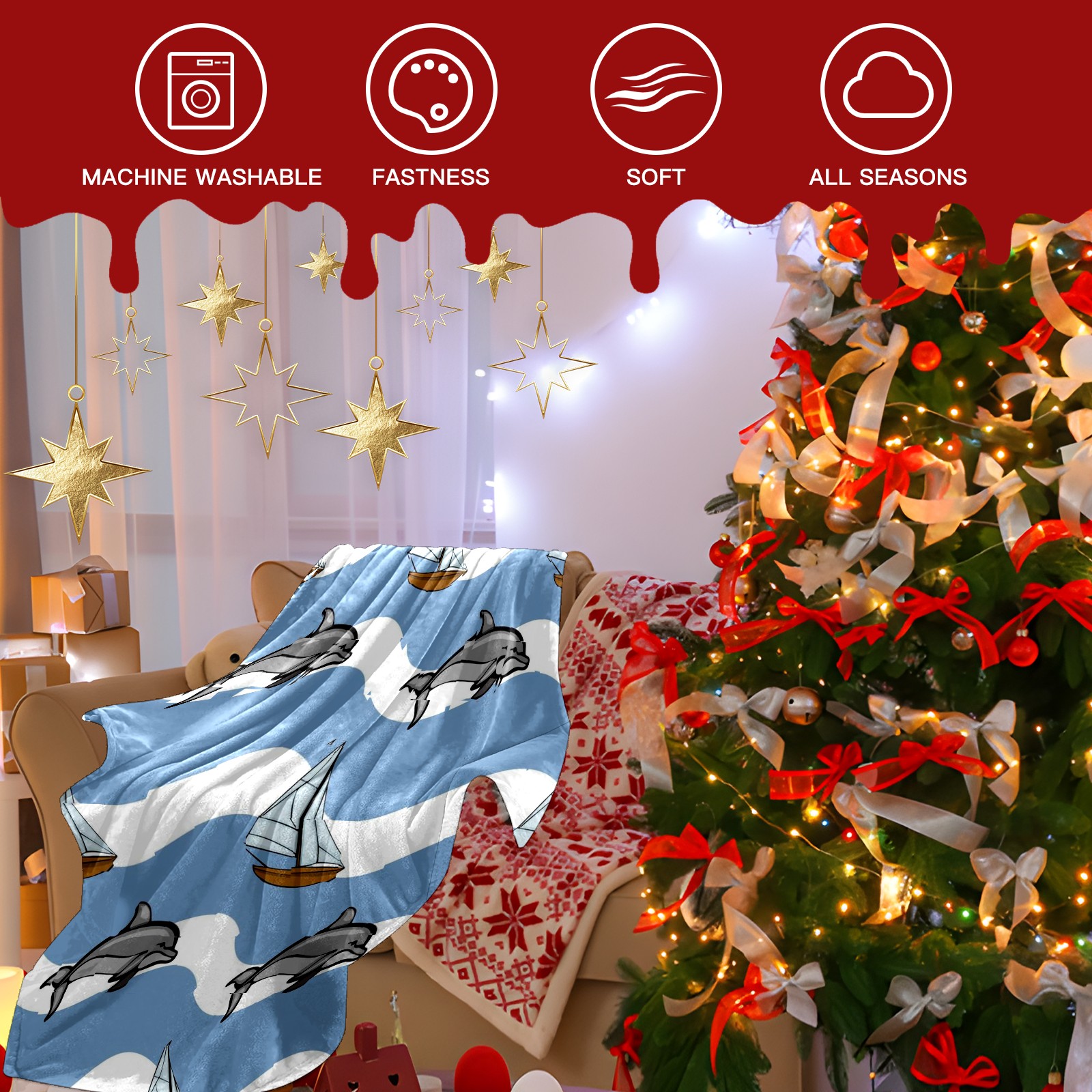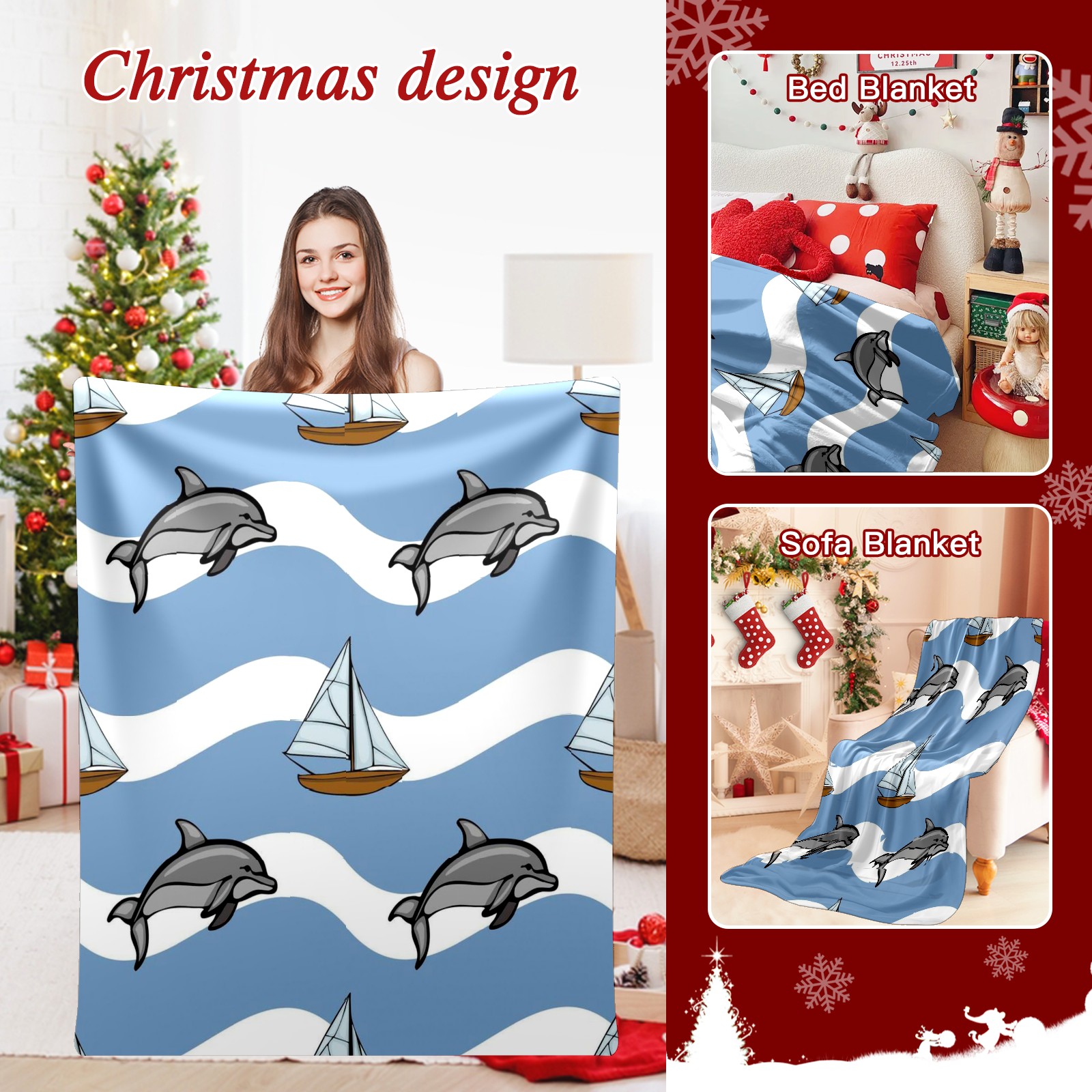Премиальная фланелевая одеяло Blue Wave Dolphins Sailboats