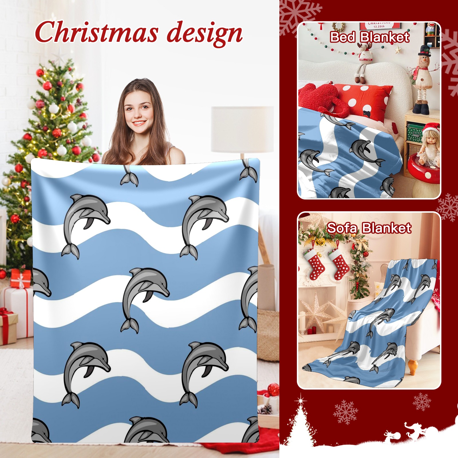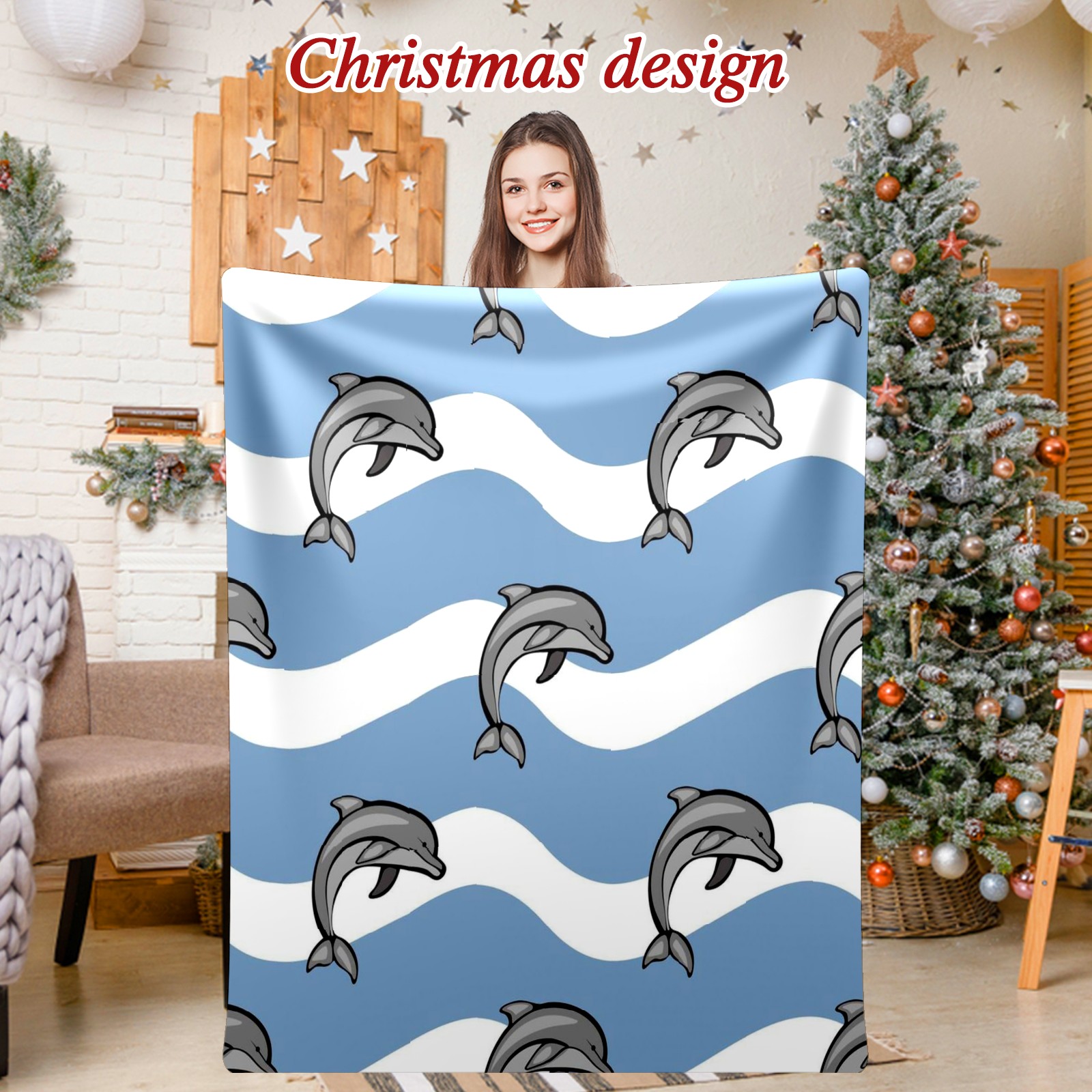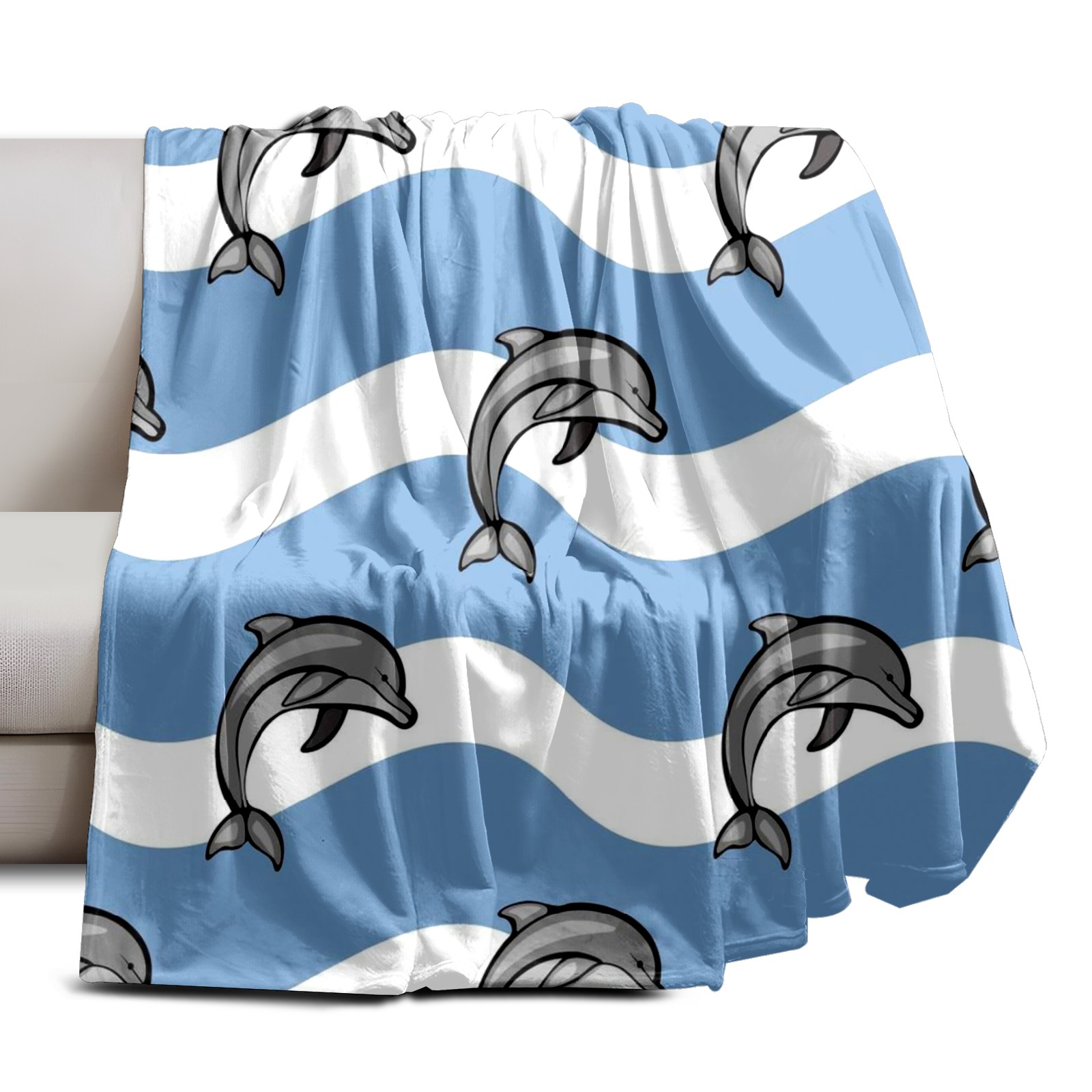 Премиальная фланелевая одеяло Blue Dolphins Waves