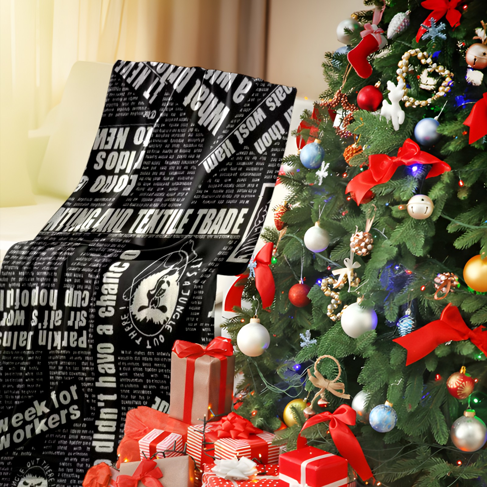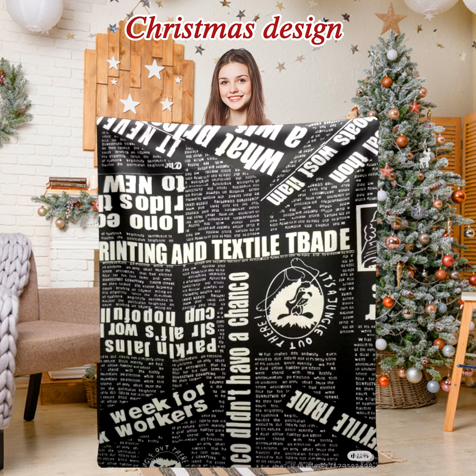 Премиальная фланелевая одеяло Vintage Newsprint
