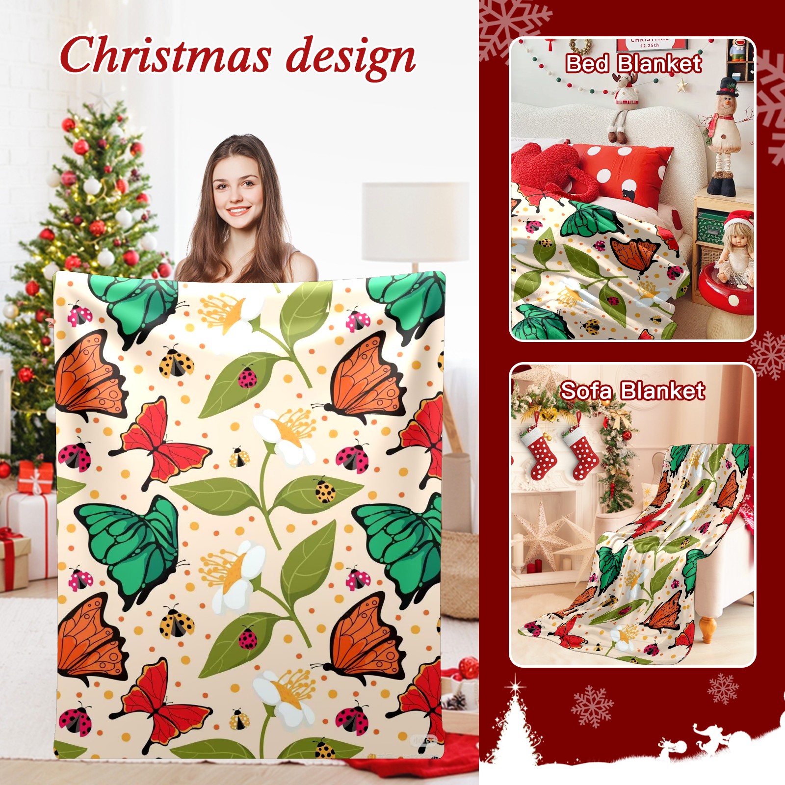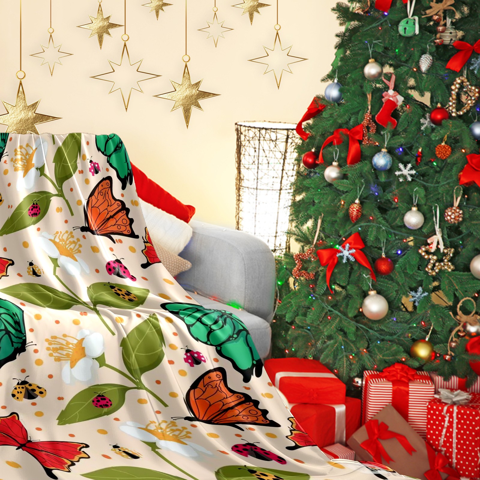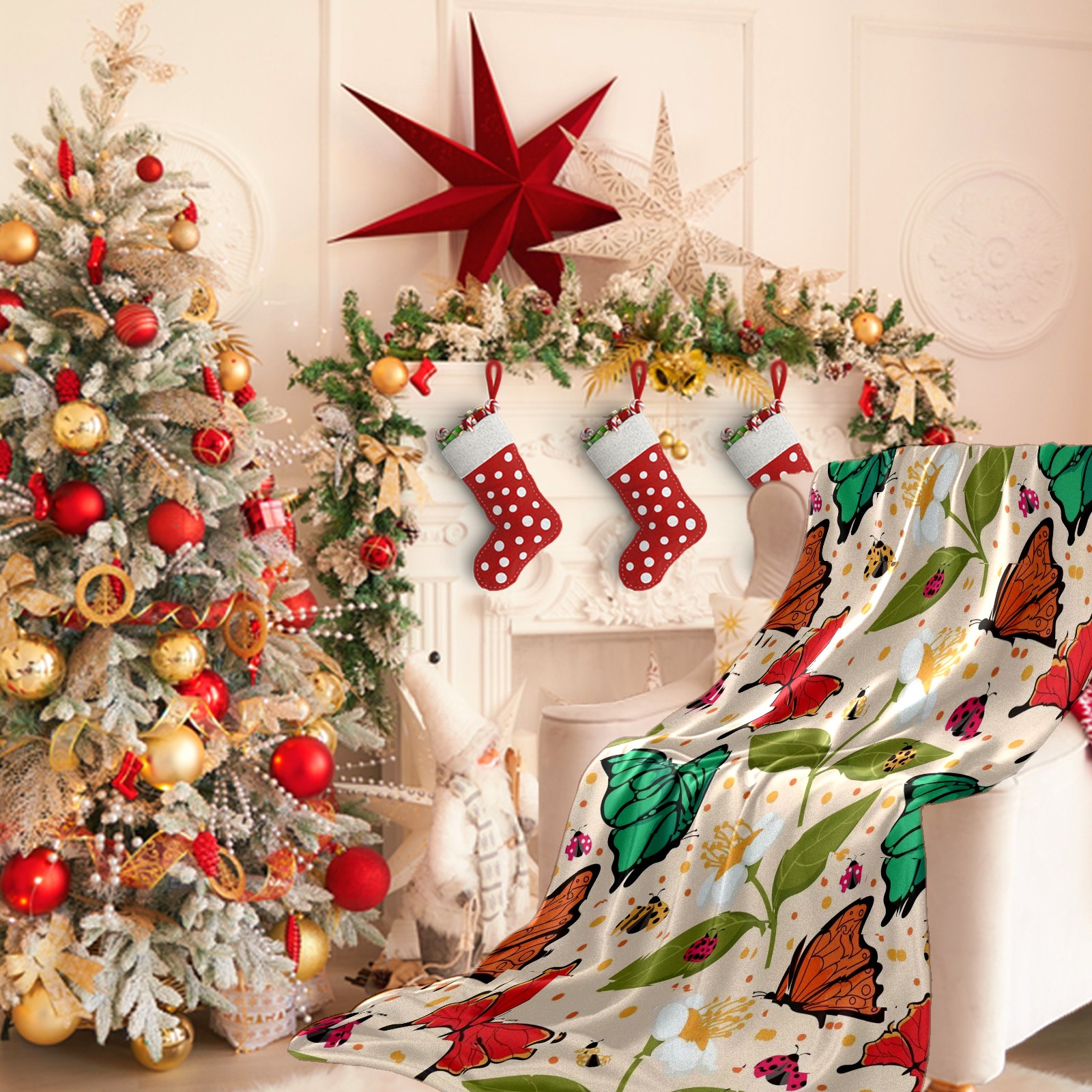Премиальная фланелевая одеяло Butterfly Mix