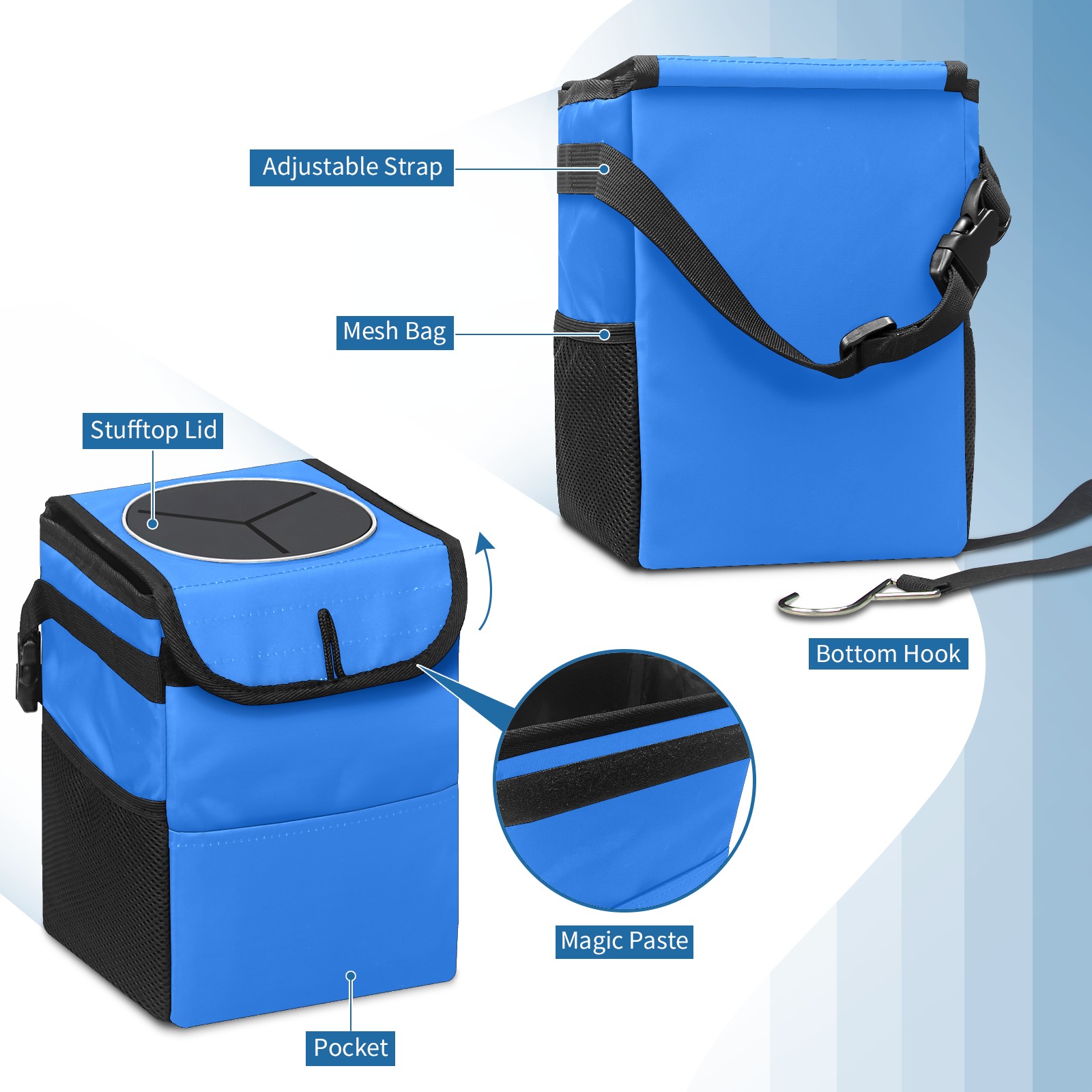 MSINMKOK Car Trash Bin with Lid Auto Garbage Bag Hanging for Back Seat - Leakproof Trash Can for Cars SUVs Trucks Vehicle Car Accessories (Sky Blue Pure Solid Color)