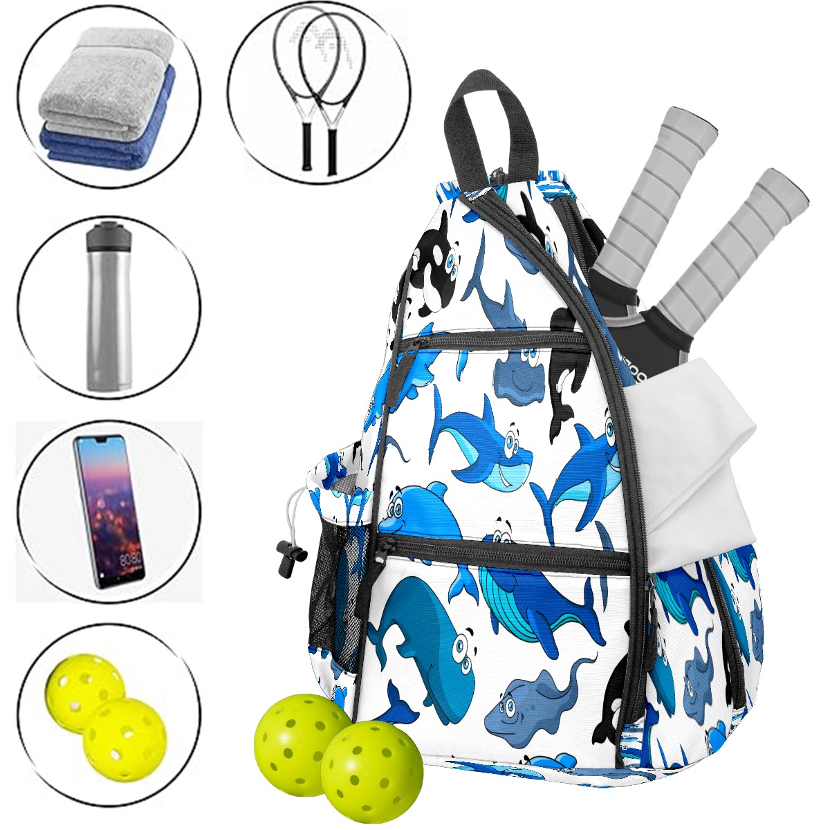 • ✅ Прочный материал Изготовлена из нейлоновой ткани + плетеного ремня + сетчатой корзины: гладкая на ощупь, приятная текстура, долговечная в использовании. ✅ Большой объем + много карманов Размер 153545см/6x13.8x17.7 дюймов, продуманная конструкция с несколькими карманами позволяет удобно разложить аксессуары для пикебола, не беспокоясь о нехватке места. ✅ Максимальный комфорт ношения Подушенное спинное отделение + регулируемые сетчатые плечевые ремни эффективно предотвращают растяжение мышц и боль в плечах, даже при длительном ношении. ✅ Универсальное использование Ремни выполнены по технологии съемного молния — регулируемый способ ношения. Подходит как повседневная поясная сумка для поездок, прогулок и других мероприятий, также является идеальным подарком для друзей и близких!