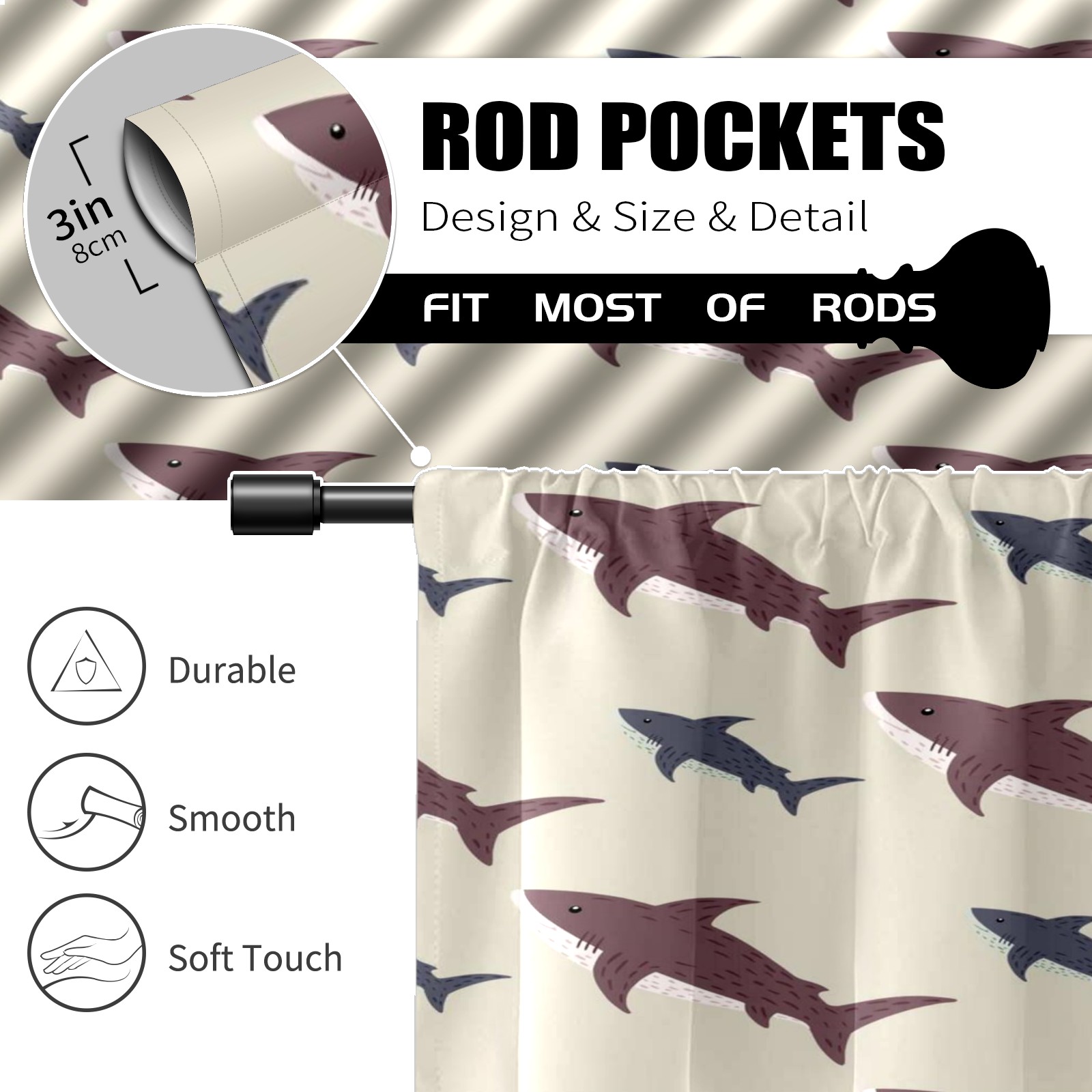 Шторы-панно для дома, декоративные драпировки для гостиной и спальни, легкие и прочные, Brown Sharks