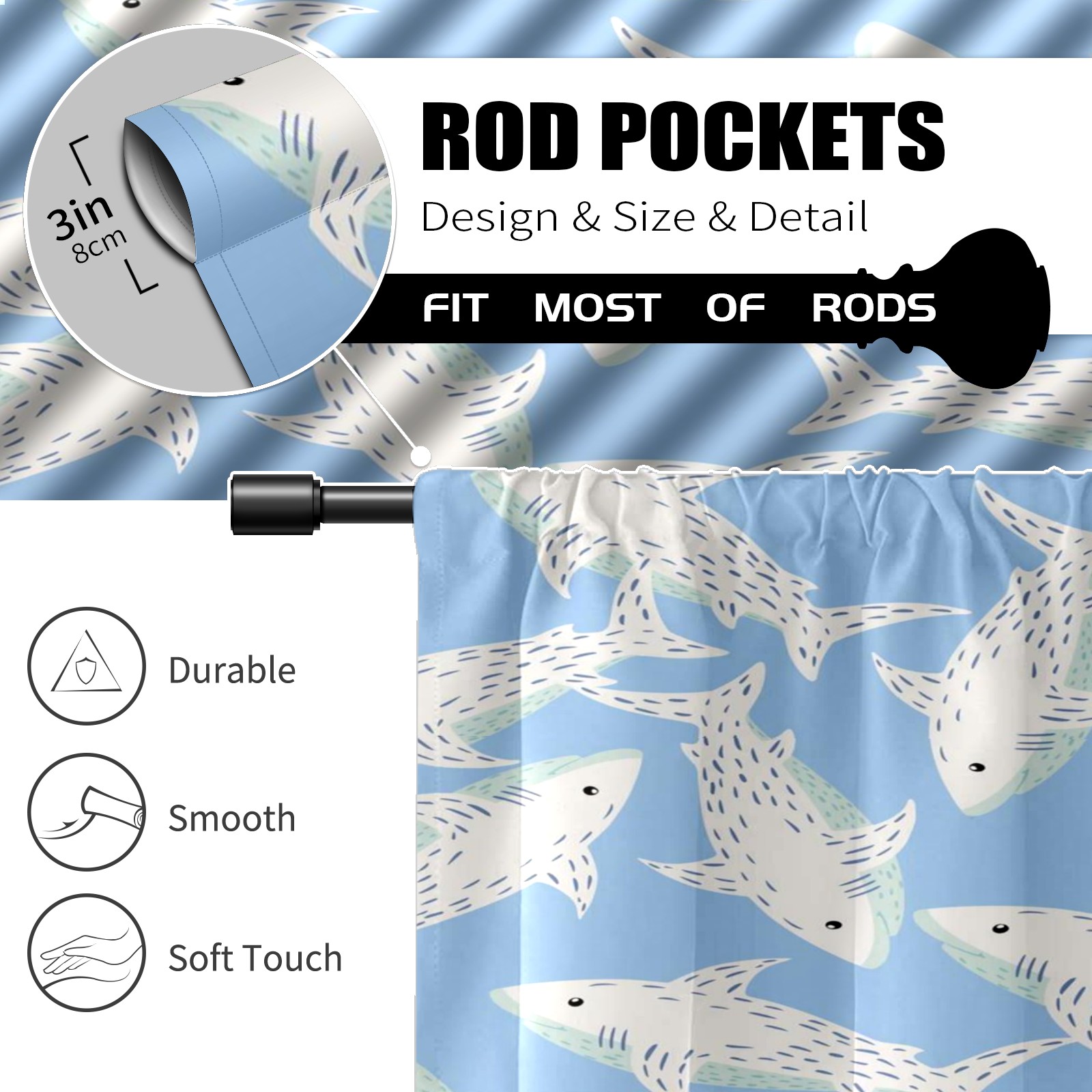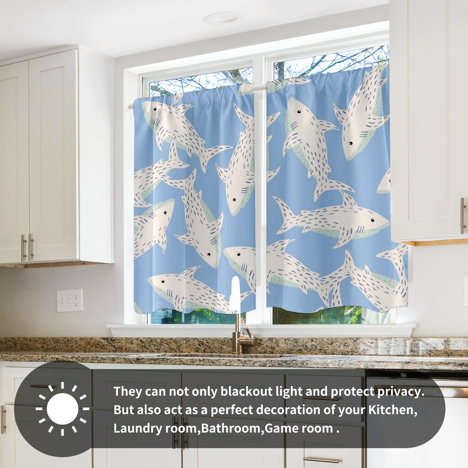 Шторы-панно для дома, декоративные драпировки для гостиной и спальни, легкие и прочные, Blue White Sharks