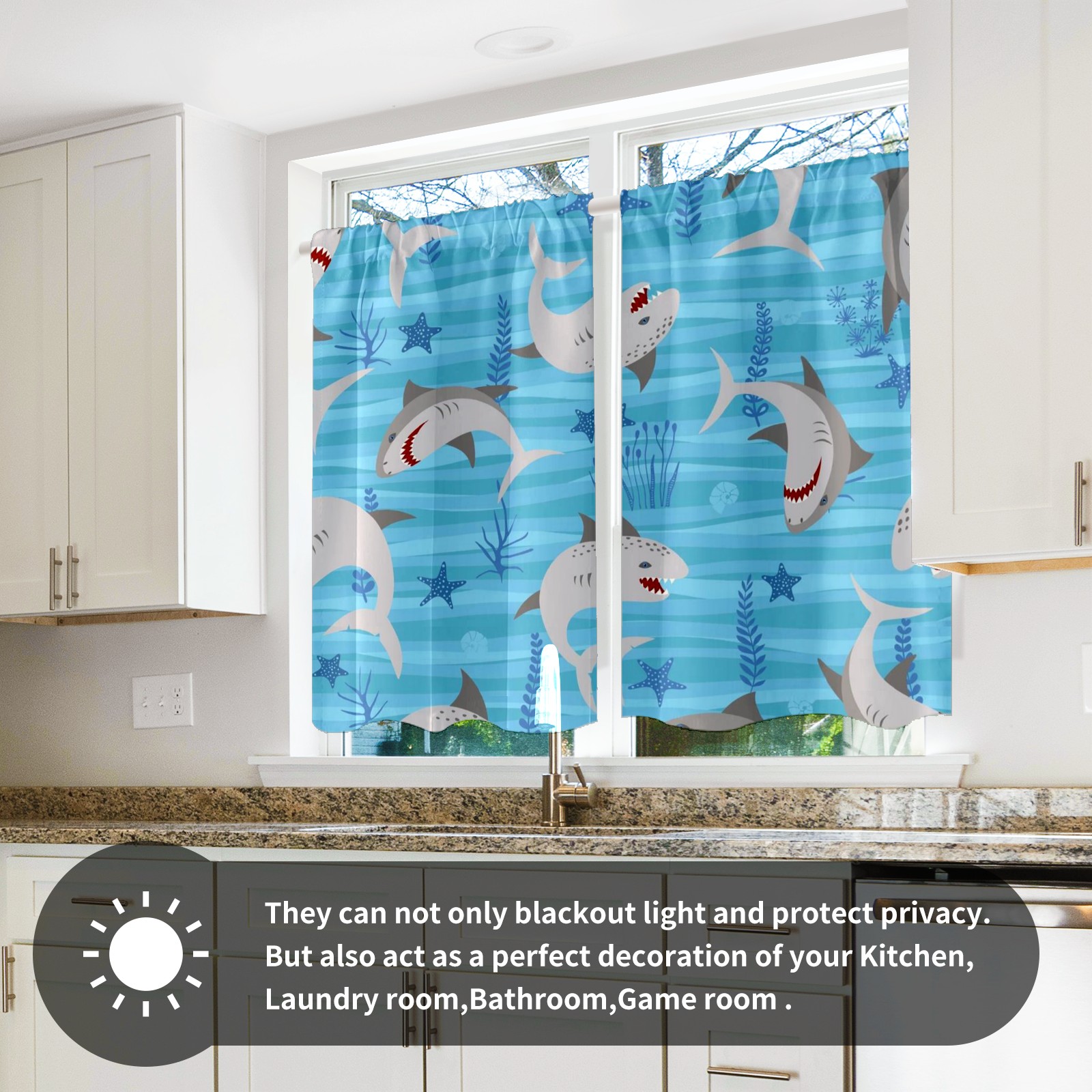 Шторы-панно для дома, декоративные драпировки для гостиной и спальни, легкие и прочные, Blue Gray Sharks