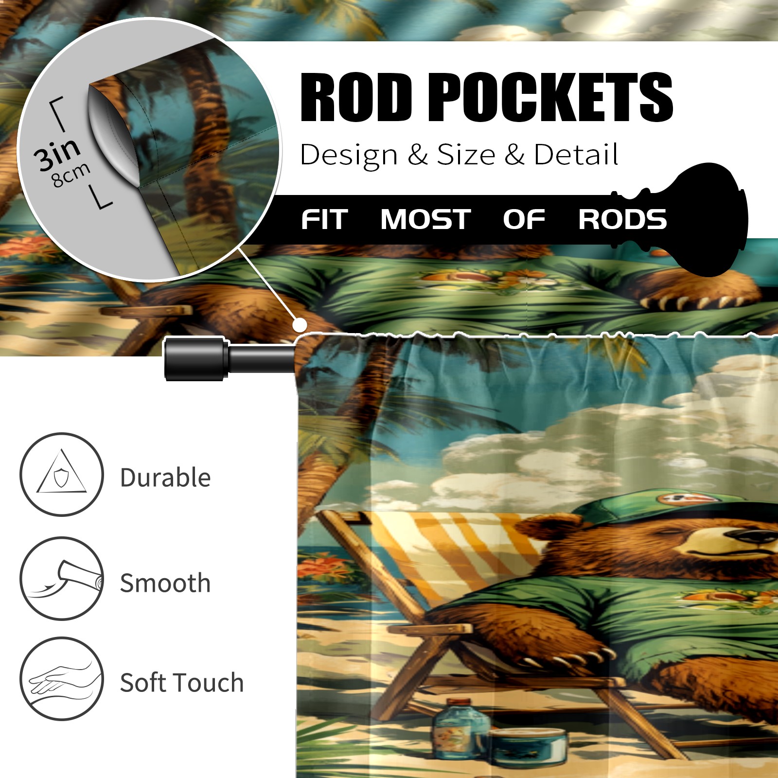 Шторы-панно для дома, декоративные драпировки для гостиной и спальни, легкие и прочные, Resting Bear Pattern