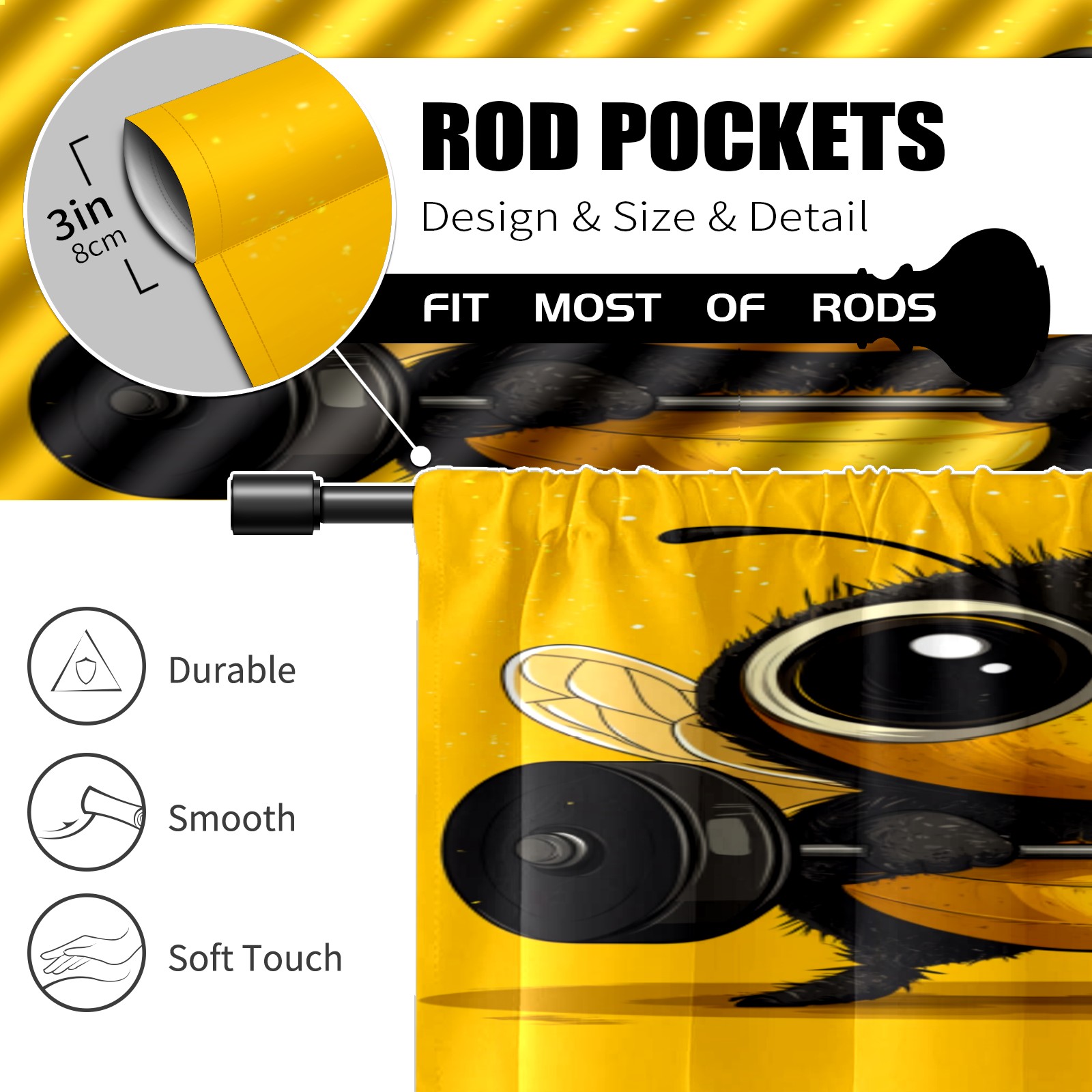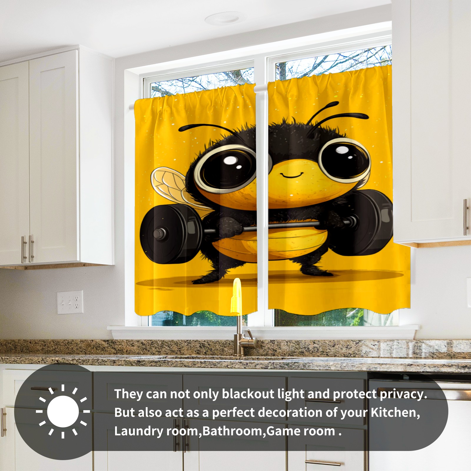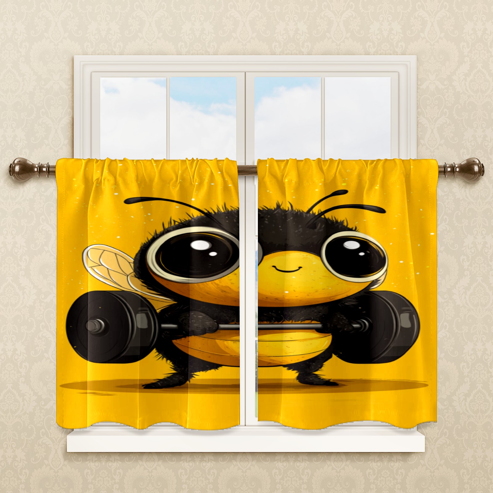 Шторы-панно для дома, декоративные драпировки для гостиной и спальни, легкие и прочные, Weightlifting Bee Pattern