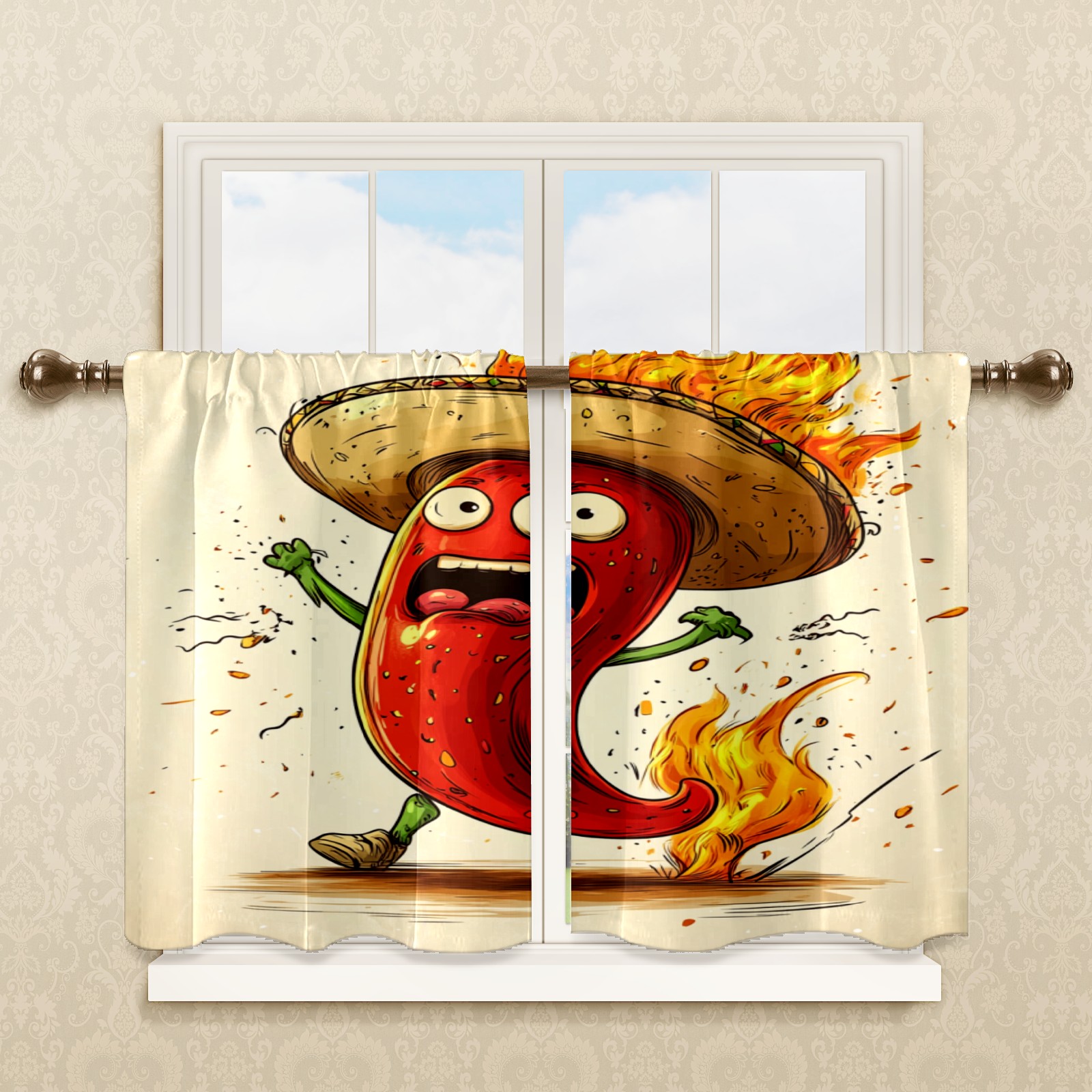 Шторы-панно для дома, декоративные драпировки для гостиной и спальни, легкие и прочные, Cheering Flaming Chili Pepper