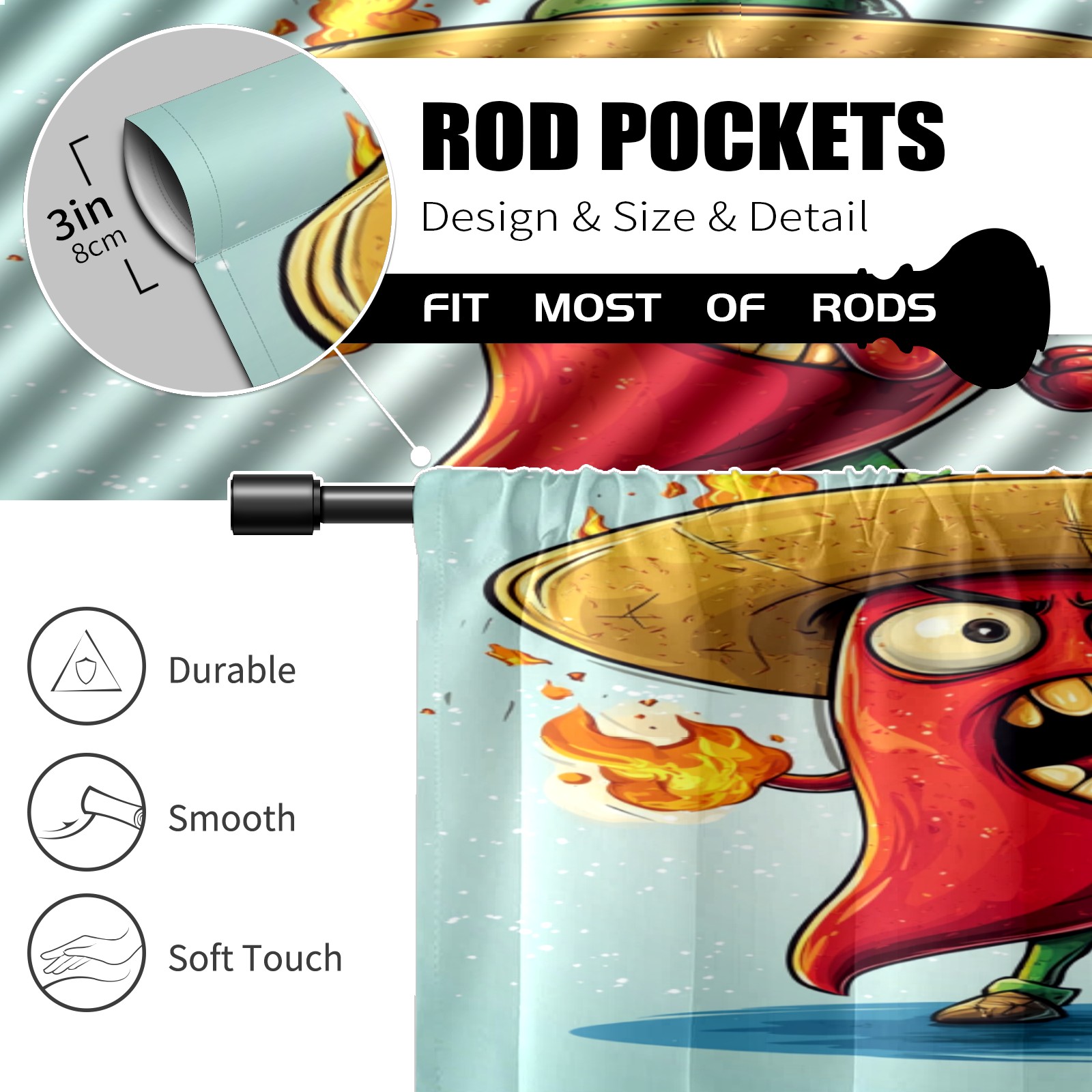 Шторы-панно для дома, декоративные драпировки для гостиной и спальни, легкие и прочные, Angry Flaming Chili Pepper