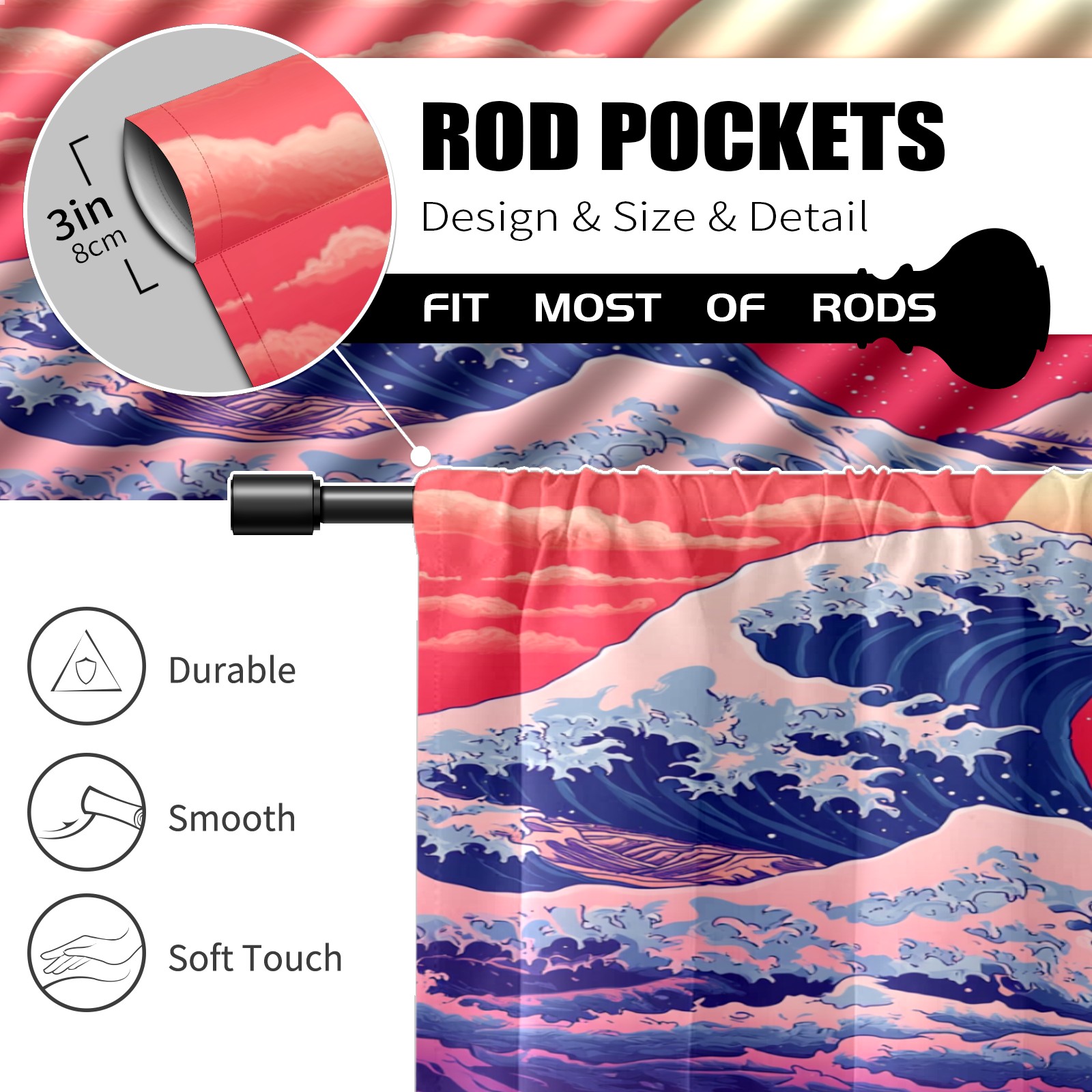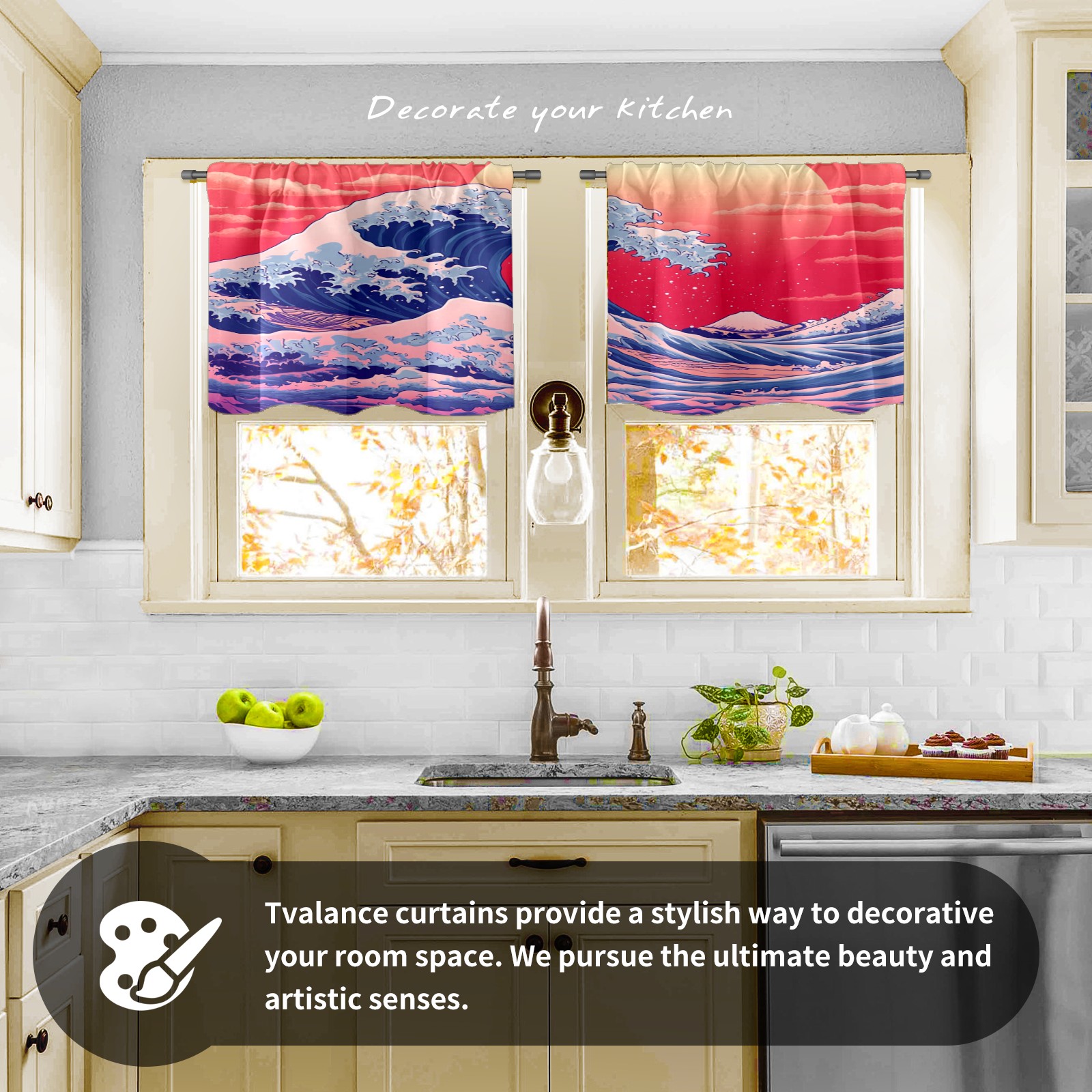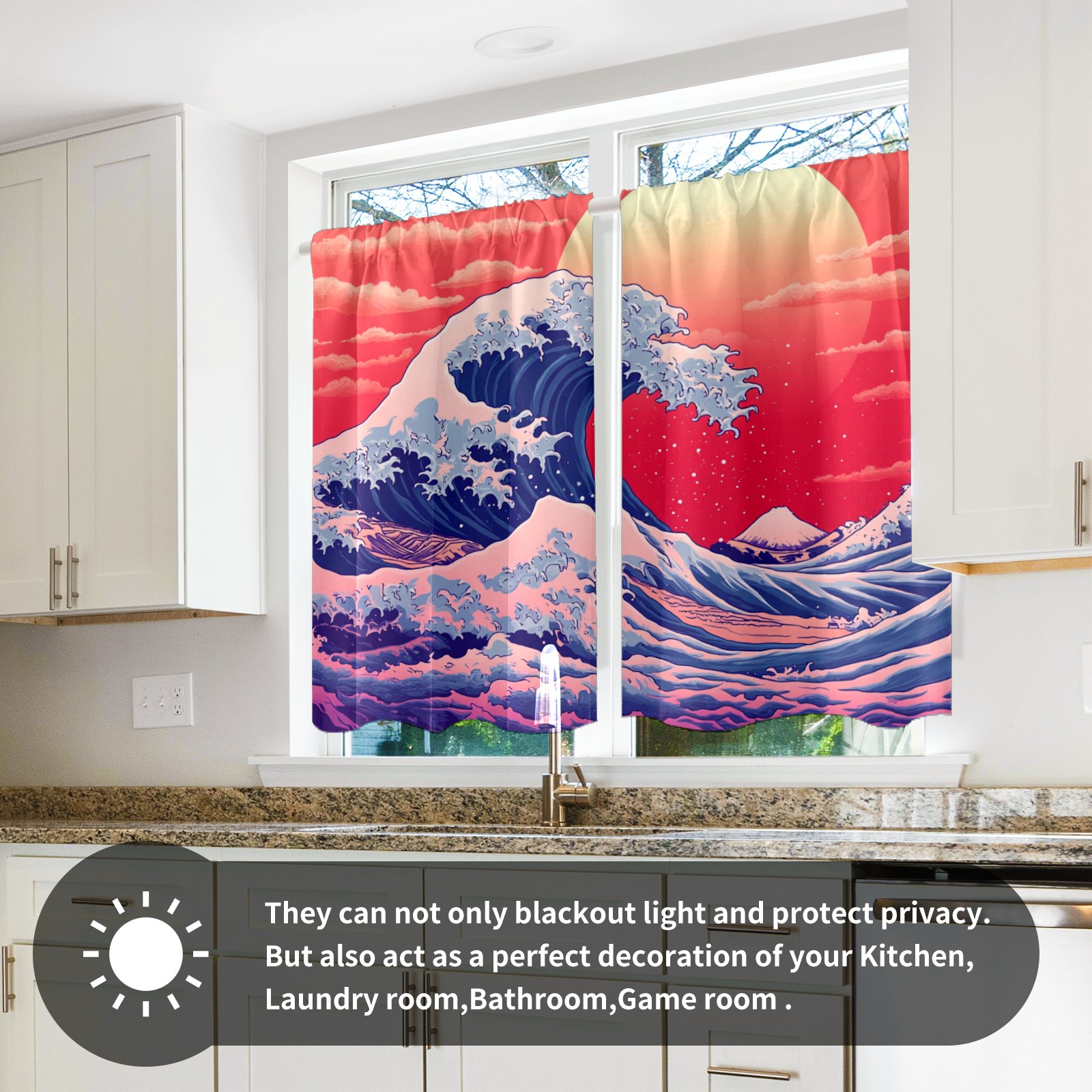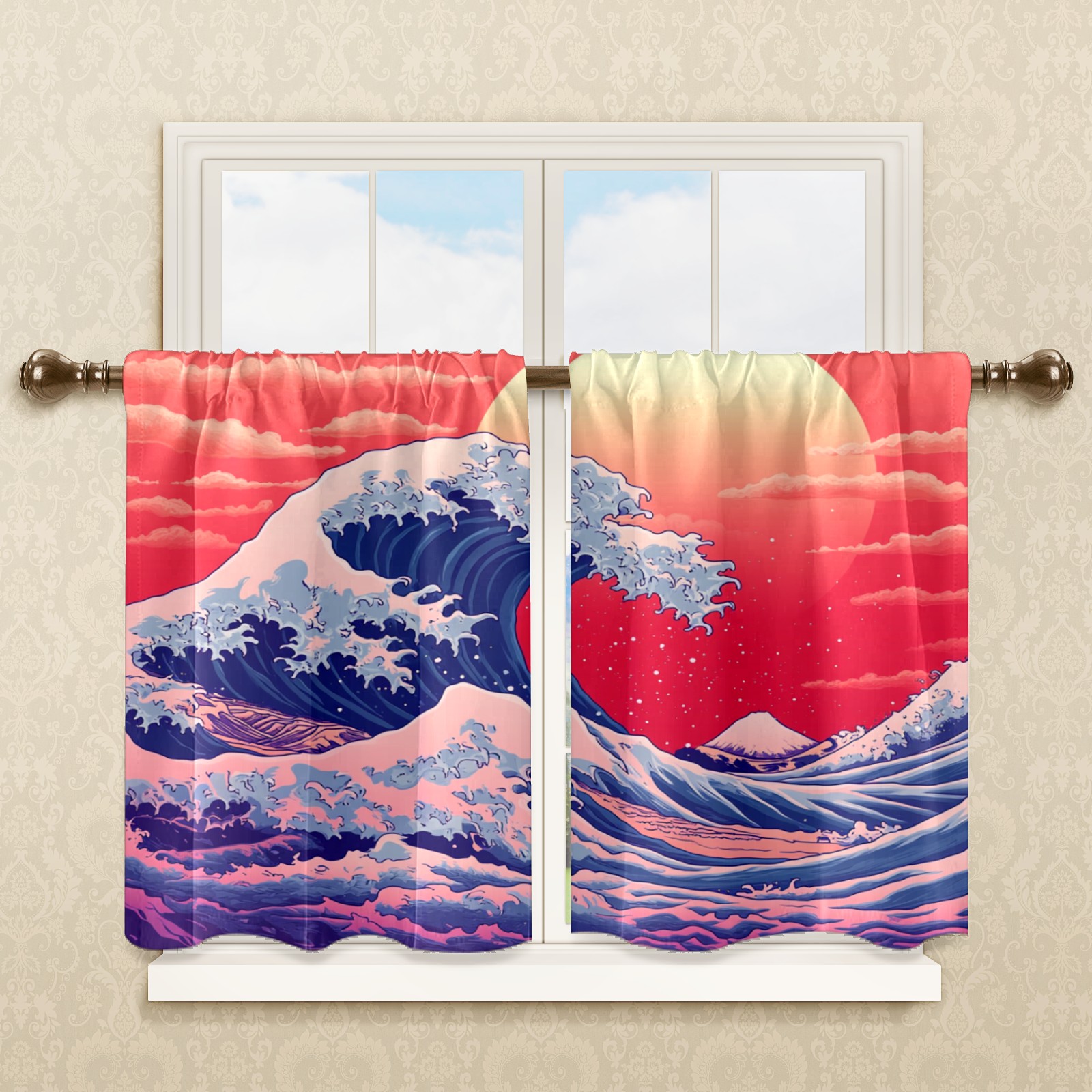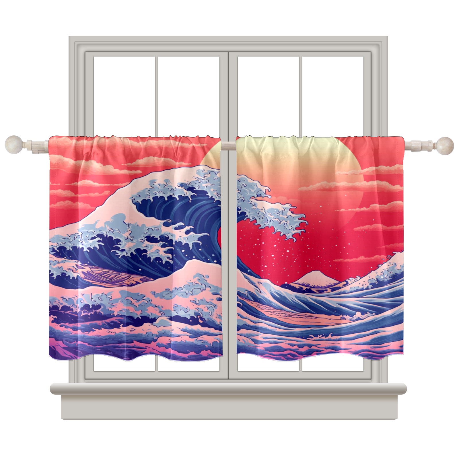 Шторы-панно для дома, декоративные драпировки для гостиной и спальни, легкие и прочные, Red Sun Sea Waves