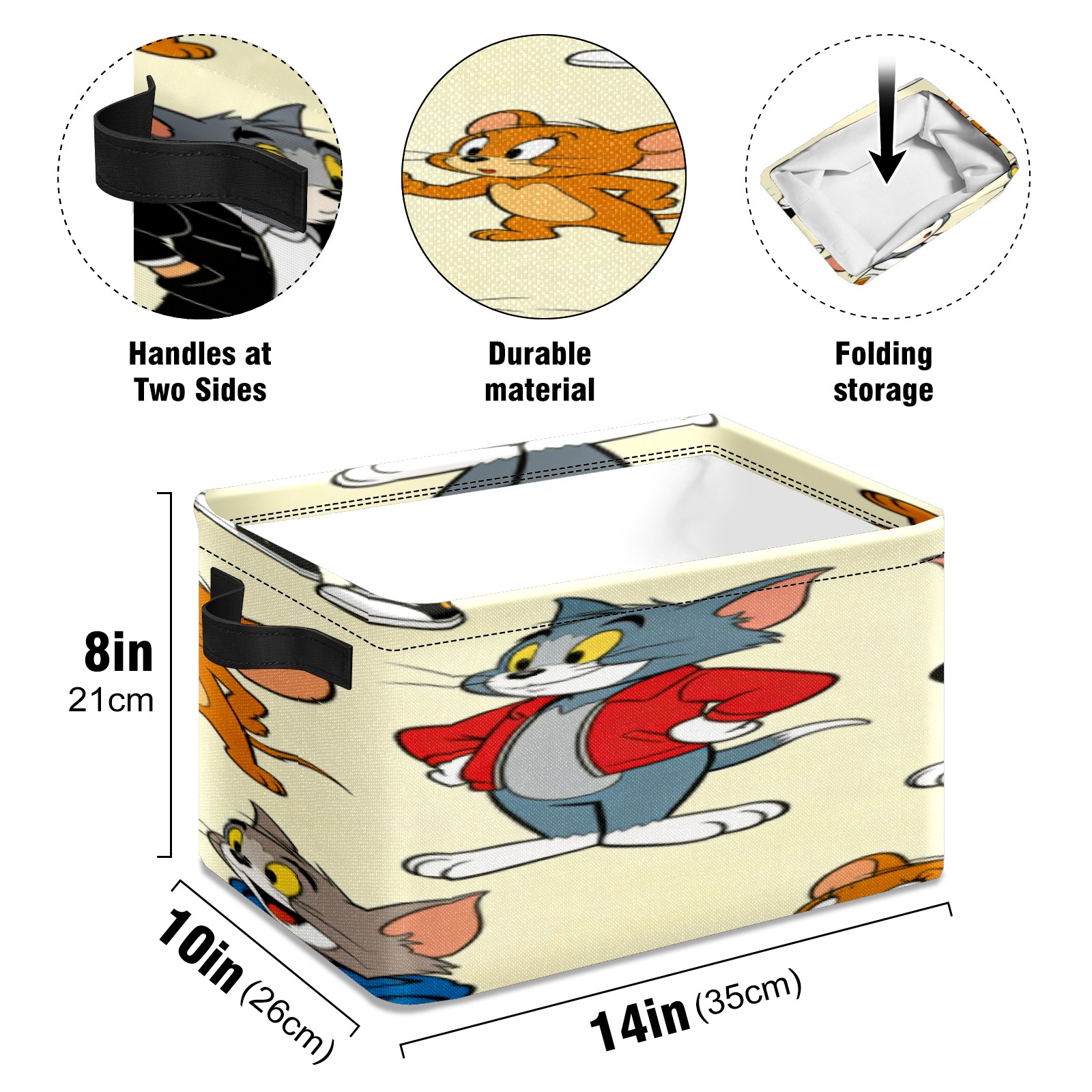 【Материал】Оксфордская ткань из полиэстера 600D; ручки изготовлены из полиэстера. 【Описание материала】Внешняя ткань: Оксфордская ткань полотняного переплетения высокой плотности 300D (ПВХ); Подкладка: белая ткань 750D; Ручки: черная композитная ткань 290T. 【Размер】26x35x21 см (10x14x8 дюймов) 【Описание продукта】Эта корзина для хранения с ручками с обеих сторон предлагает достаточно места для хранения предметов разных размеров, что делает ее подходящей для различных случаев, таких как дом, офис и школа. Ручки с обеих сторон закреплены гвоздями для долговечности. Прочный металлический каркас окружает корзину, поддерживая ее форму. Складная корзина для хранения: Наши корзины для хранения легко складываются, когда не используются. Эти ящики для хранения изготовлены из легко моющейся оксфордской ткани и при необходимости могут быть аккуратно протерты мягким мылом и водой. Из-за внутреннего металлического каркаса и жесткого дна машинная стирка не рекомендуется. 【Подходящие сценарии использования】Дом, офис и школа 【Инструкции по стирке】Рекомендуется ручная стирка; избегайте длительного воздействия прямых солнечных лучей.