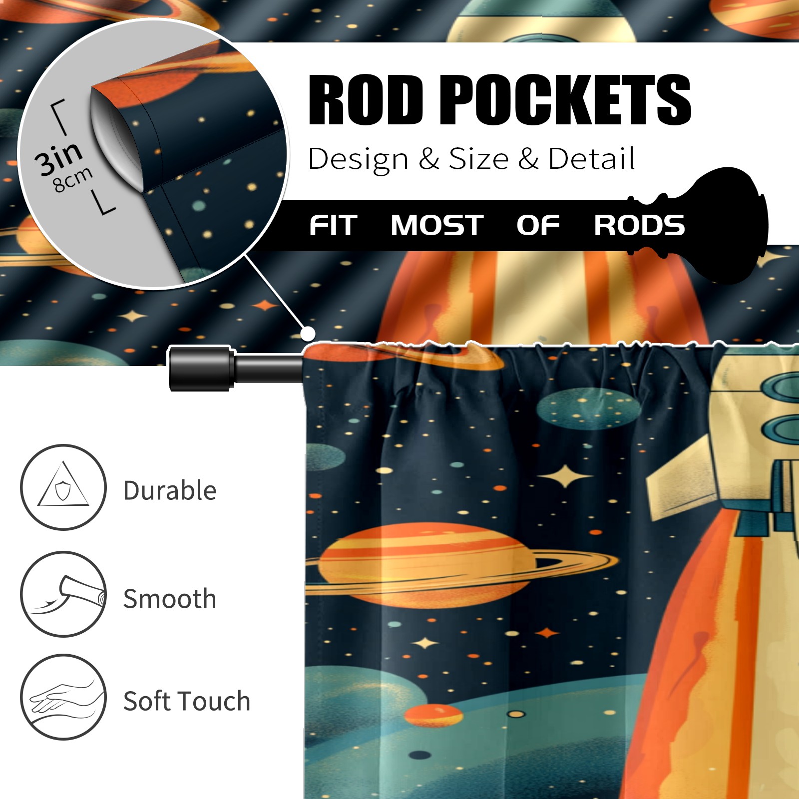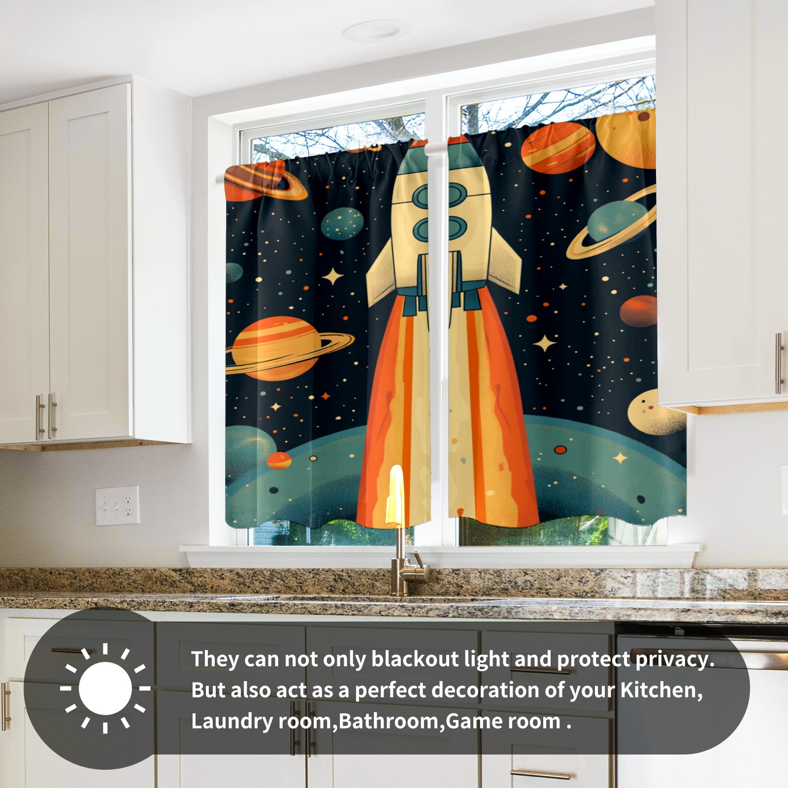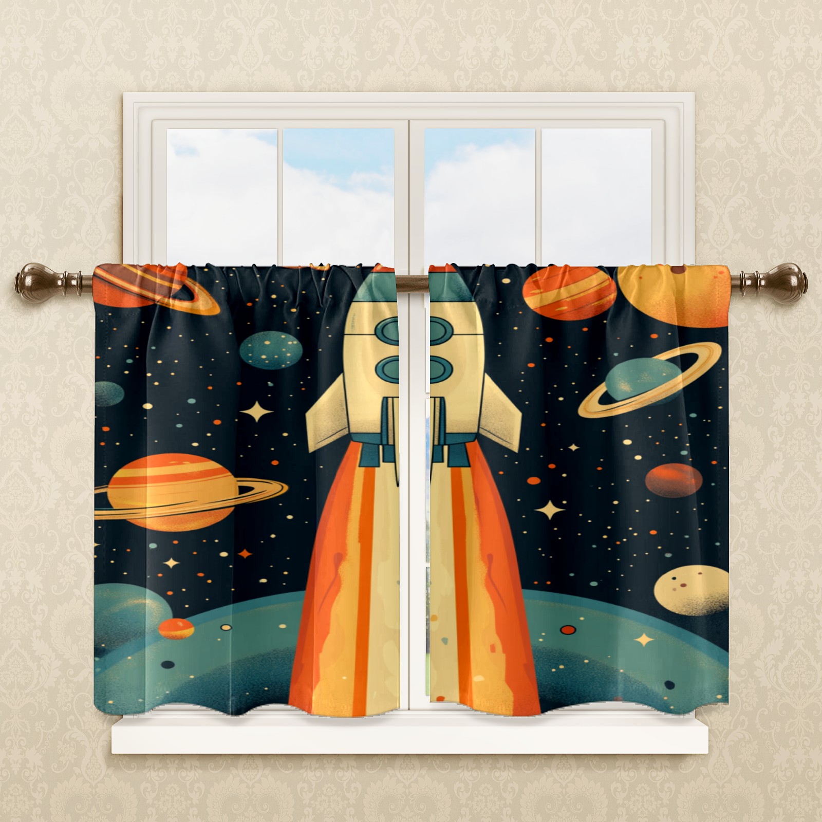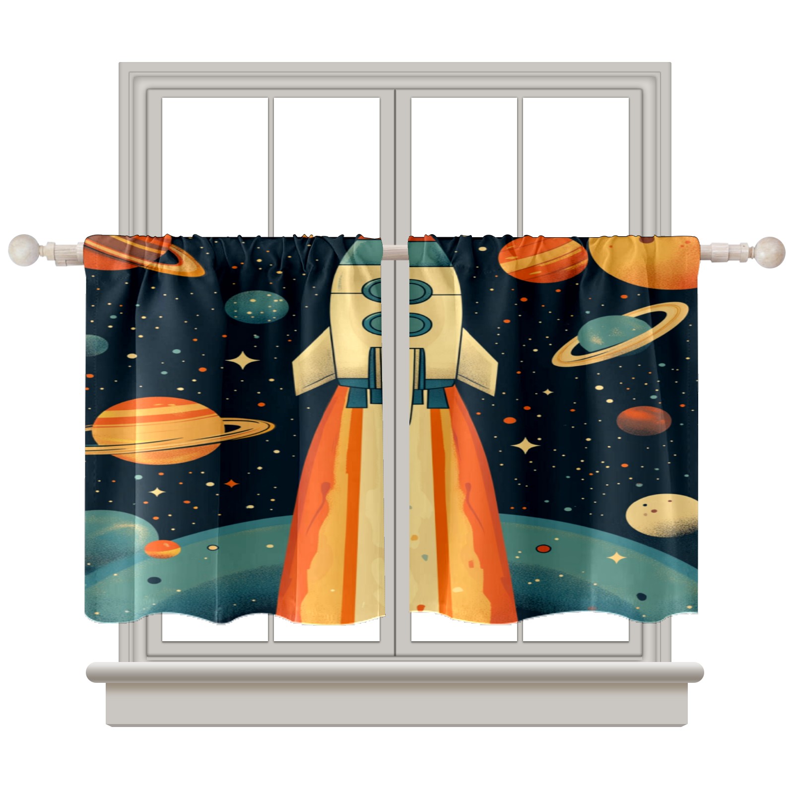 Шторы-панно для дома, декоративные драпировки для гостиной и спальни, легкие и прочные, Space Rocket Planet Pattern