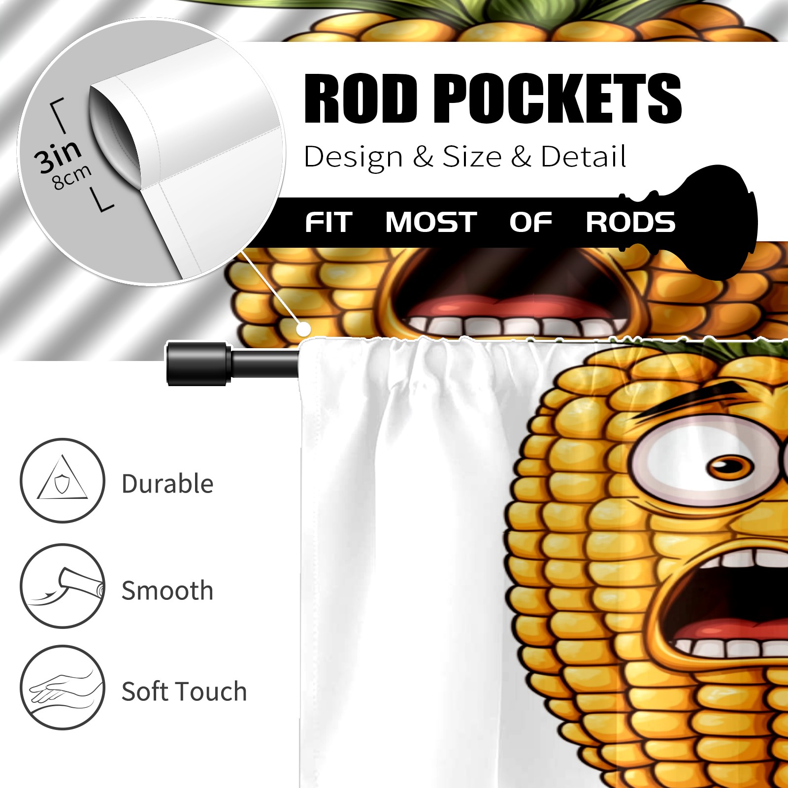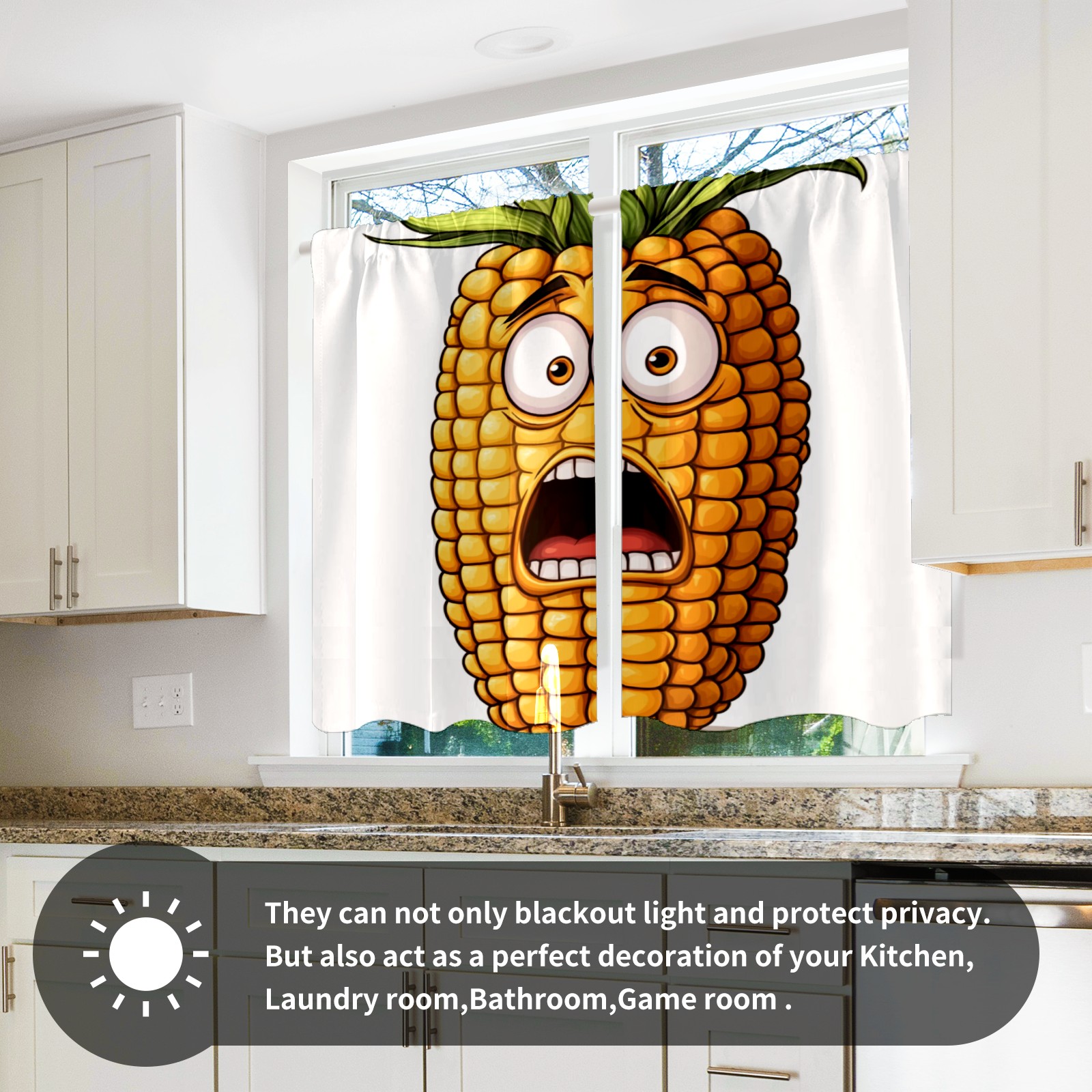 Шторы-панно для дома, декоративные драпировки для гостиной и спальни, легкие и прочные, Surprised Corn Character Pattern