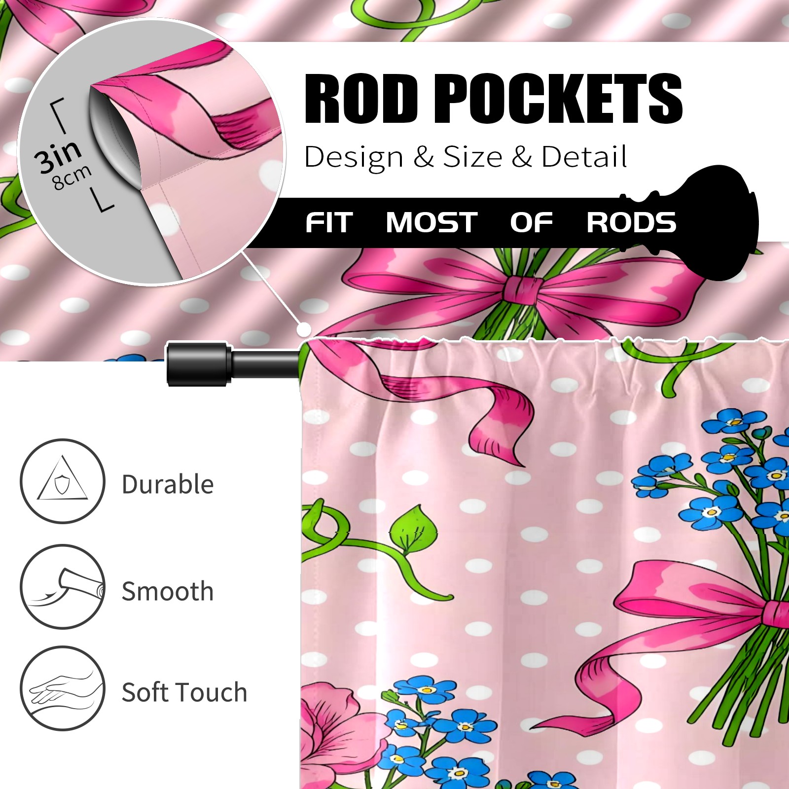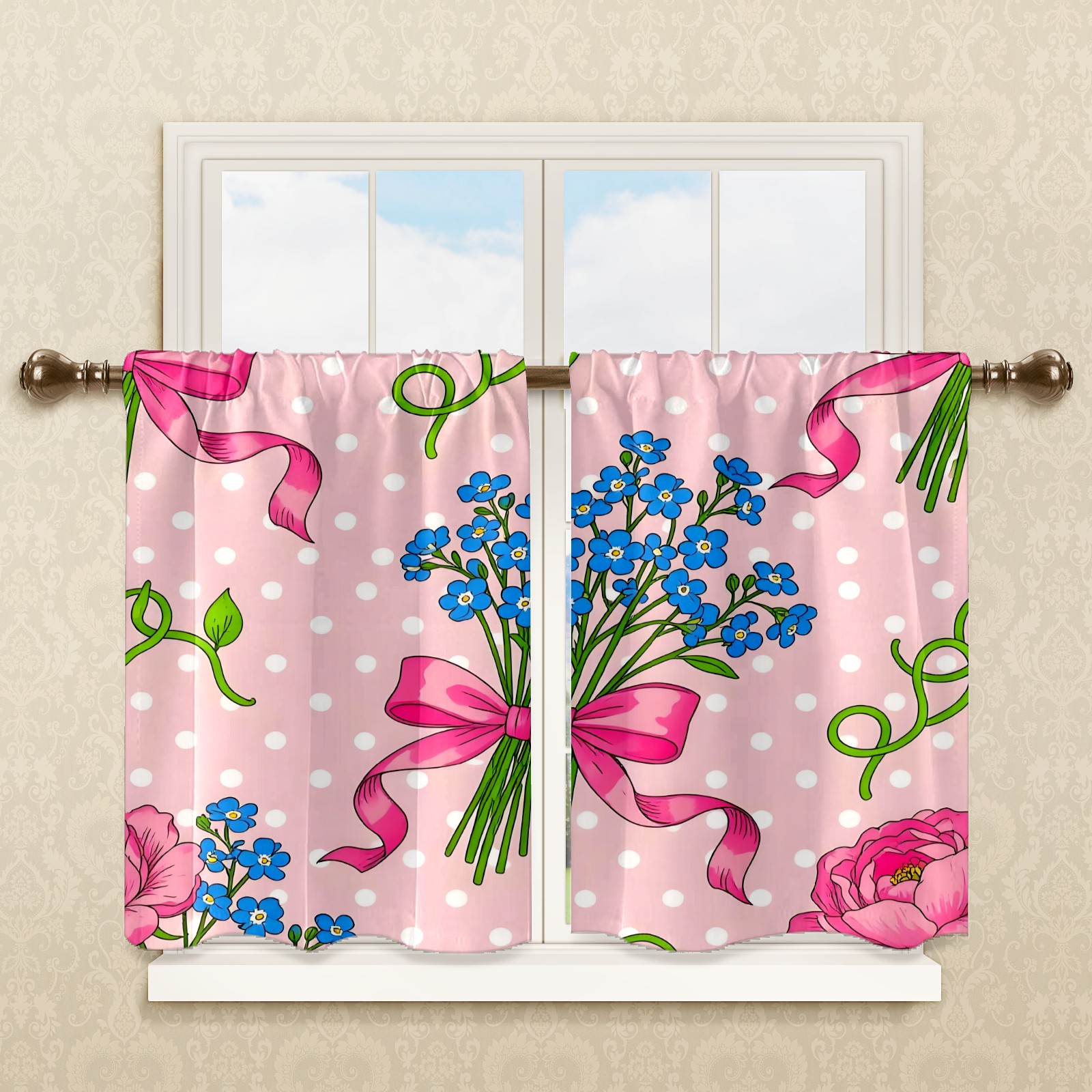 Шторы-панно для дома, декоративные драпировки для гостиной и спальни, легкие и прочные, Bouquet Bow Pink