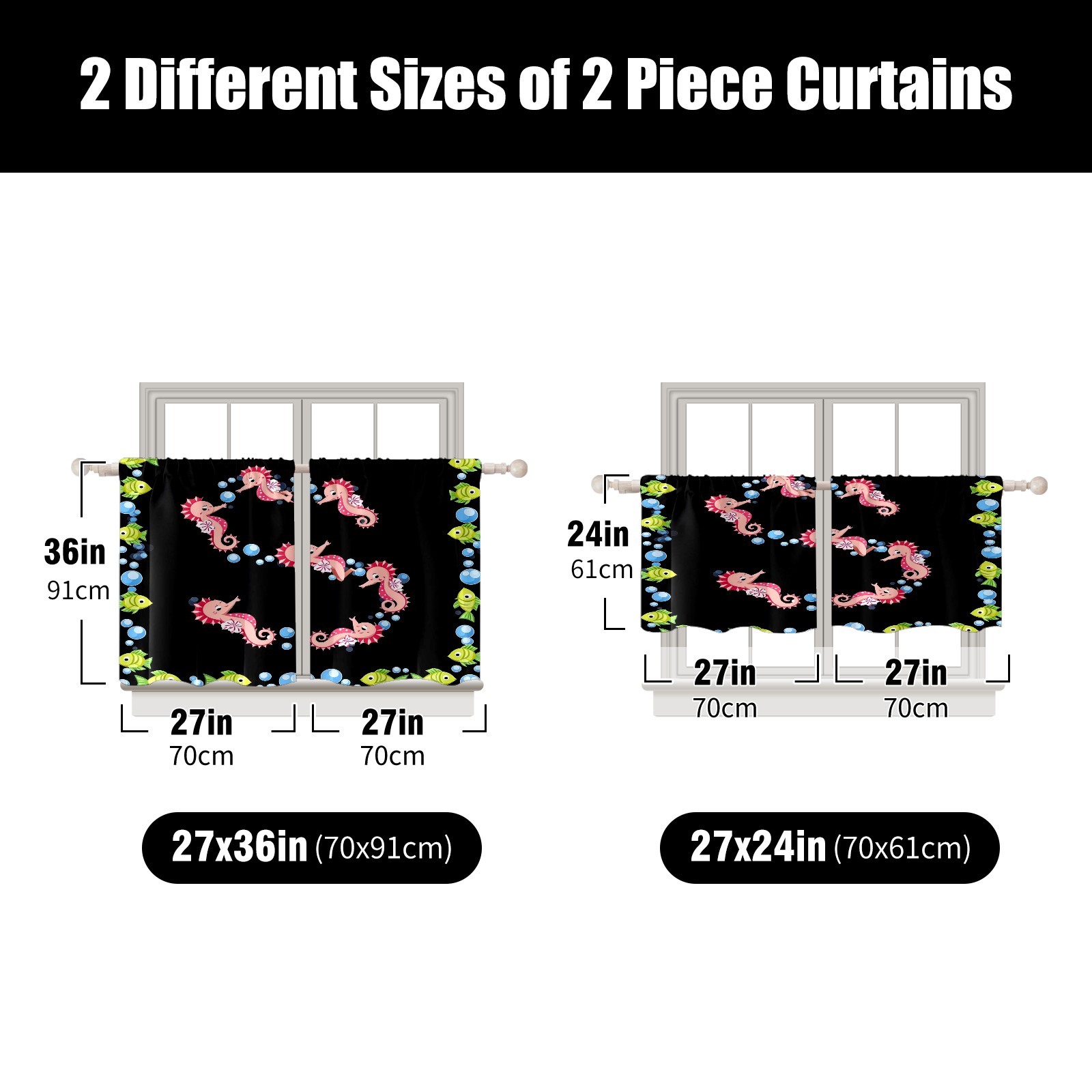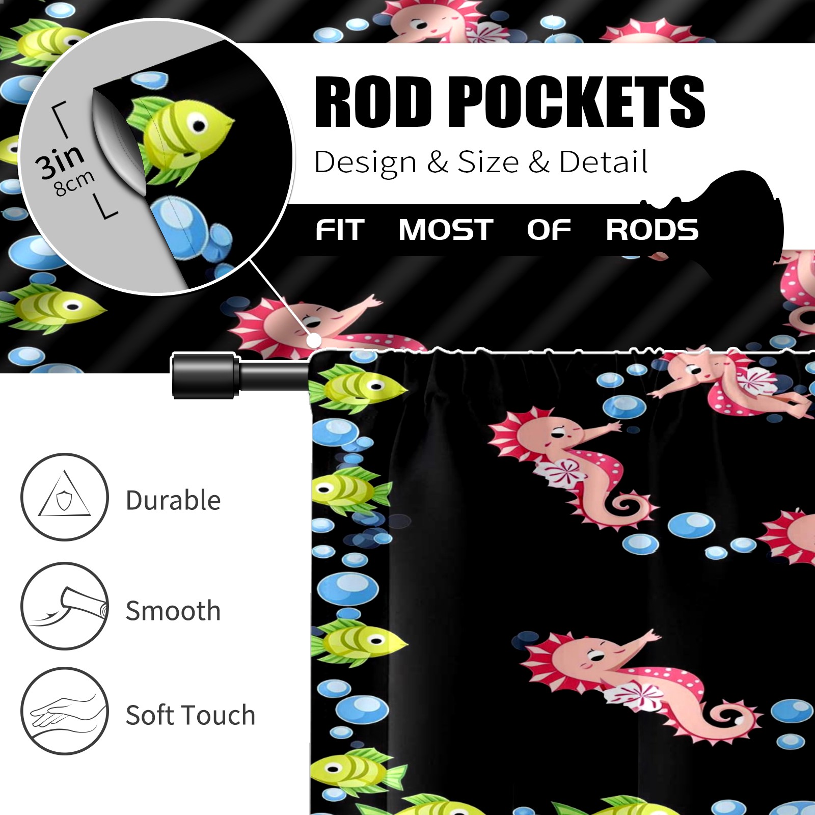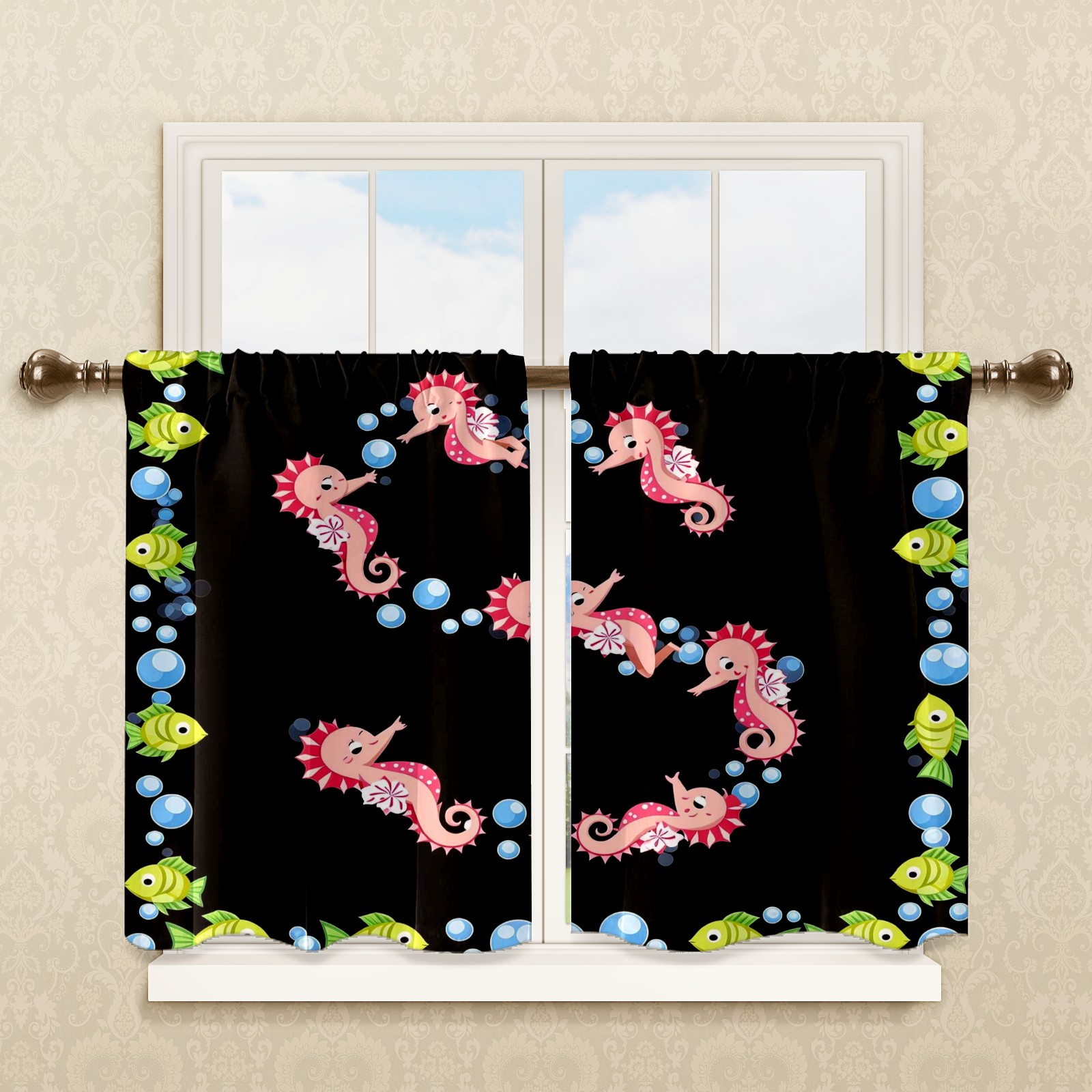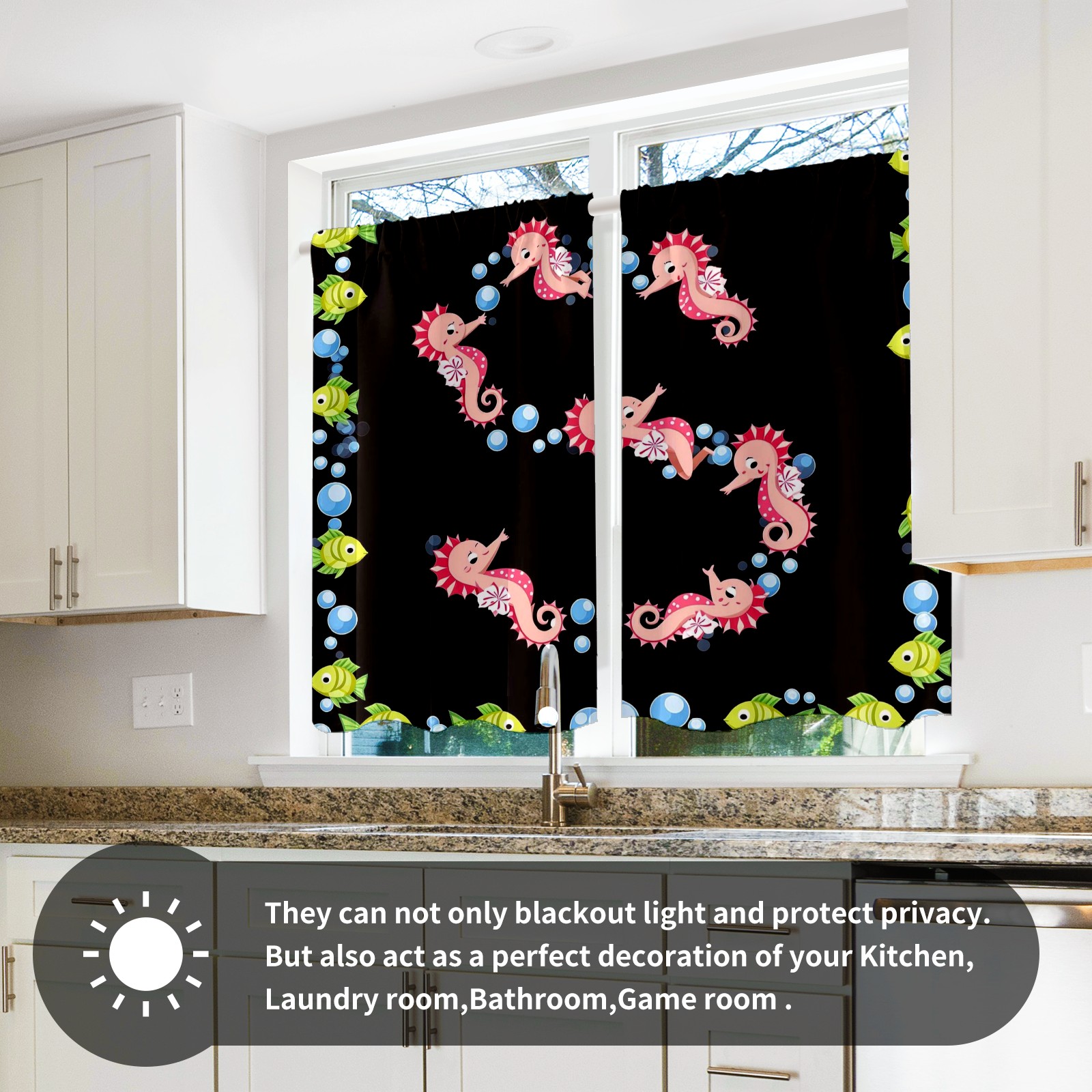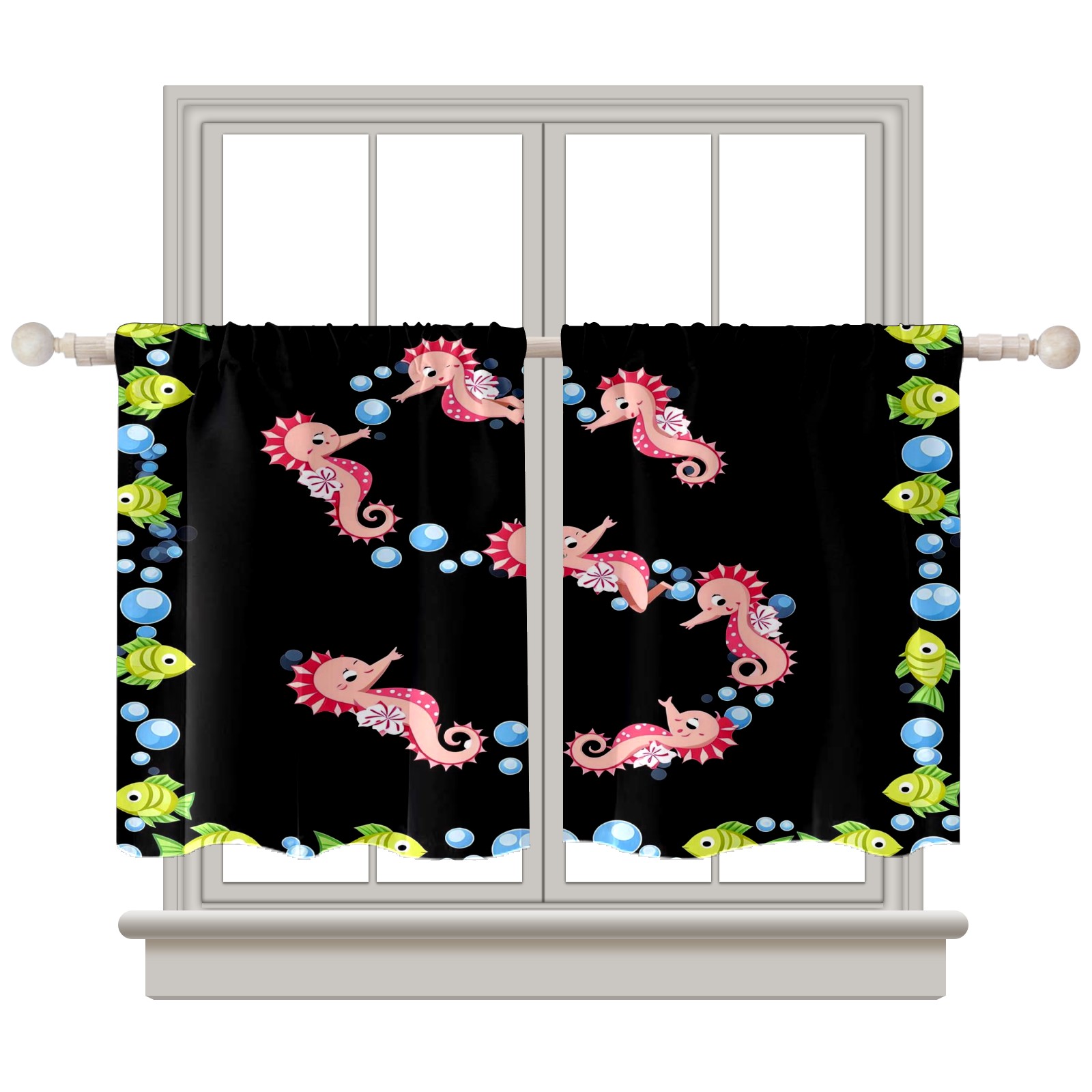 Шторы-панно для дома, декоративные драпировки для гостиной и спальни, легкие и прочные, Seahorse Fish Black