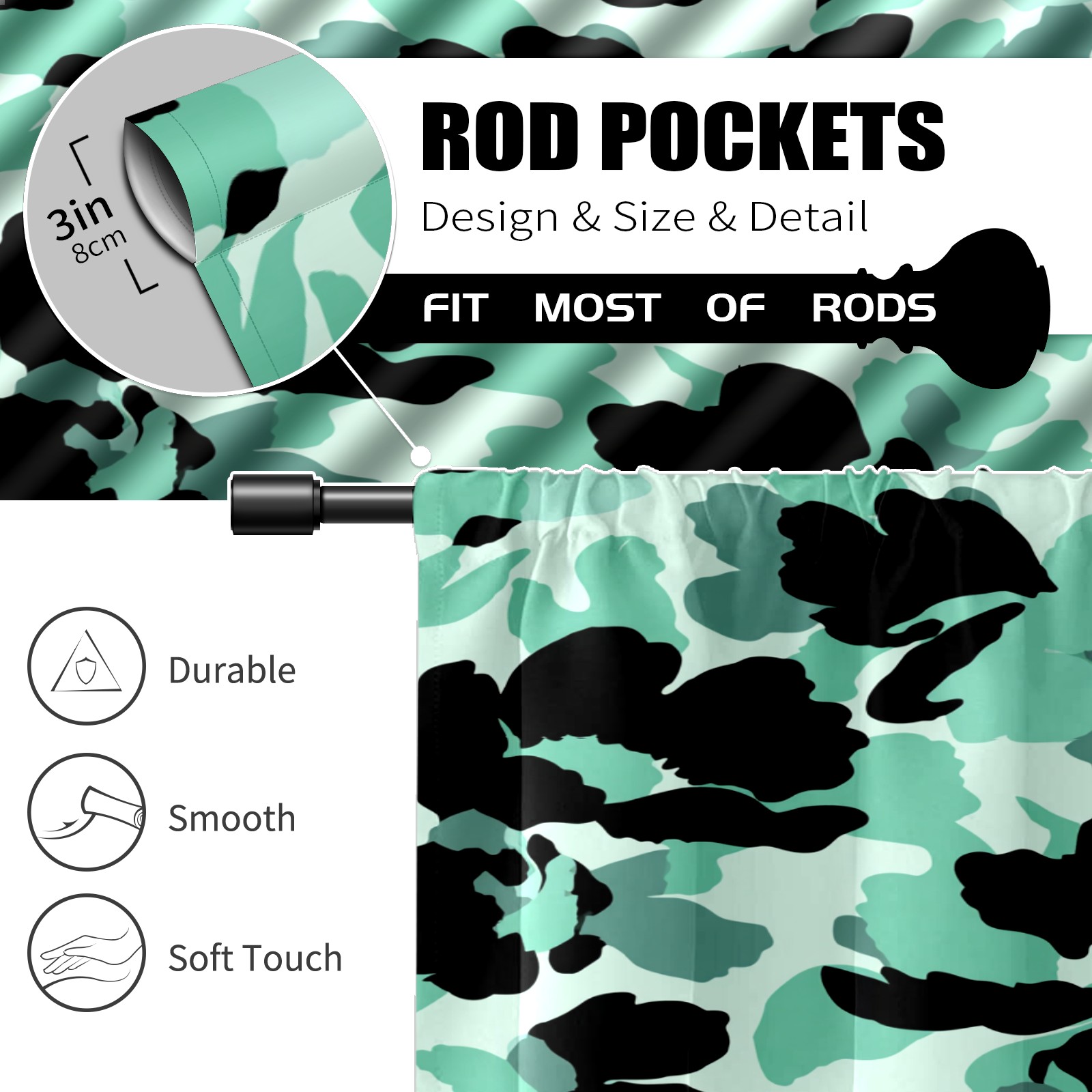 Шторы-панно для дома, декоративные драпировки для гостиной и спальни, легкие и прочные, Camouflage BlackGreen