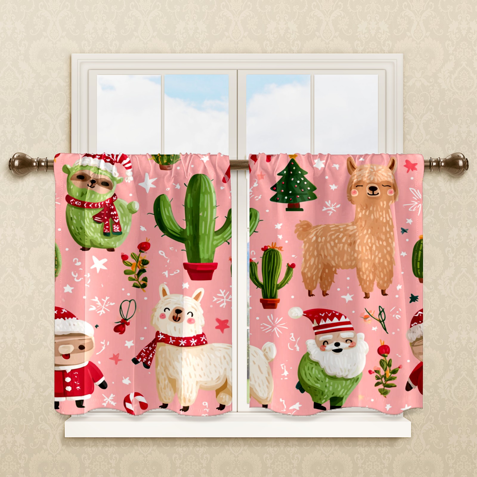 Шторы-панно для дома, декоративные драпировки для гостиной и спальни, легкие и прочные, Christmas Llama Pink