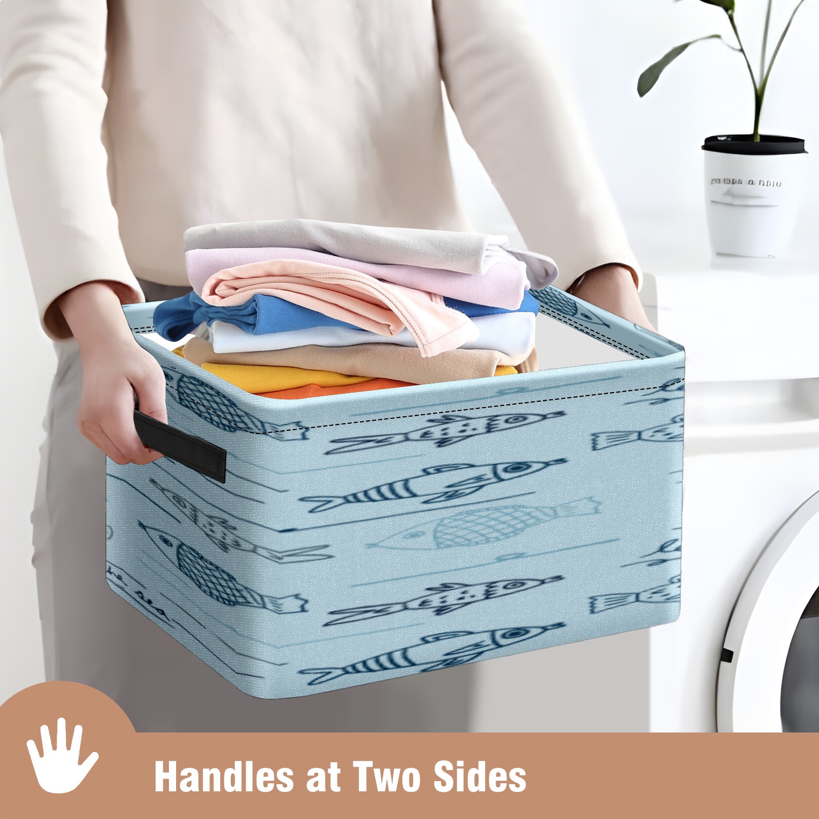 • 【Материал】Оксфордская ткань из полиэстера 600D; ручки изготовлены из полиэстера. 【Описание материала】Внешняя ткань: Оксфордская ткань полотняного переплетения высокой плотности 300D (ПВХ); Подкладка: белая ткань 750D; Ручки: черная композитная ткань 290T. 【Размер】26x35x21 см (10x14x8 дюймов) 【Описание продукта】Эта корзина для хранения с ручками с обеих сторон предлагает достаточно места для хранения предметов разных размеров, что делает ее подходящей для различных случаев, таких как дом, офис и школа. Ручки с обеих сторон закреплены гвоздями для долговечности. Прочный металлический каркас окружает корзину, поддерживая ее форму. Складная корзина для хранения: Наши корзины для хранения легко складываются, когда не используются. Эти ящики для хранения изготовлены из легко моющейся оксфордской ткани и при необходимости могут быть аккуратно протерты мягким мылом и водой. Из-за внутреннего металлического каркаса и жесткого дна машинная стирка не рекомендуется. 【Подходящие сценарии использования】Дом, офис и школа 【Инструкции по стирке】Рекомендуется ручная стирка; избегайте длительного воздействия прямых солнечных лучей.