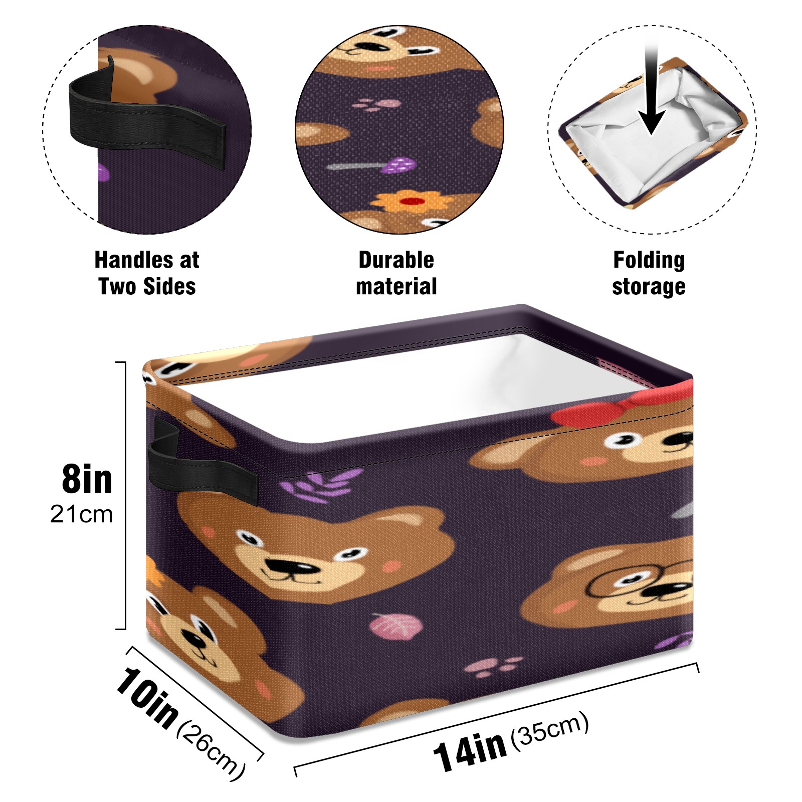 • 【Материал】Оксфордская ткань из полиэстера 600D; ручки изготовлены из полиэстера. 【Описание материала】Внешняя ткань: Оксфордская ткань полотняного переплетения высокой плотности 300D (ПВХ); Подкладка: белая ткань 750D; Ручки: черная композитная ткань 290T. 【Размер】26x35x21 см (10x14x8 дюймов) 【Описание продукта】Эта корзина для хранения с ручками с обеих сторон предлагает достаточно места для хранения предметов разных размеров, что делает ее подходящей для различных случаев, таких как дом, офис и школа. Ручки с обеих сторон закреплены гвоздями для долговечности. Прочный металлический каркас окружает корзину, поддерживая ее форму. Складная корзина для хранения: Наши корзины для хранения легко складываются, когда не используются. Эти ящики для хранения изготовлены из легко моющейся оксфордской ткани и при необходимости могут быть аккуратно протерты мягким мылом и водой. Из-за внутреннего металлического каркаса и жесткого дна машинная стирка не рекомендуется. 【Подходящие сценарии использования】Дом, офис и школа 【Инструкции по стирке】Рекомендуется ручная стирка; избегайте длительного воздействия прямых солнечных лучей.