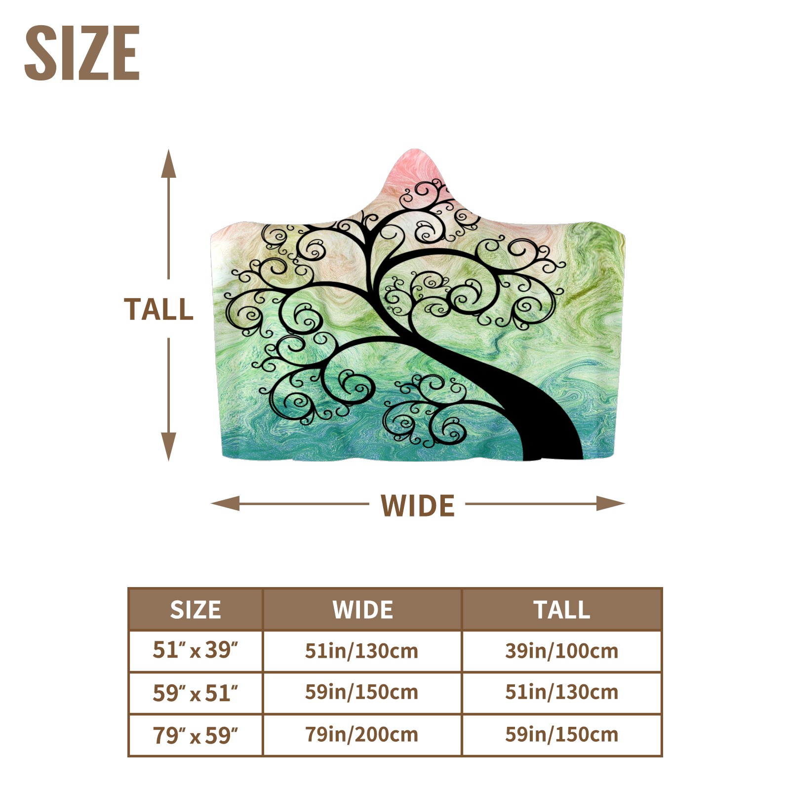 【Материал】Полиэстер + коралловый флис 【Принт】Напечатано на лицевой стороне 【Размер】100x130 см/39x51 дюйм 130x150 см/51x59 дюймов 150x200 см/59x79 дюймов 【Подходящие случаи】Пушистое одеяло с капюшоном, действительно большого размера, подходит как для мужчин, так и для женщин. Теплое и уютное, идеально подходит для приятного времяпрепровождения. Идеально подходит для отдыха дома, просмотра телевизора, игр, чтения, сна или любых походов и мероприятий на природе. Капюшон одеяла закрывает плечи и руки, позволяя свободно двигаться и использовать руки. Идеальный размер как для женщин, так и для мужчин. Прекрасный и продуманный подарок для семьи, друзей и партнеров. 【Рекомендации по стирке】Машинная стирка, не отбеливать, сушить в сушилке при низкой температуре.